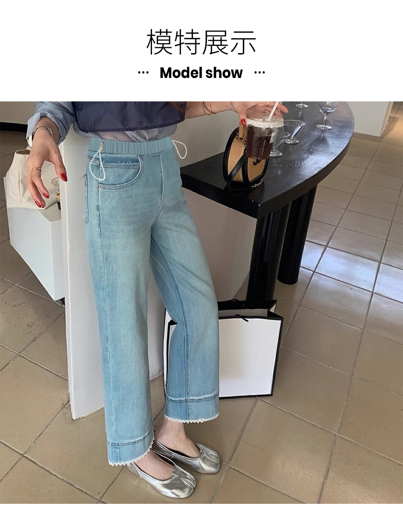 임산부 펌프 로프 데님 긴 바지 단 닝 블루 떨어지지 않음 색상 봄 가을 외출용 와이드 레그 팬츠 스트레이트 팬츠