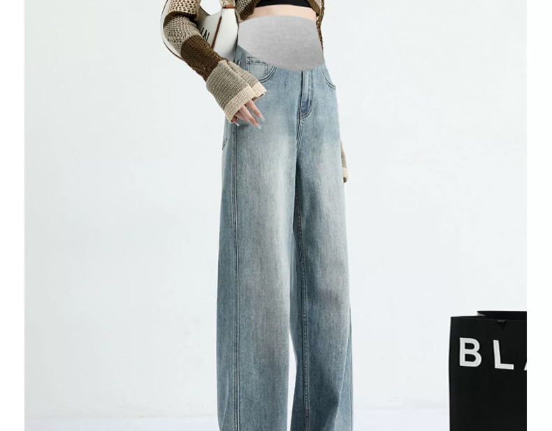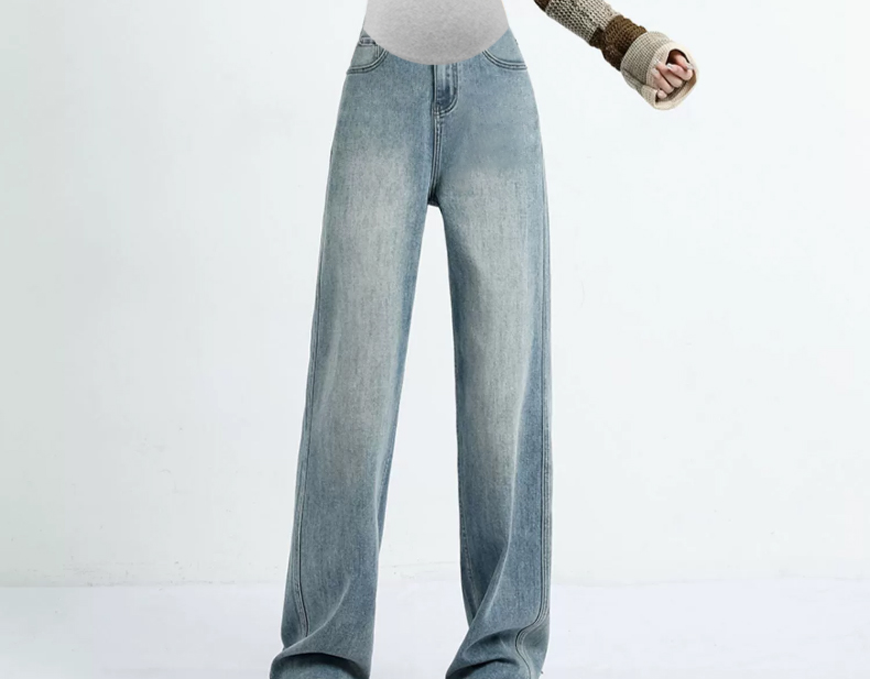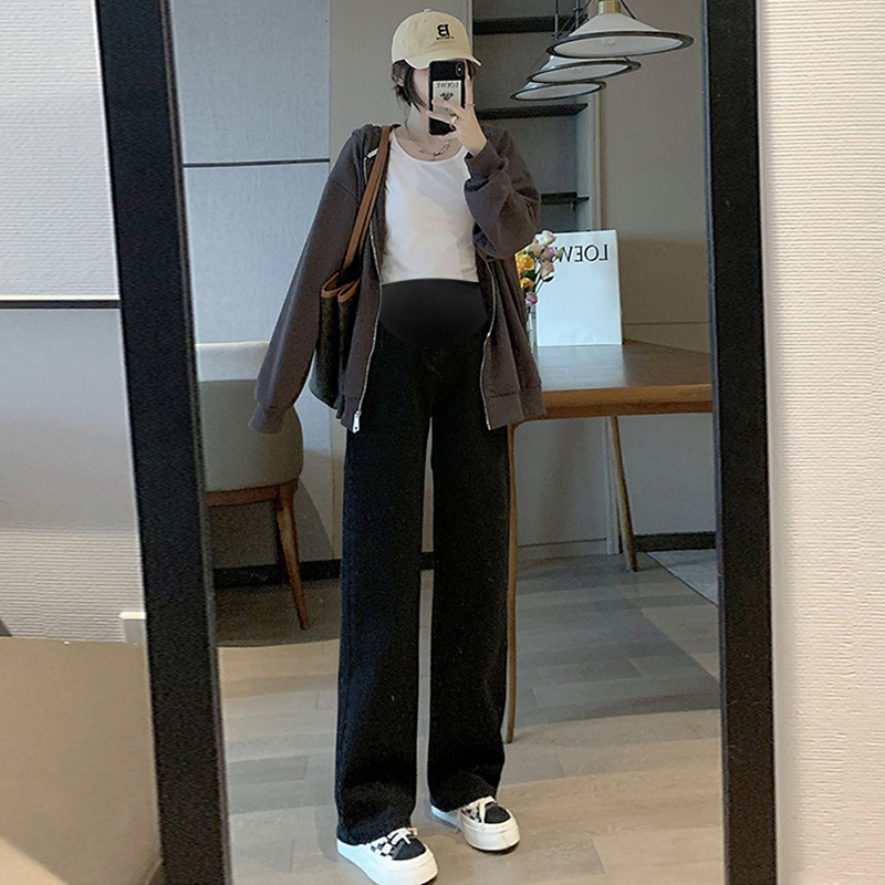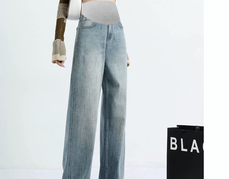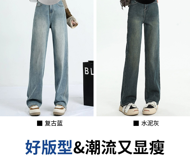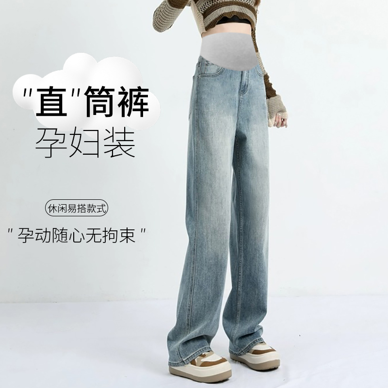 임산부 펌프 로프 청바지 외출용 와이드 레그 팬츠 없음 복부 지지 임산부 청바지 루즈핏 스트레이트 팬츠