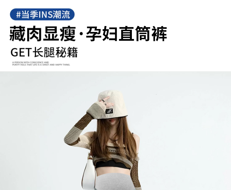 임산부 펌프 로프 레이스 청바지 9부 바지 없음 복부 지지 스트레이트 팬츠 루즈핏 와이드 레그 팬츠