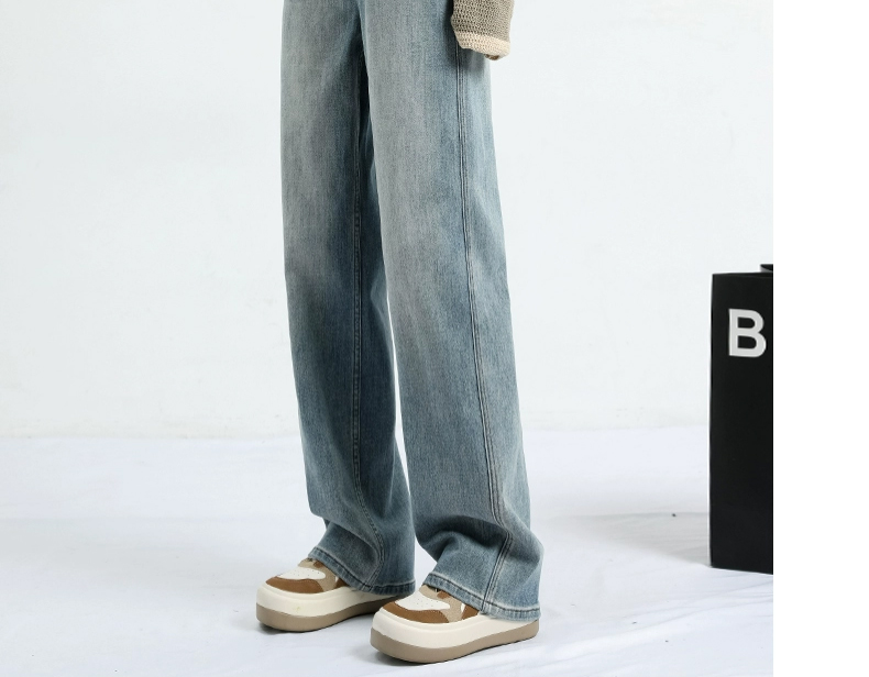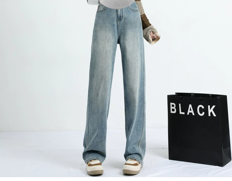 임산부 없음 복부 지지 루즈핏 레트로 청바지 하이웨이스트 몸매 가꾸기 슬림해 보이는 달콤함 넓은 다리 9부 바지