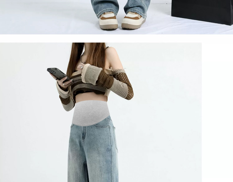 임산부 보호 허리 셀룰러 없음 흔적 전체 복부 지지 봄 가을 데님 긴 바지 외출용 없음 바인딩