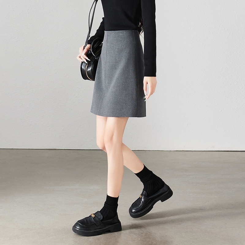 카운터 품질 2026 봄 새로운 패션 품격 루즈핏 슬림해 보이는 하이웨이스트 회색 쇼트 스타일 한 마디 반신 스커트 여성