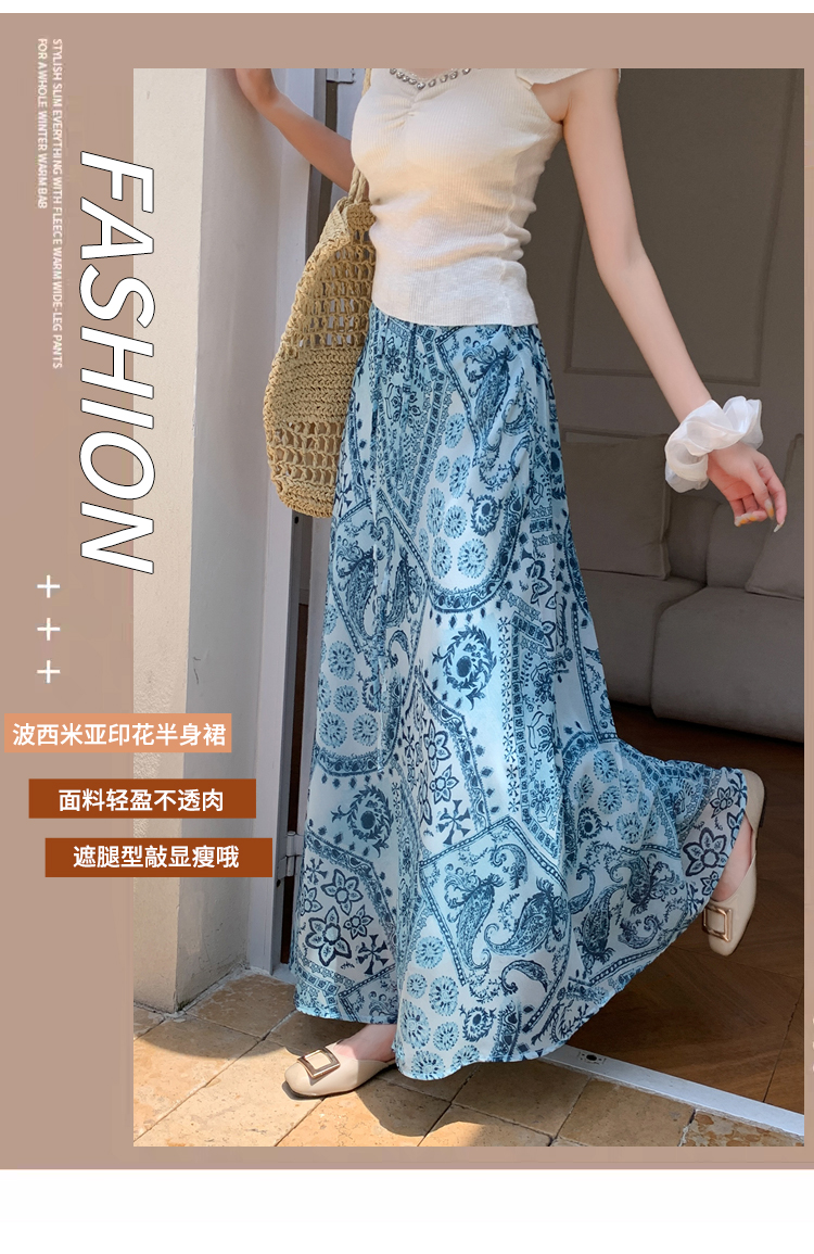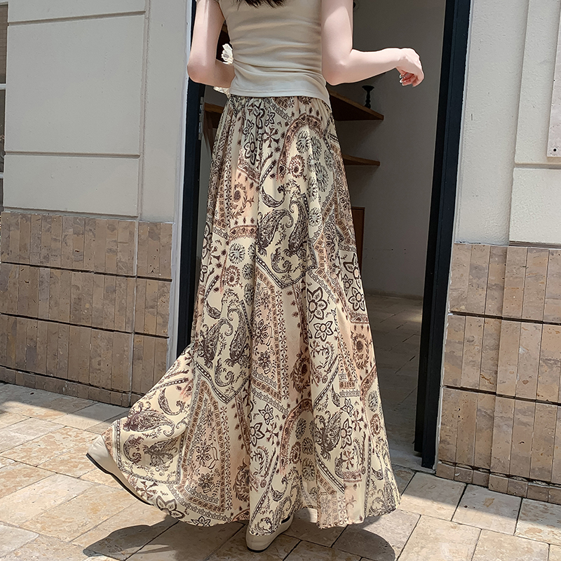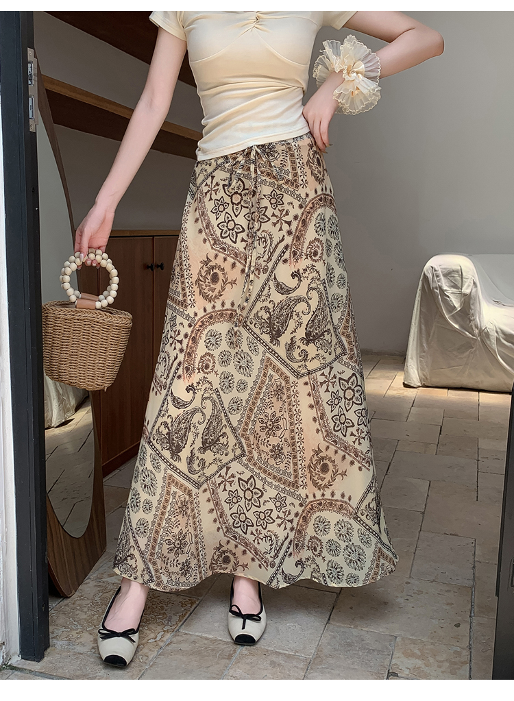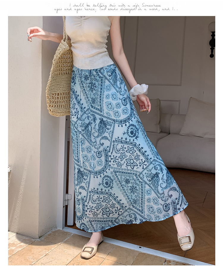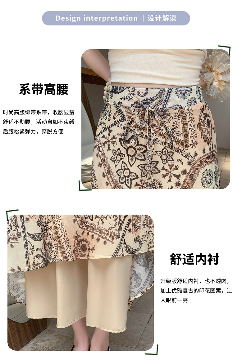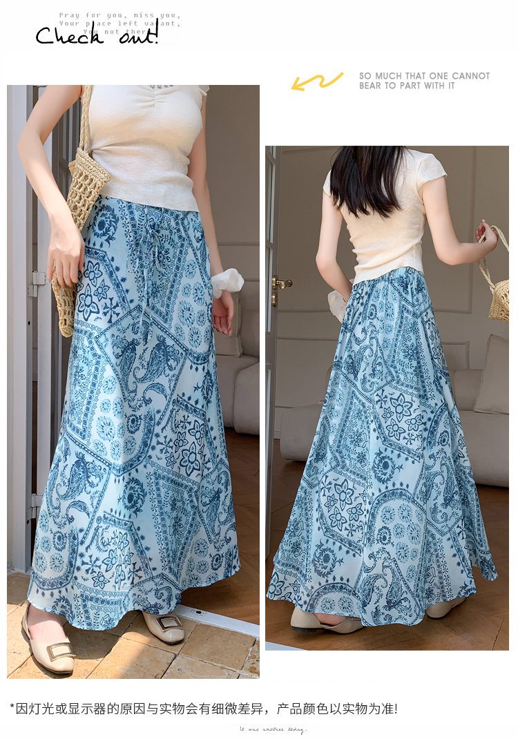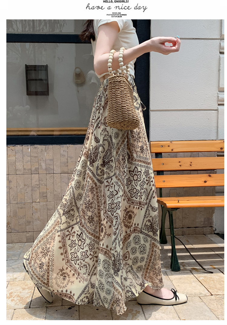 휴가 바람 프린트 불규칙 인어 꼬리 프린트 쉬폰 반신 스커트 여성 2026 여름 새로운 아름다운 길다 치마