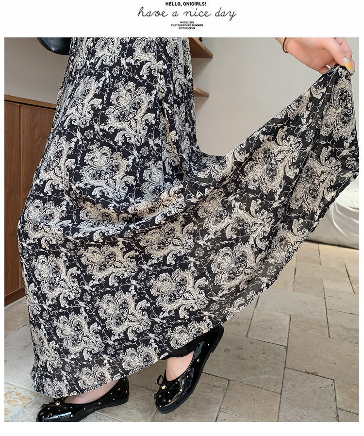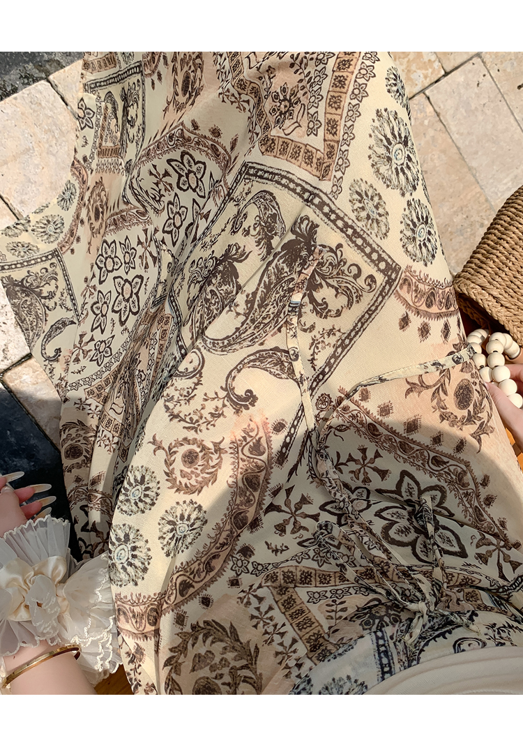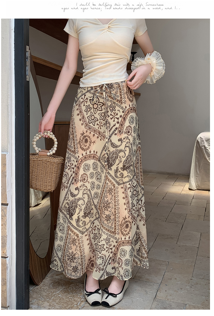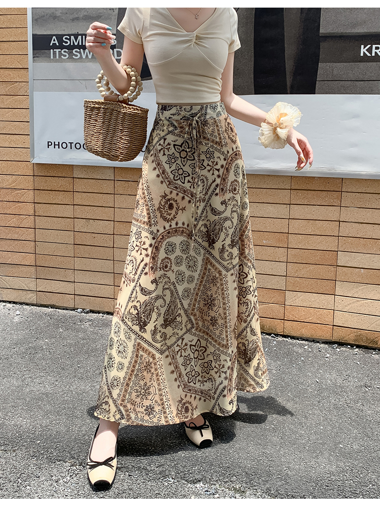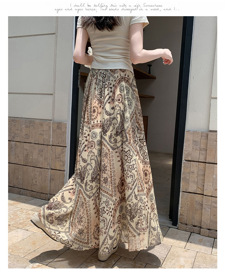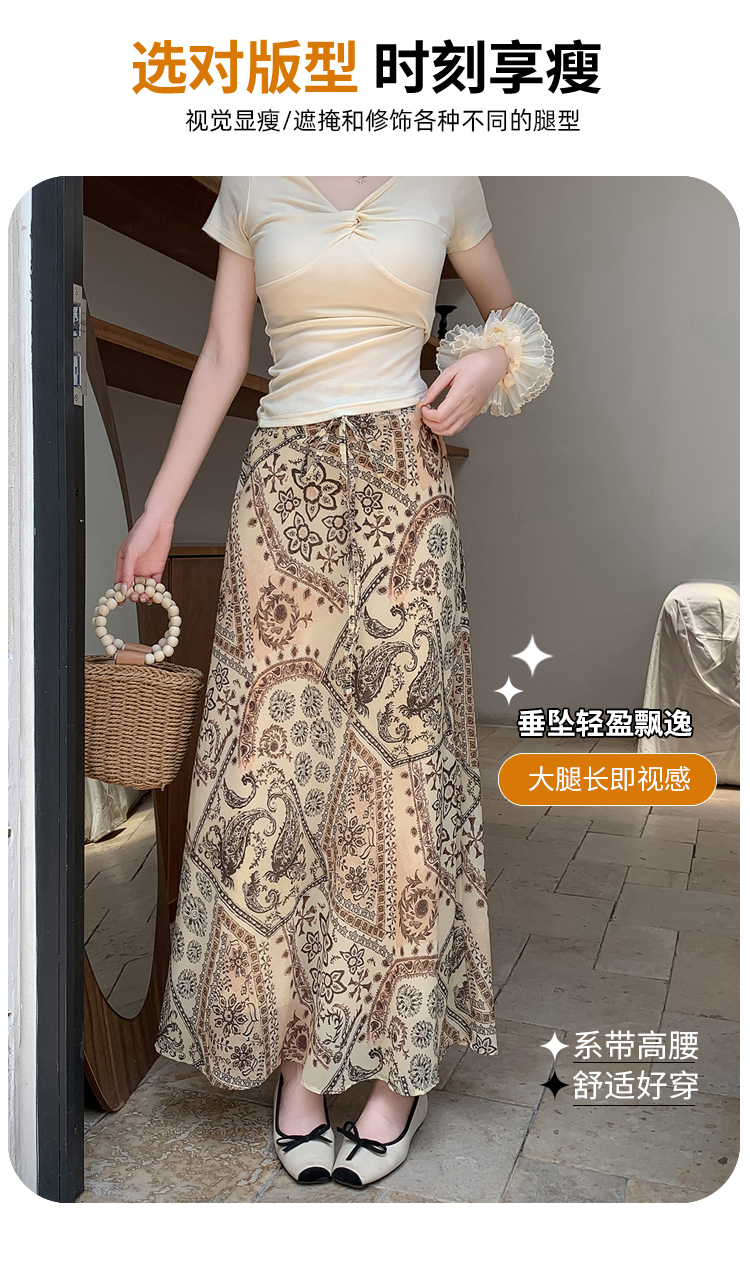 휴가 바람 프린트 불규칙 인어 꼬리 프린트 쉬폰 반신 스커트 여성 2026 여름 새로운 아름다운 길다 치마