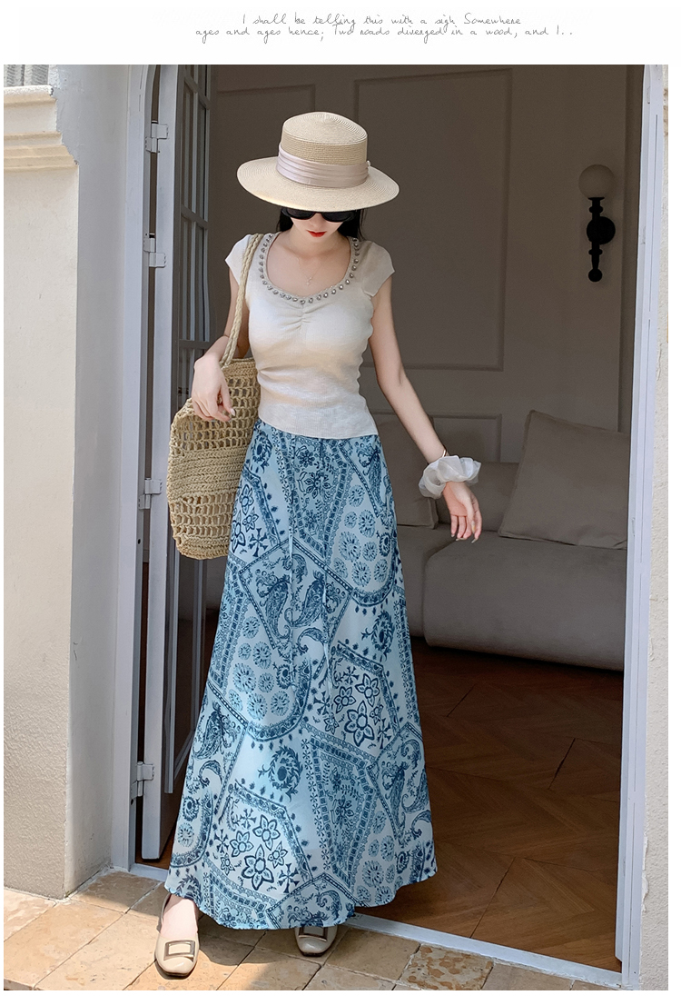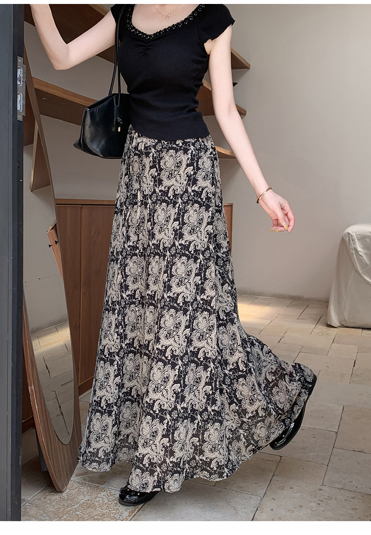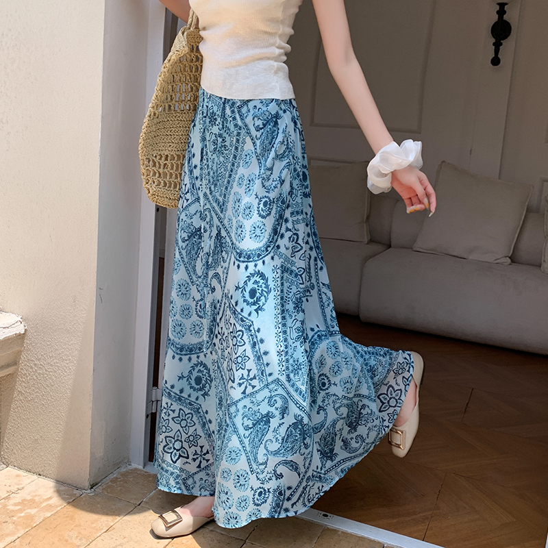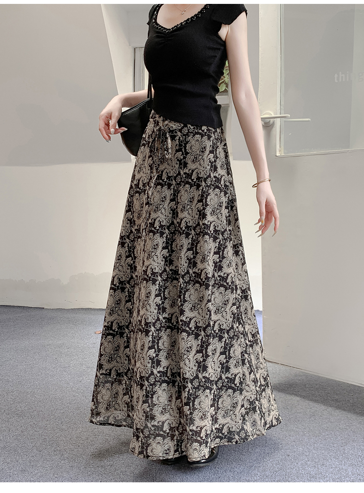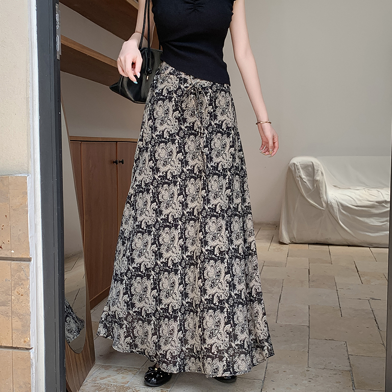 한 부서 부드러운 바람 깃발 원사 높은 허리 치마 2025 여름 새로운 슬림 와일드 한 마디 큰 진자 롱 스커트 여성