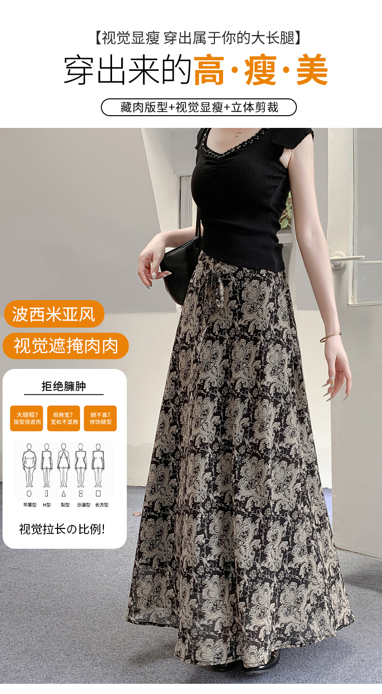 깃발 실 얼음 실크 와이드 레그 팬츠 치마 여성 여름 얇은 스타일 2026 새로운 하이웨이스트 슬림해 보이는 쉬폰 치마바지