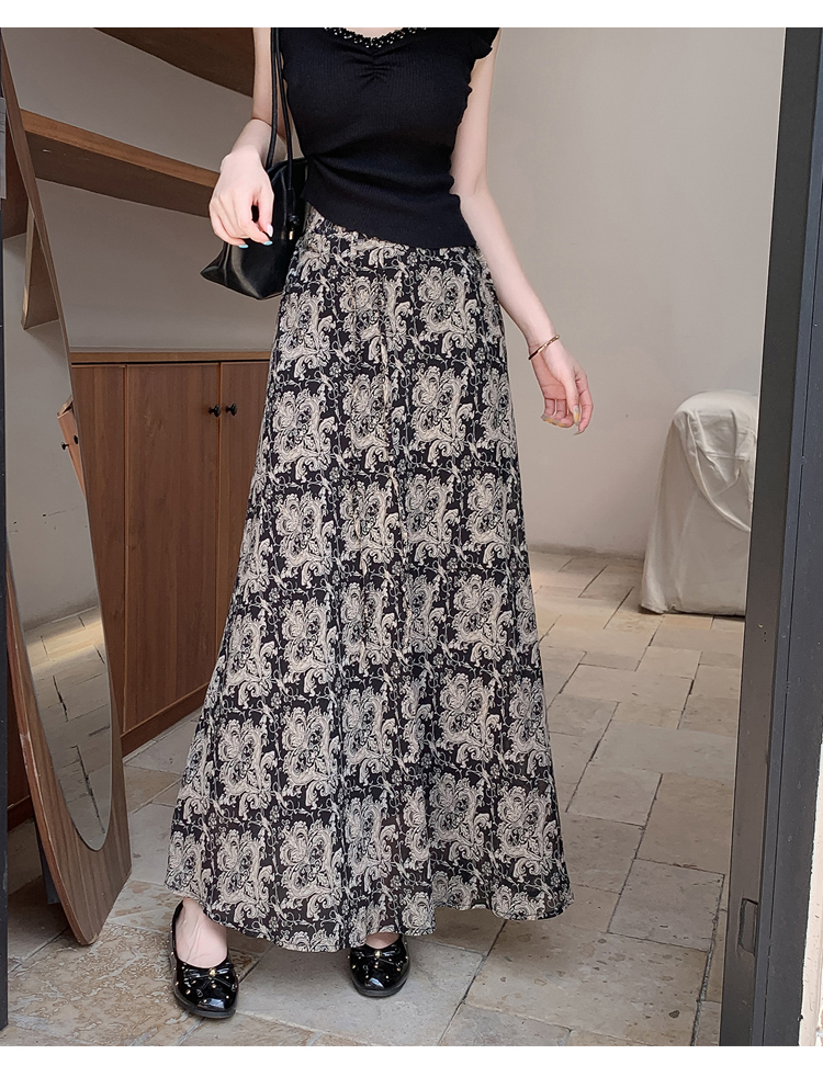 실사 하이웨이스트 슬림해 보이는 높은 품질 꽃무늬 인어 꼬리 스커트 여성 여름 우아함 품격 다용도 슬림해 보이는 롱 스커트 반신 스커트