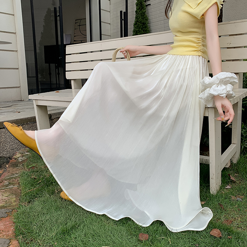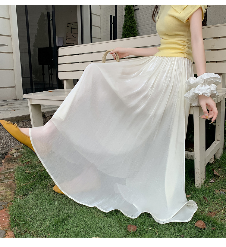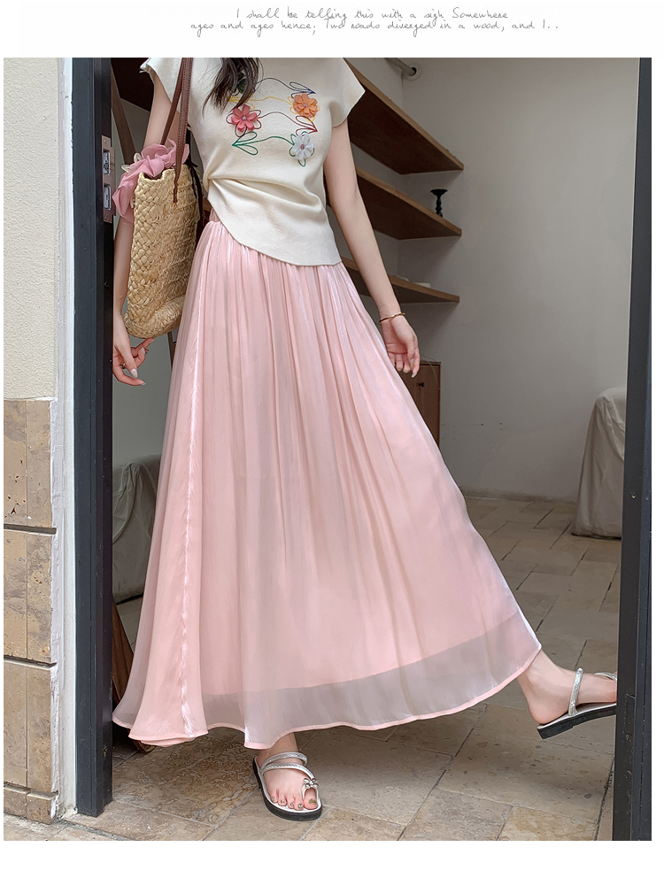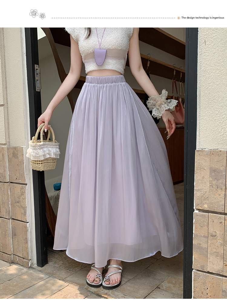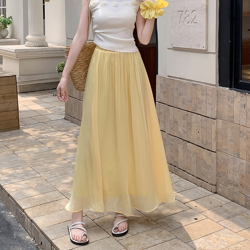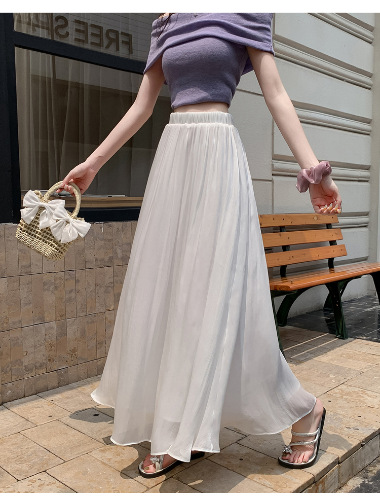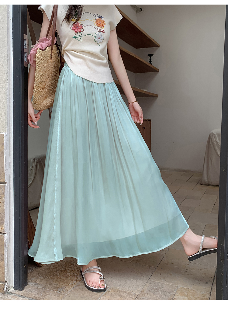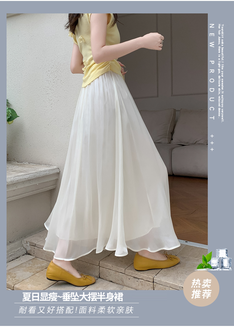 한 부서 부드러운 바람 깃발 원사 높은 허리 치마 2025 여름 새로운 슬림 와일드 한 마디 큰 진자 롱 스커트 여성
