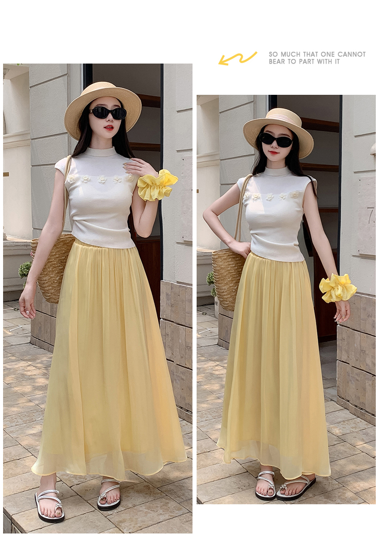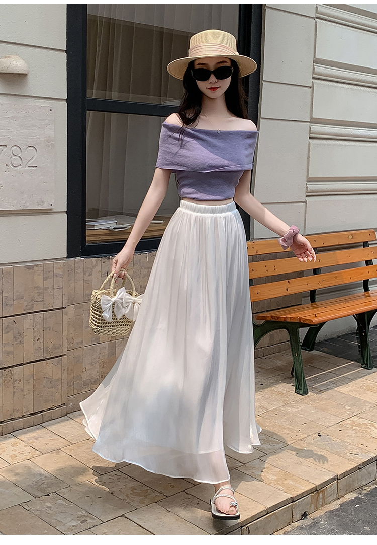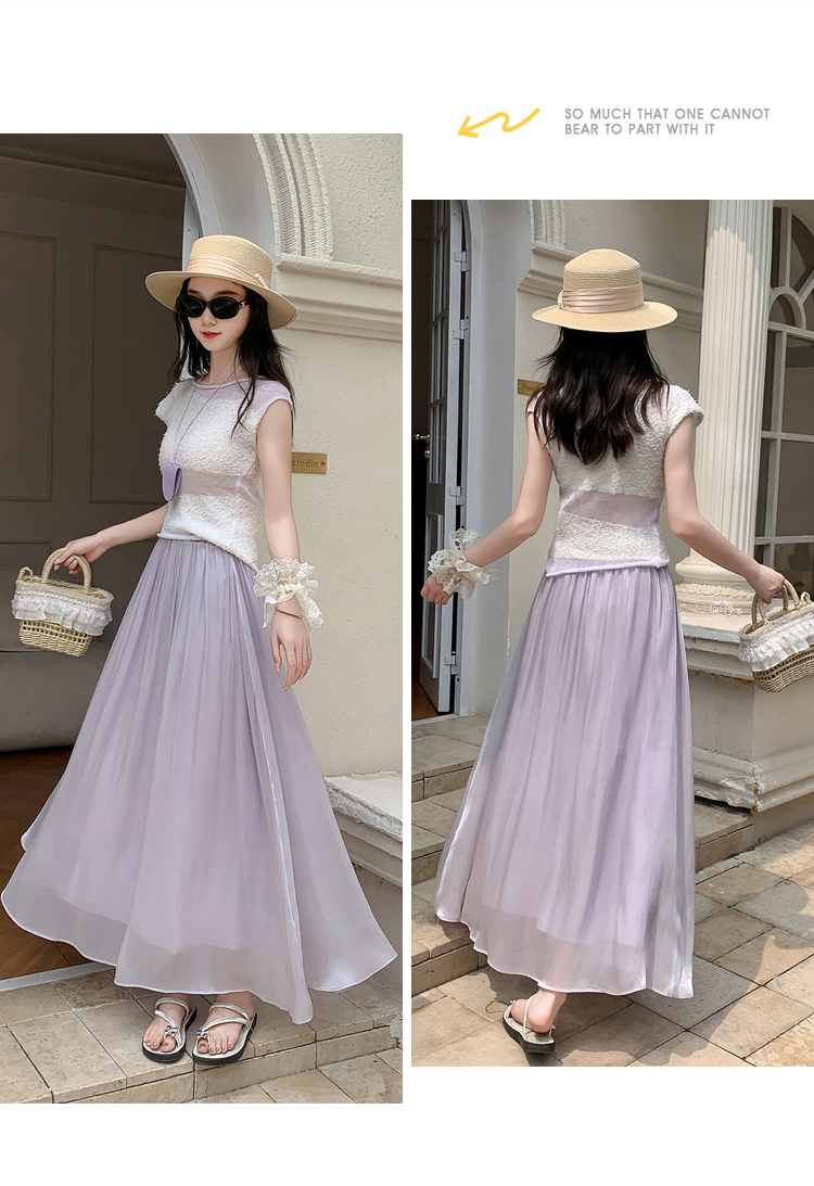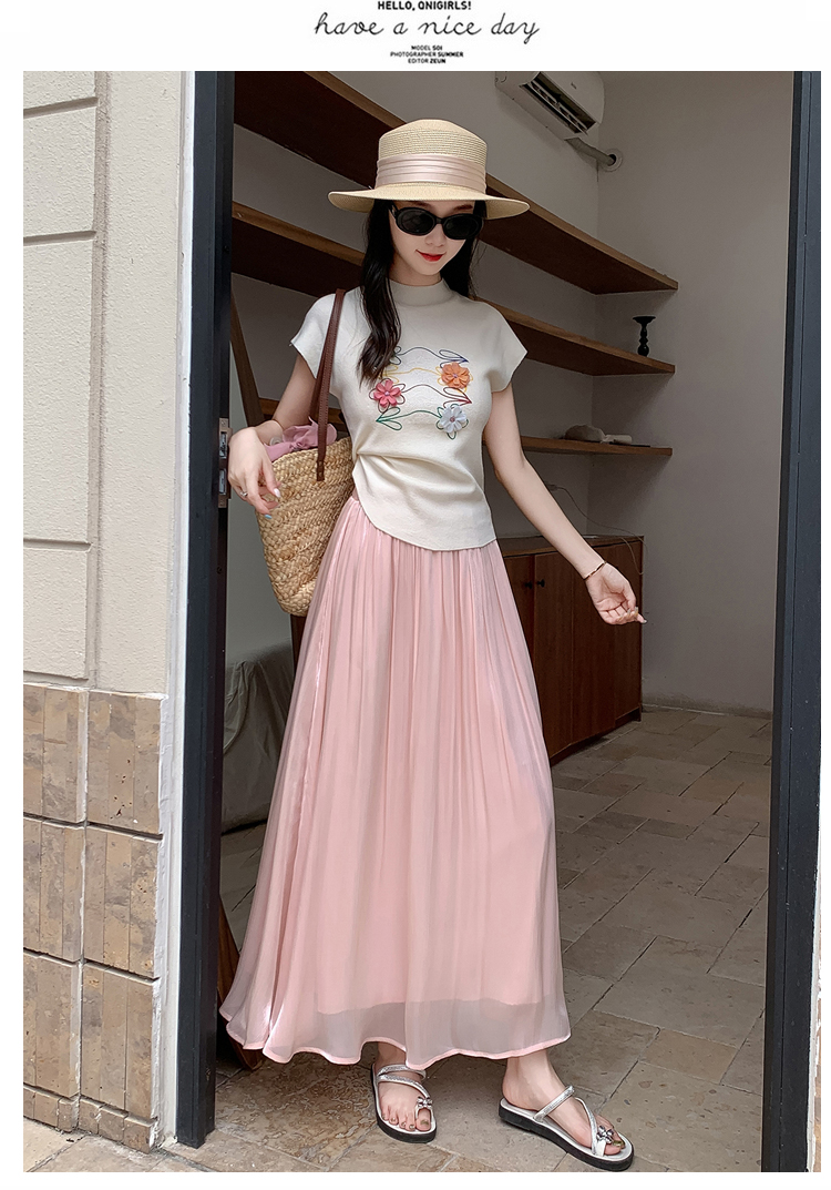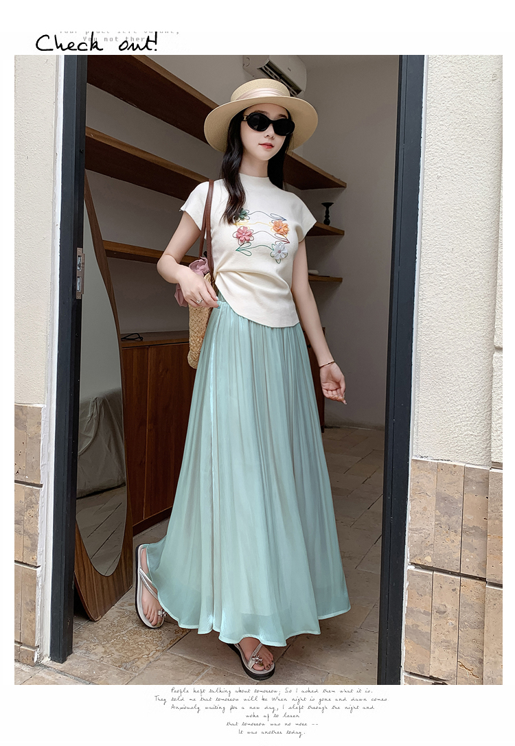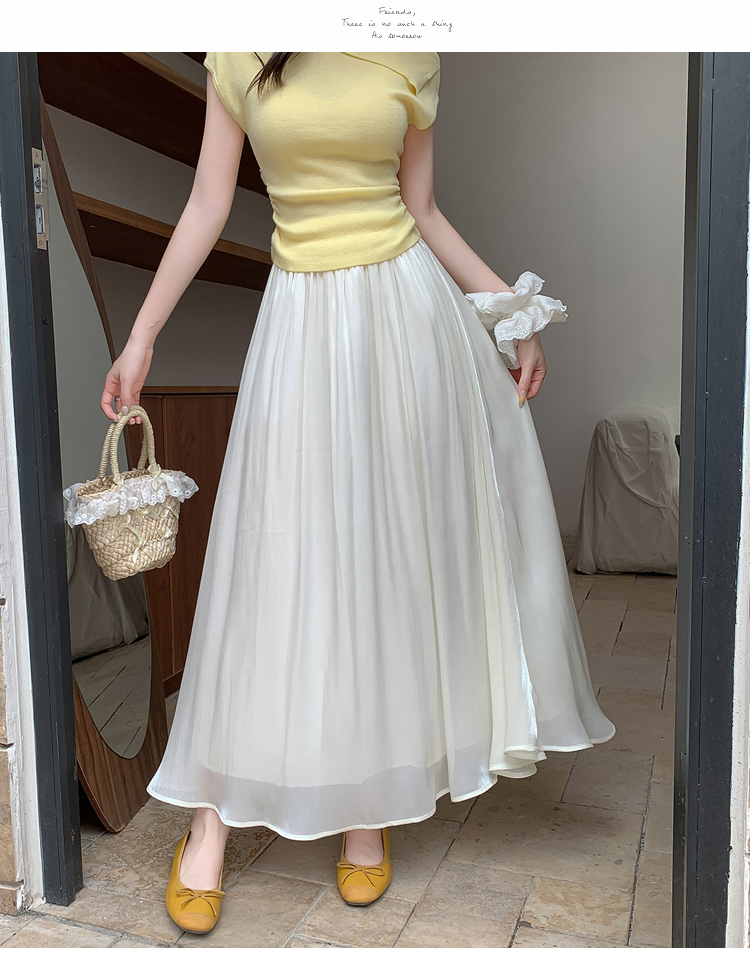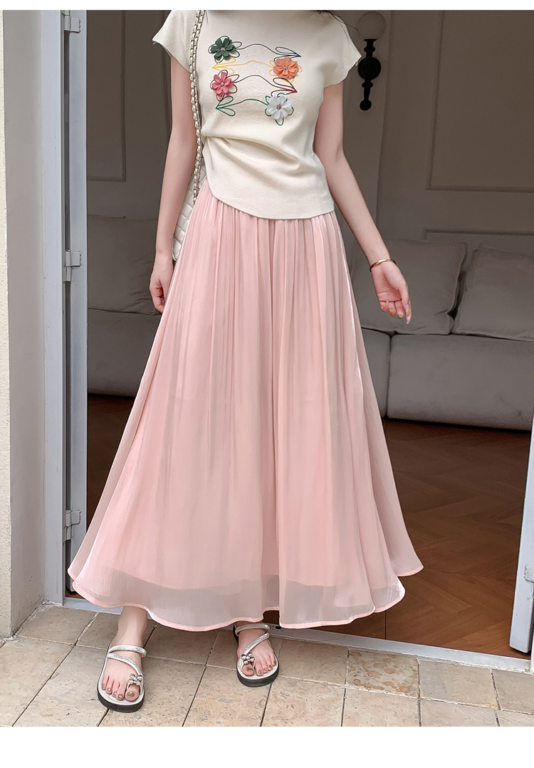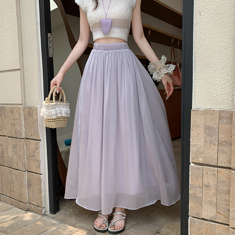 한 부서 부드러운 바람 깃발 원사 높은 허리 치마 2025 여름 새로운 슬림 와일드 한 마디 큰 진자 롱 스커트 여성