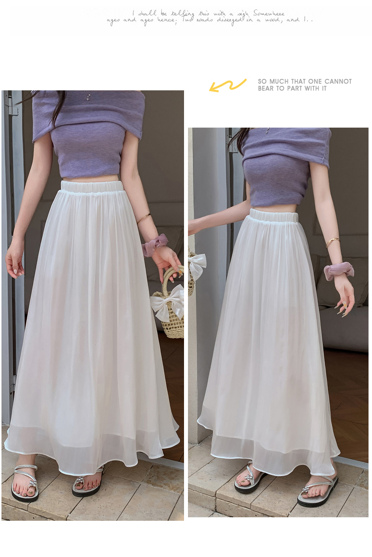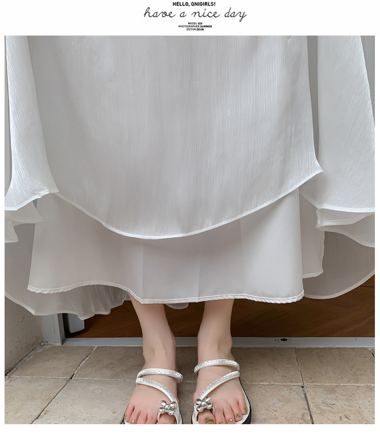 디자인 센스 화이트 롱 스커트 허리밴드 도루 가을 쉬폰 반신 스커트 프릴 측면 단색 불규칙 롱 스커트