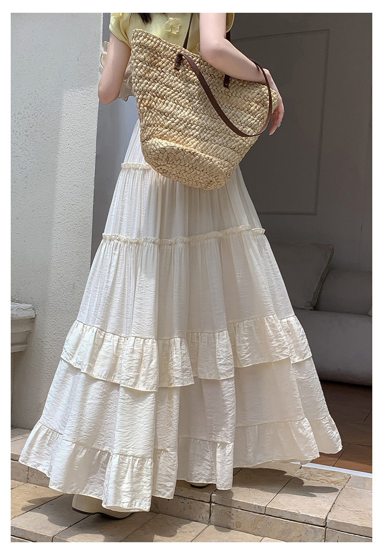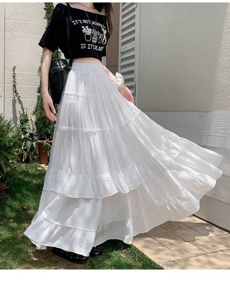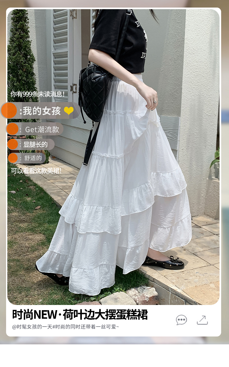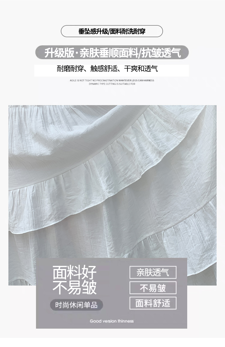 우아한 큰 진자 주름 질감 센스 망사 반신 스커트 여성 여름 얇은 스타일 패션 한 마디 프릴 케이크 드레스