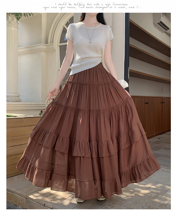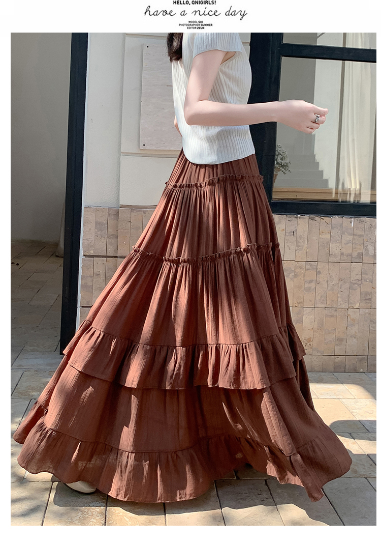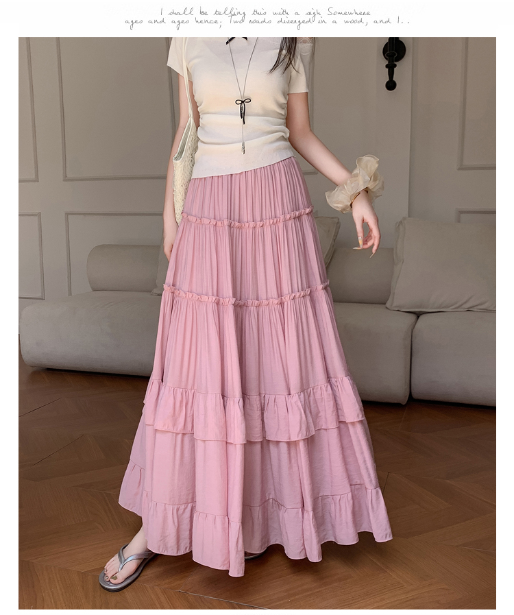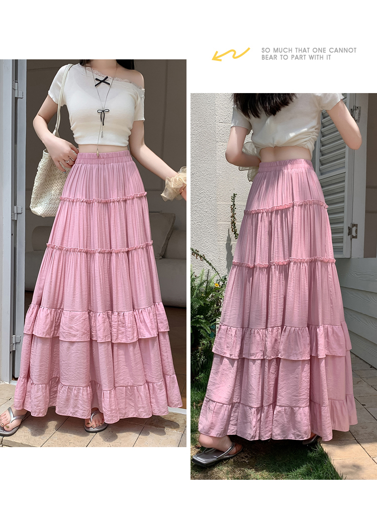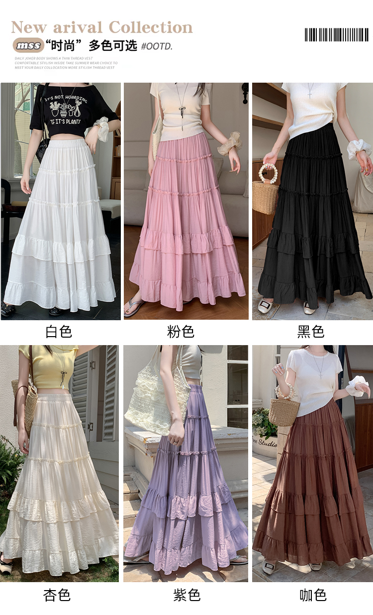 재고 상품 보라색 롱 스커트 반신 스커트 여성 2025 새로운 봄 여름 케이크 드레스 프릴 빅 플레어 스커트 우산 치마