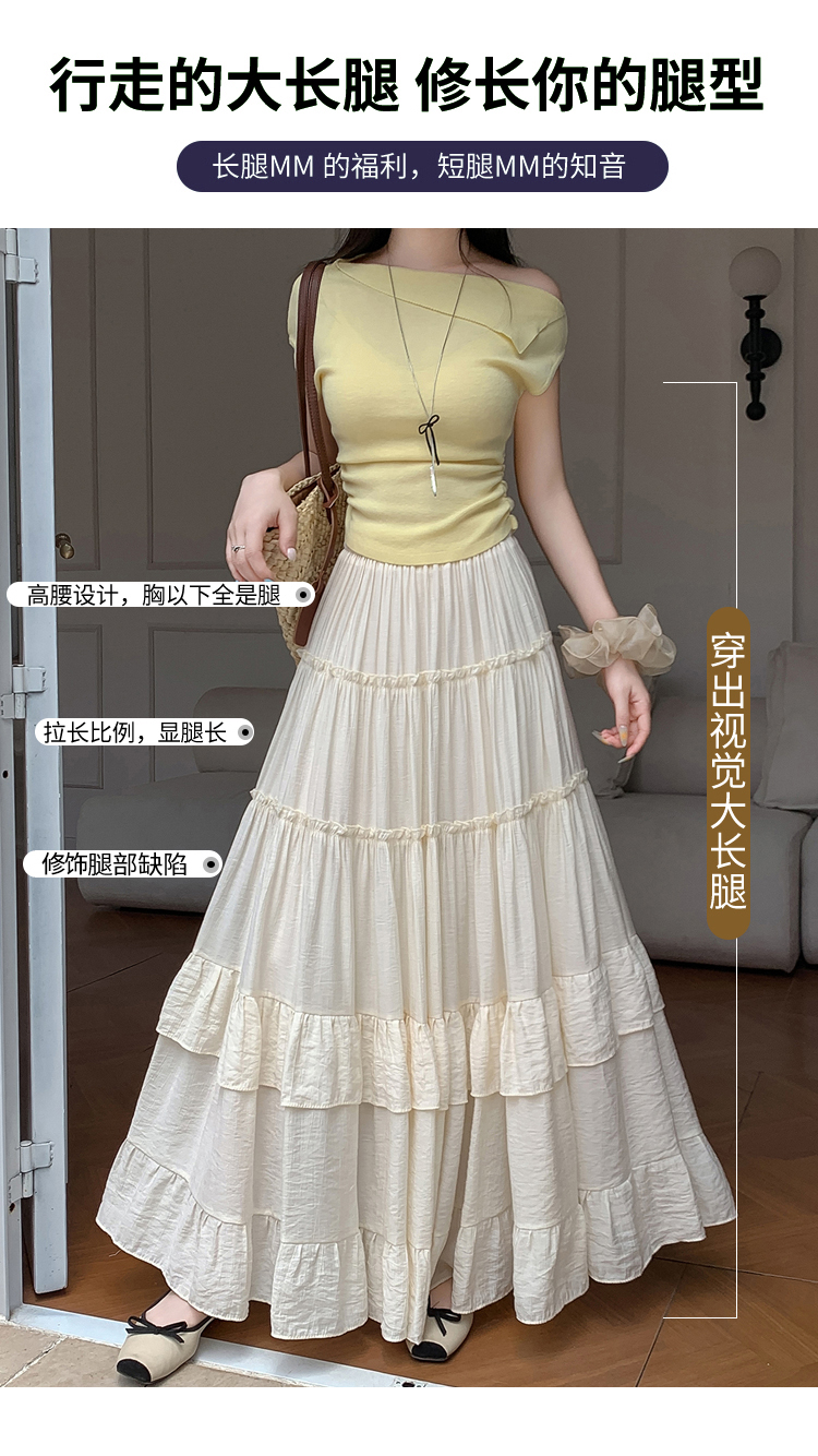 한 부서 부드러운 바람 깃발 원사 높은 허리 치마 2025 여름 새로운 슬림 와일드 한 마디 큰 진자 롱 스커트 여성