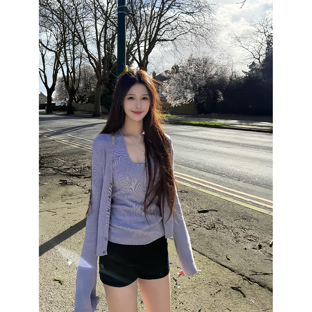 있음 도착 여름 민소매 니트 오픈 가디건 조끼 새로운 디자인 센스 행침 목 작은 대중 다용도 맨위 여름