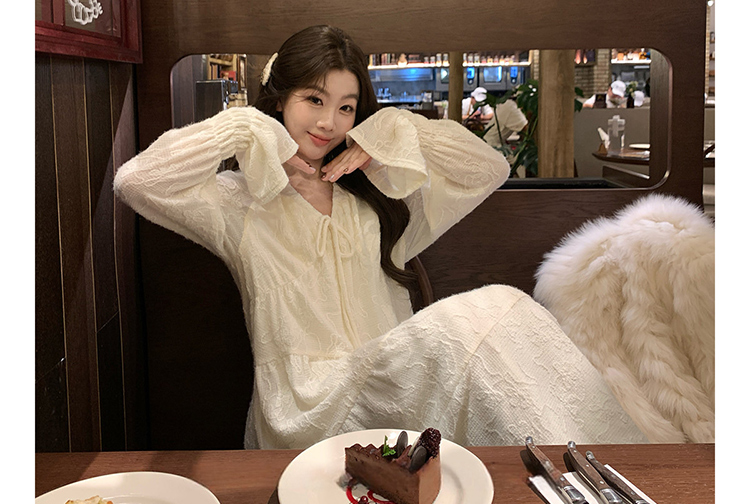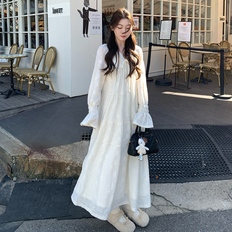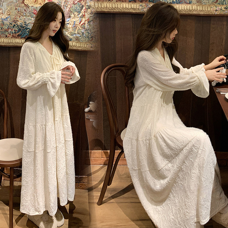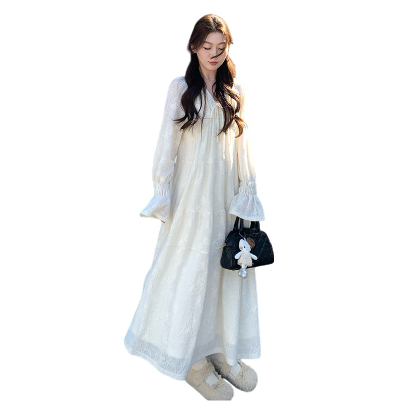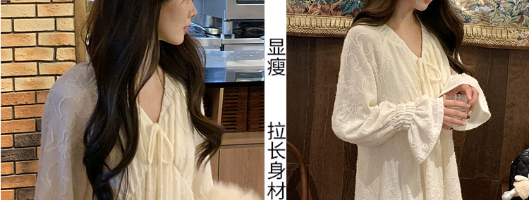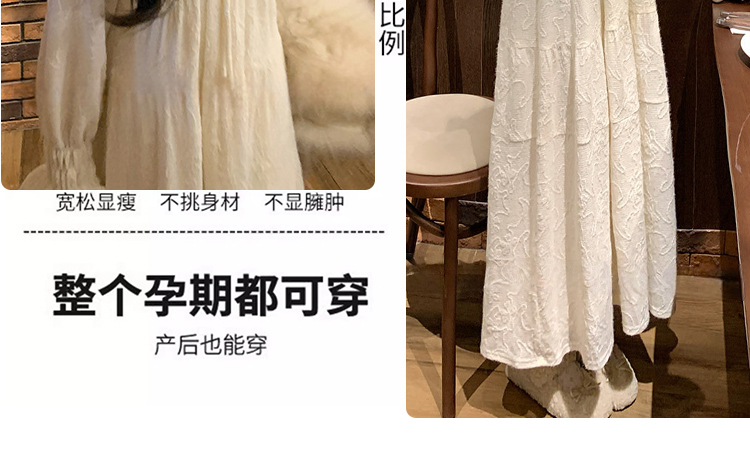 실사 봄 새로운 부드러운 바람 무거운 작업 자카드 중간 길이 임산부 드레스