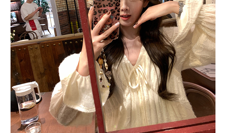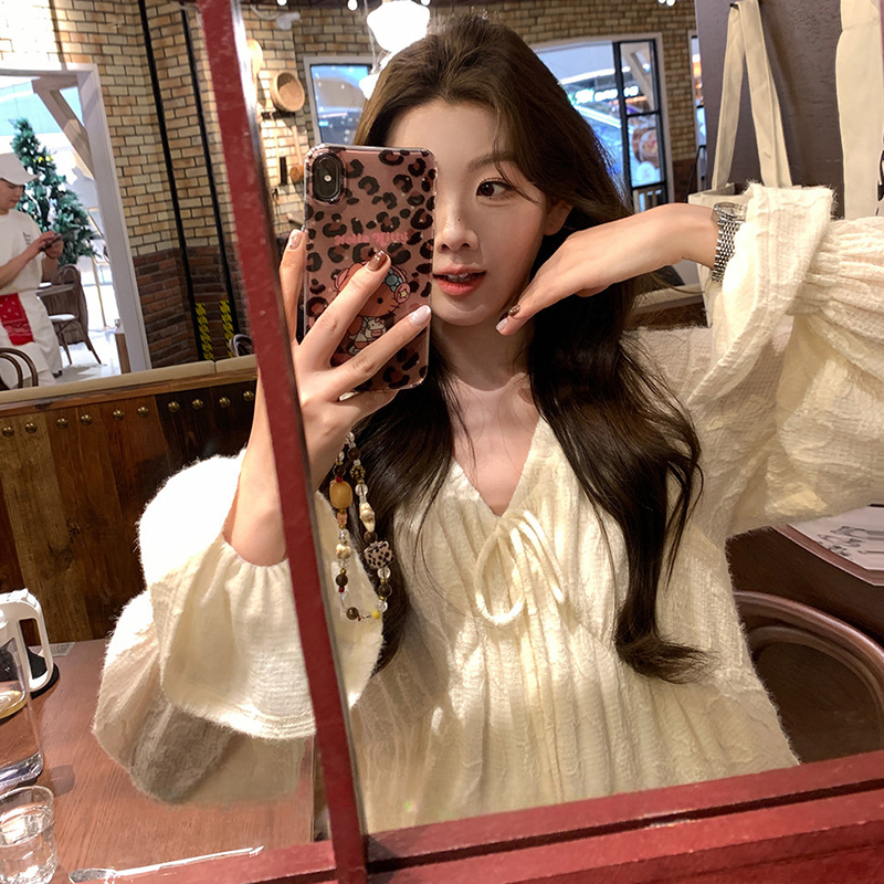 지금 봄 드레스 새로운 프랑스식 스트랩 라운드 넥 루즈핏 인형 셔츠 임산부 맨위