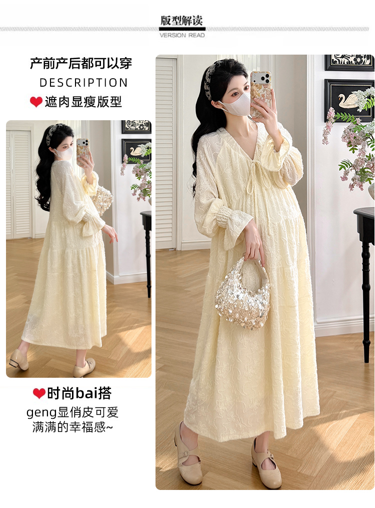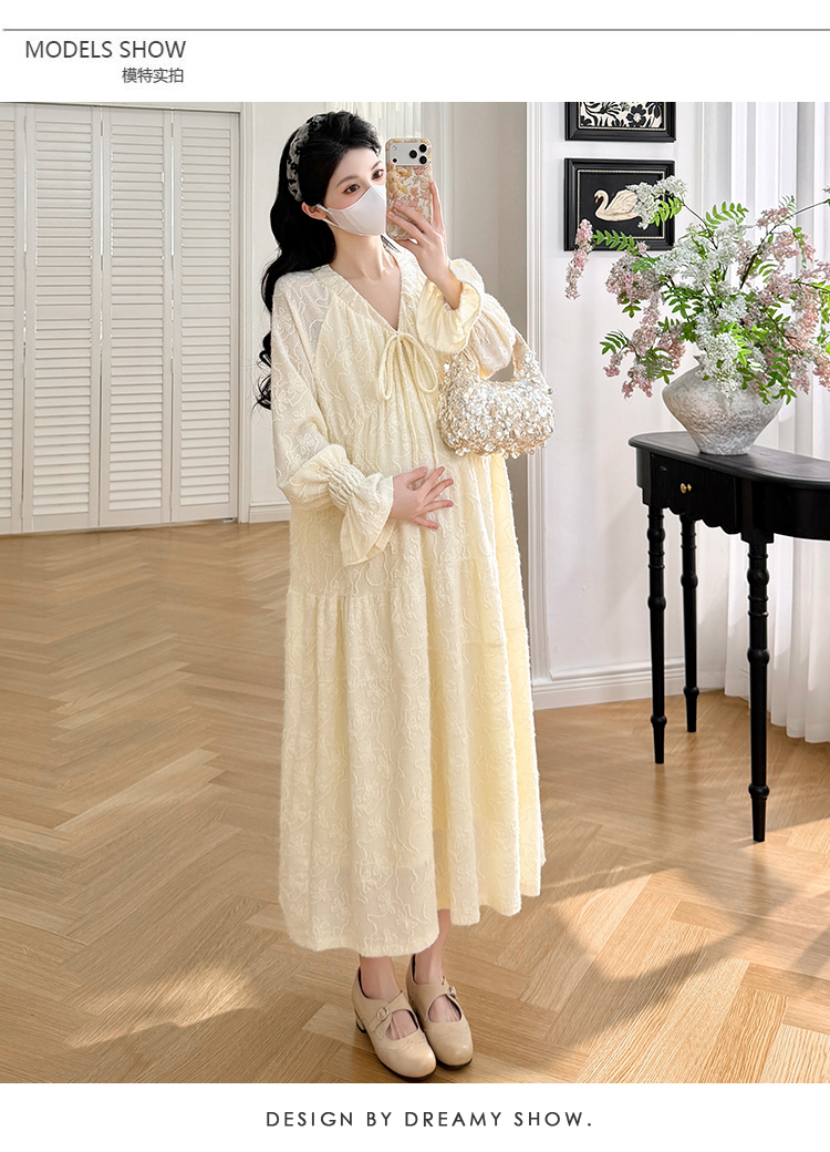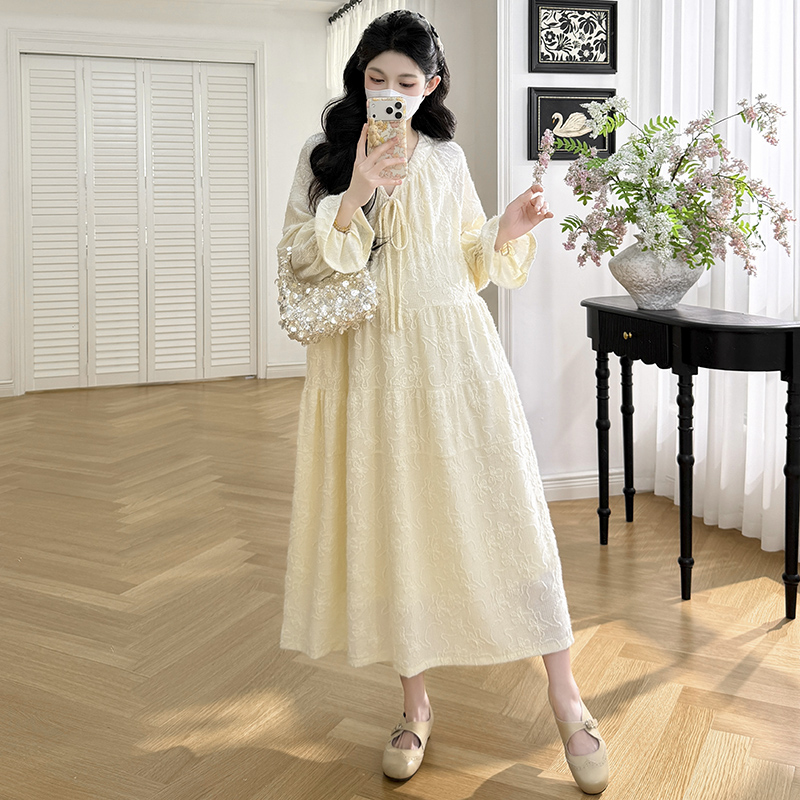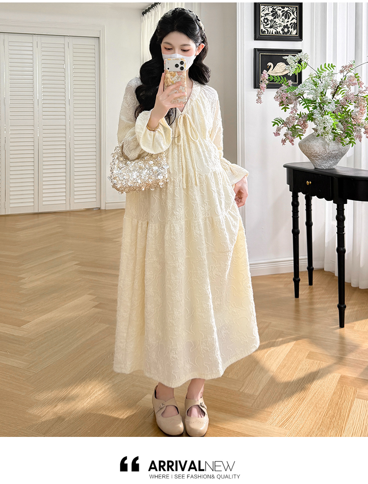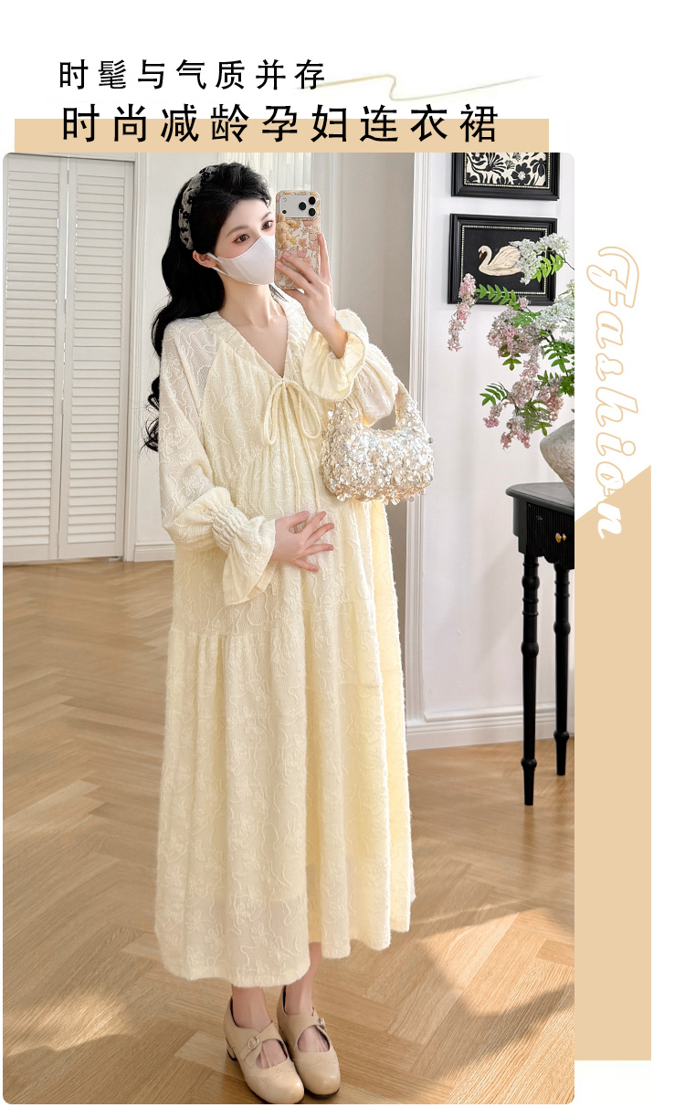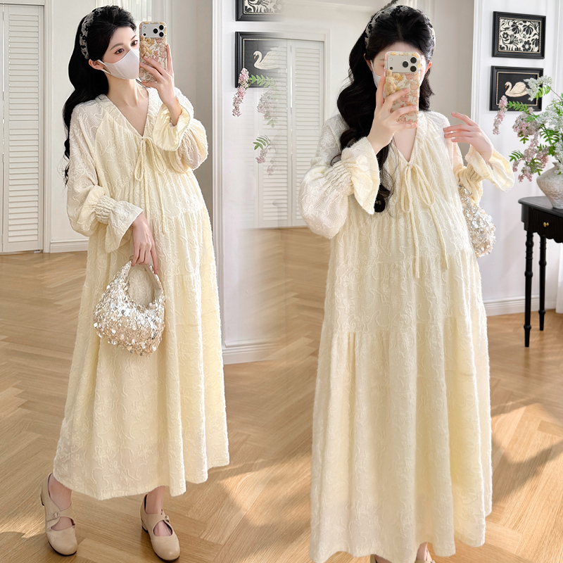 실사 봄 새로운 부드러운 바람 무거운 작업 자카드 중간 길이 임산부 드레스