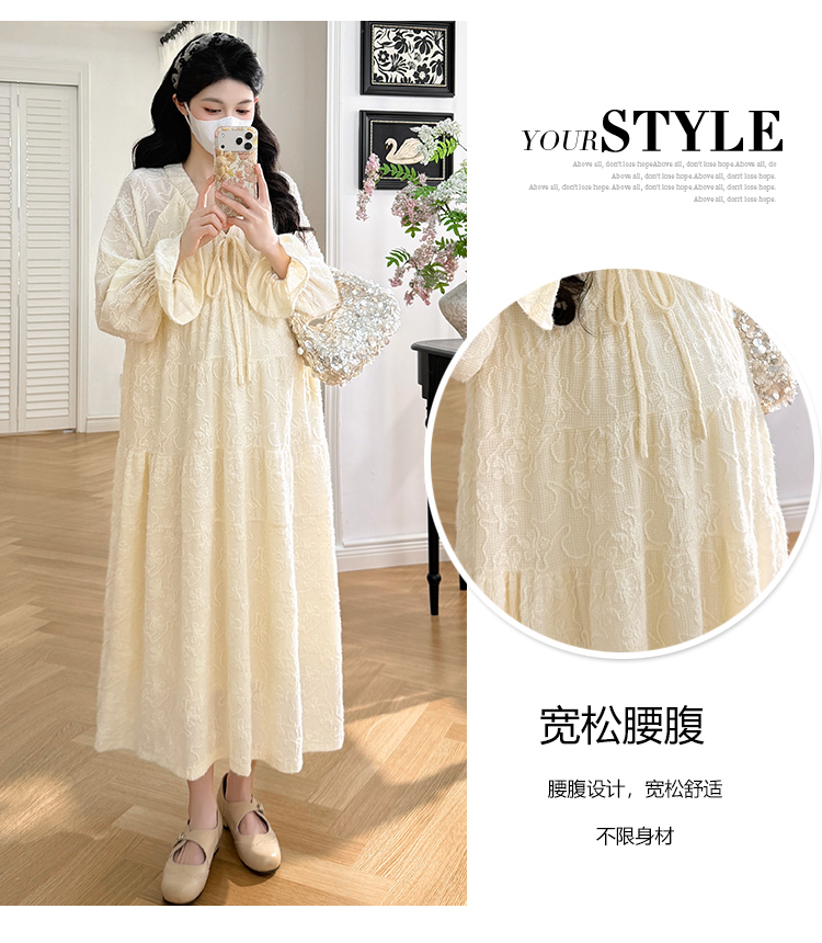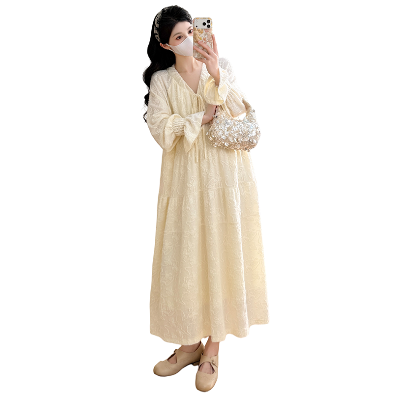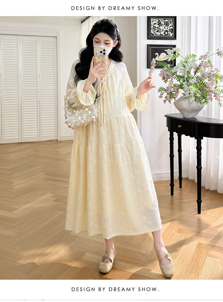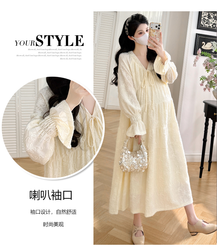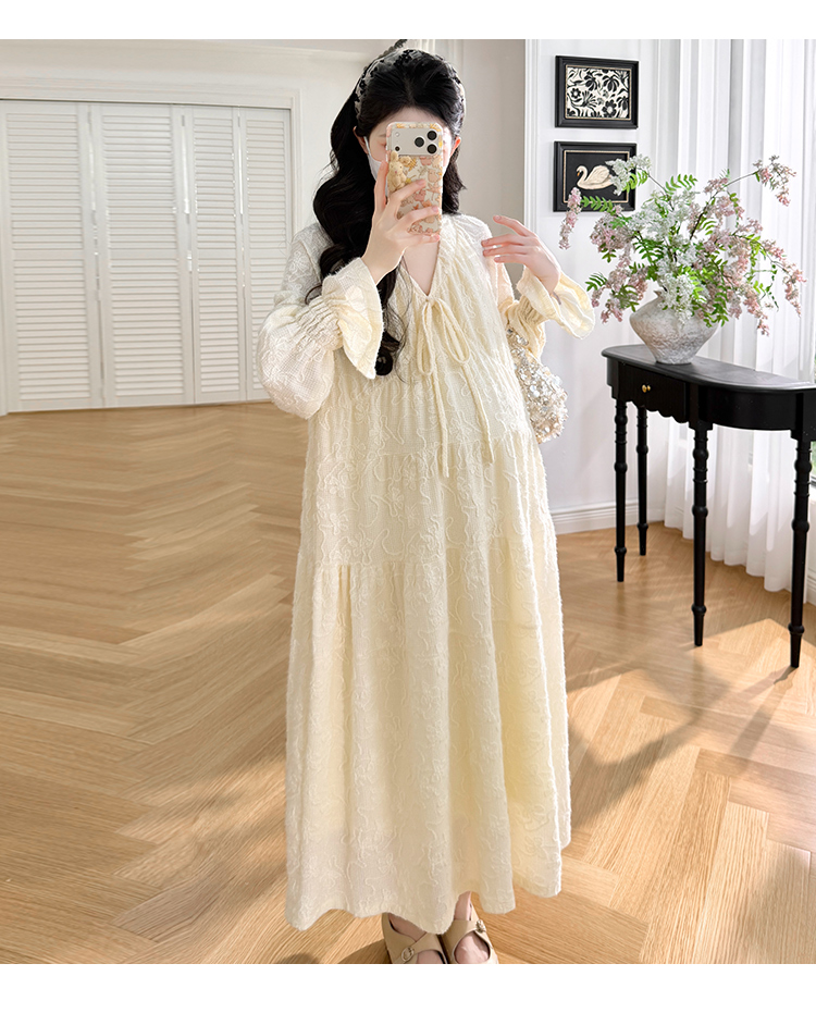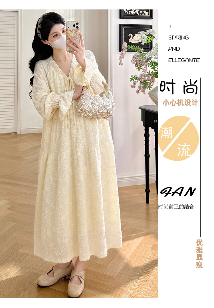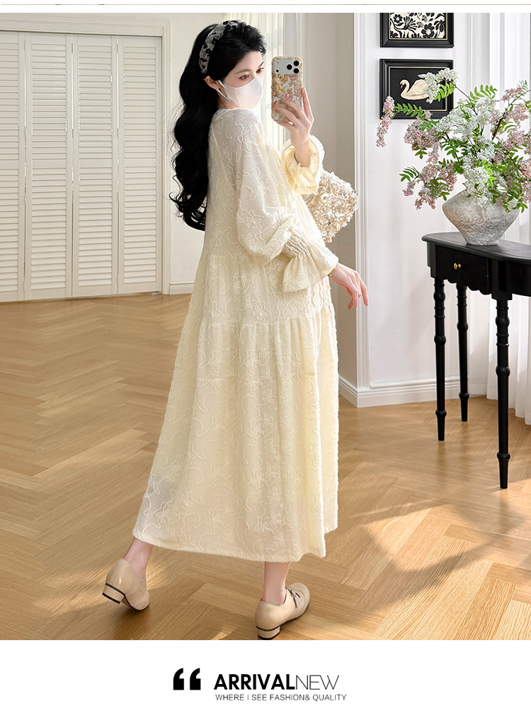 실사 봄 새로운 부드러운 바람 무거운 작업 자카드 중간 길이 임산부 드레스