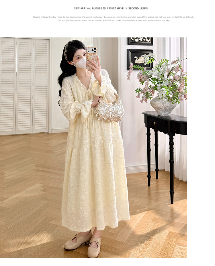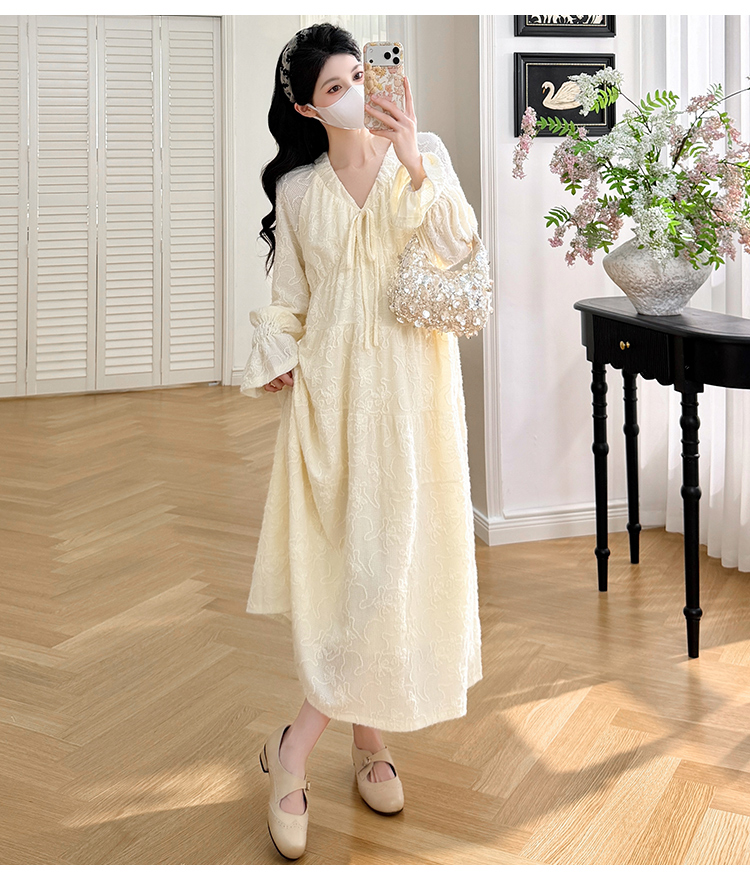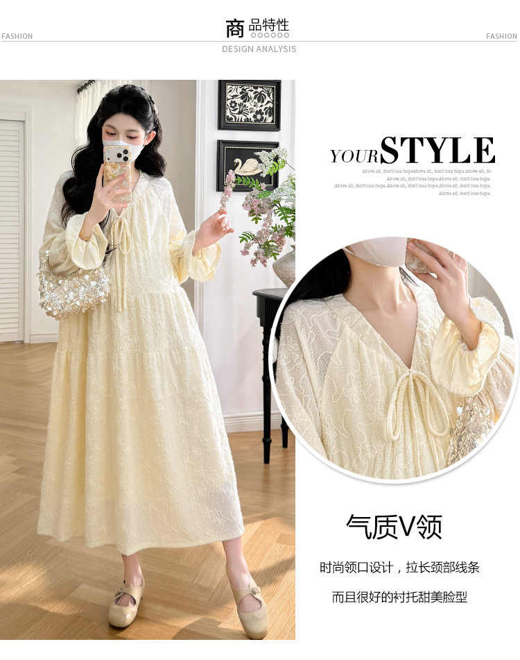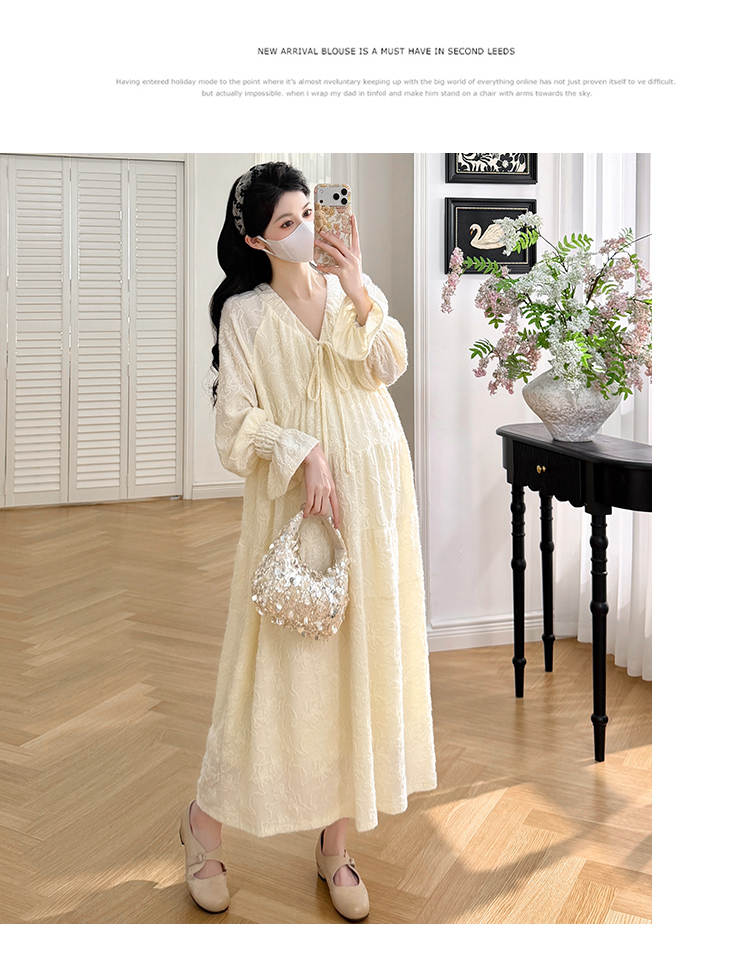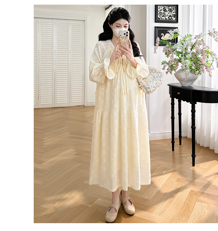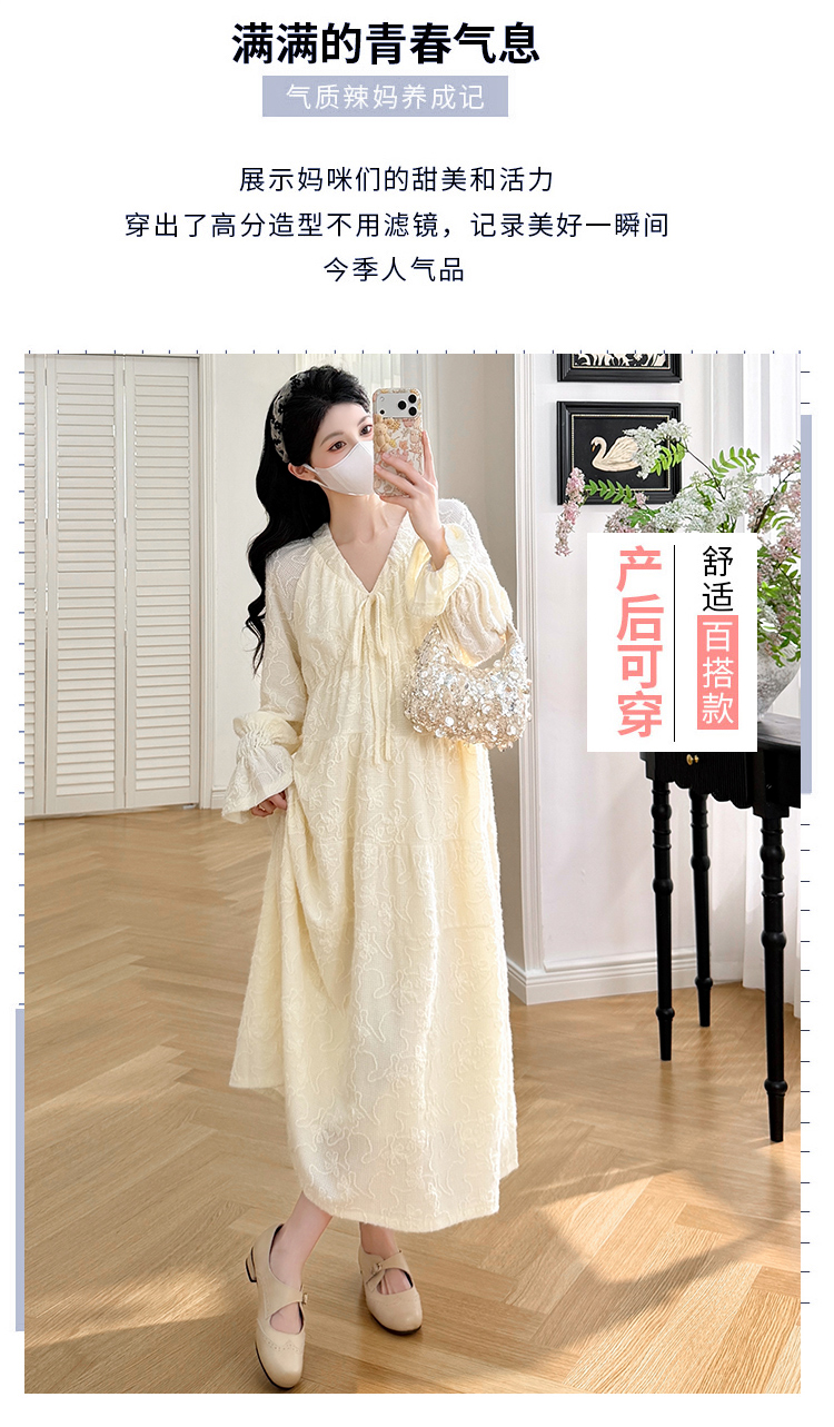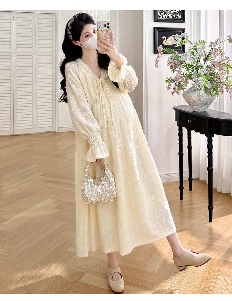 실사 봄 새로운 부드러운 바람 무거운 작업 자카드 중간 길이 임산부 드레스