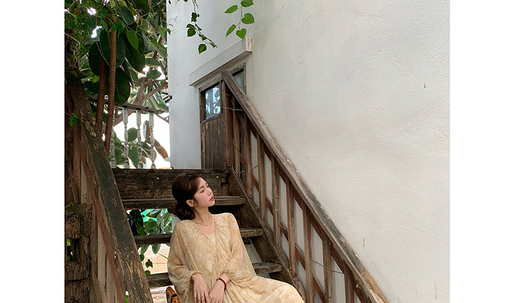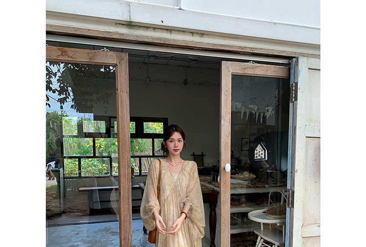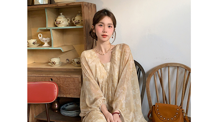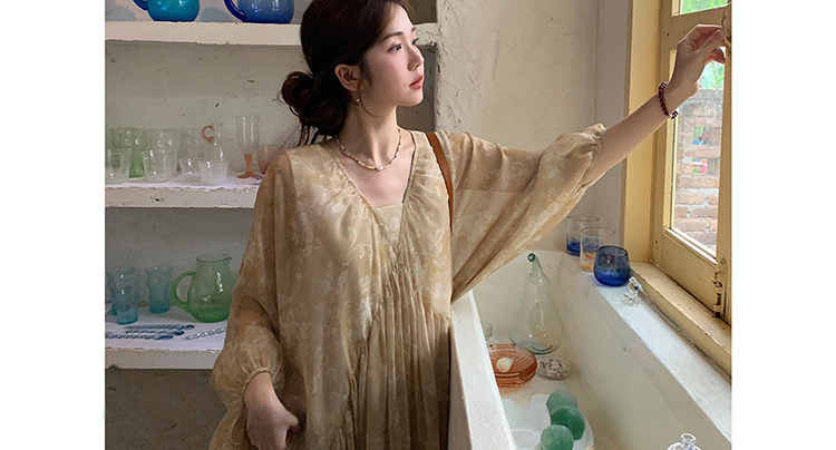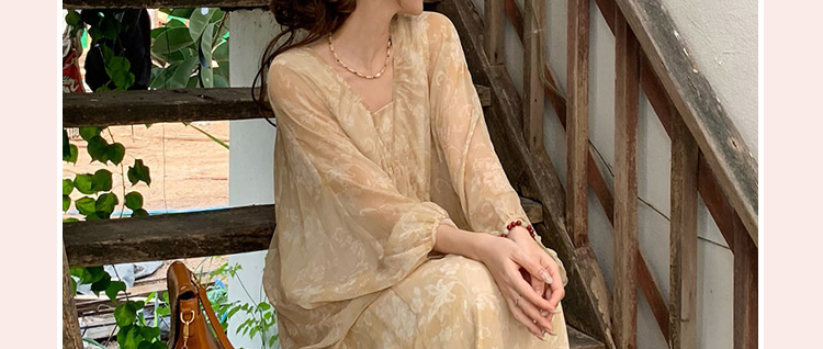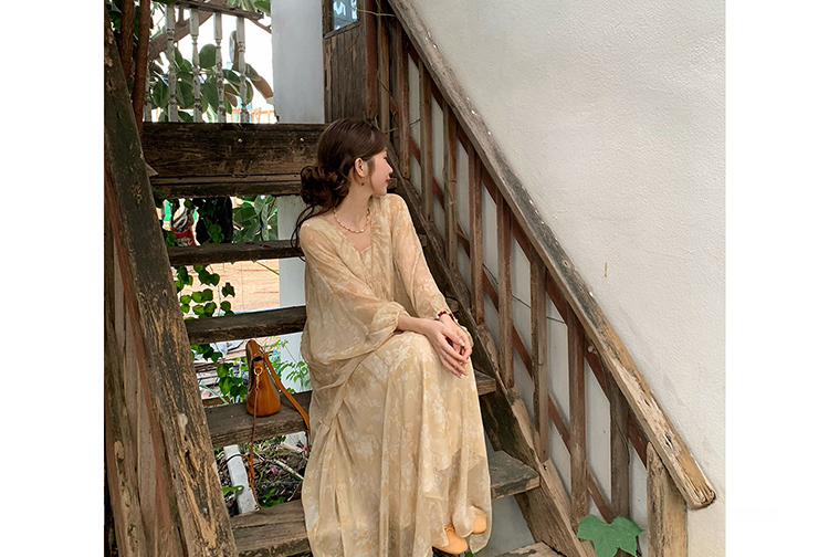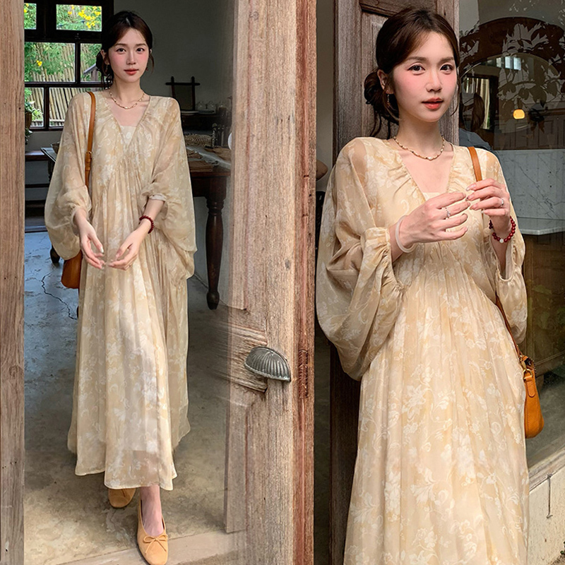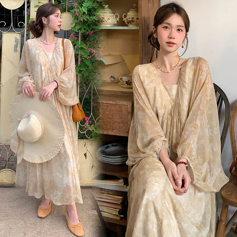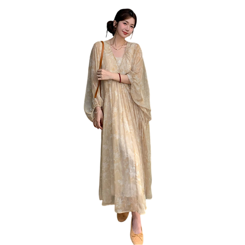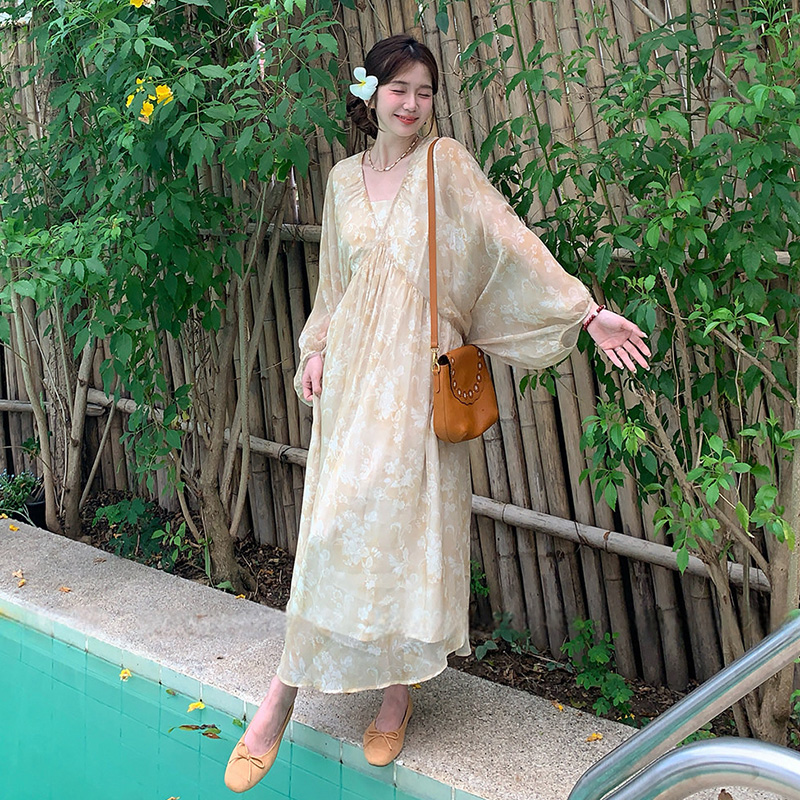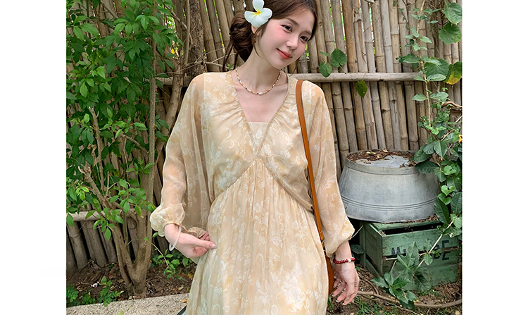 여름 드레스 새로운 V넥 부드러운 바람 품격 임산부 롱 스커트