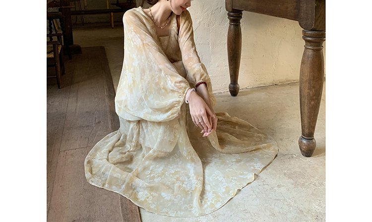 실사 봄 새로운 부드러운 바람 무거운 작업 자카드 중간 길이 임산부 드레스