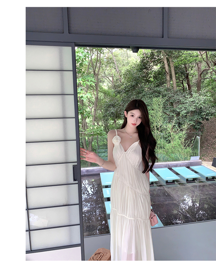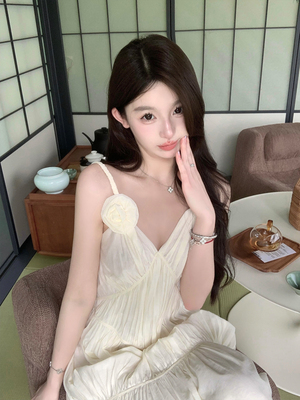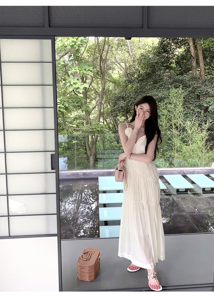 휴가 세트 여성 품격 명문 여성 순수한 욕망 섹시함 십자가 행침 목 맨위 3 차원 꽃 큰 진자 롱 스커트 투피스 세트