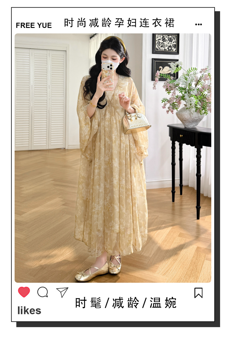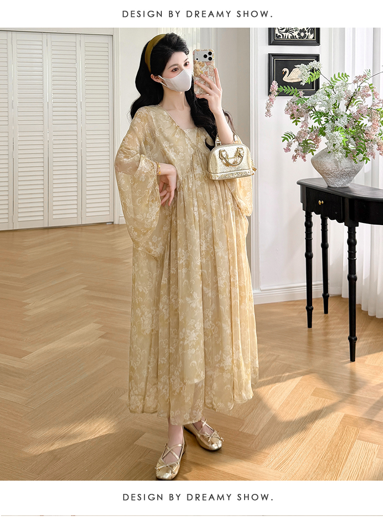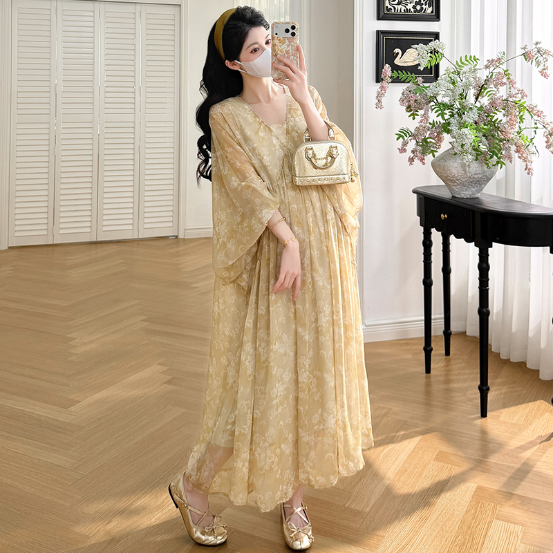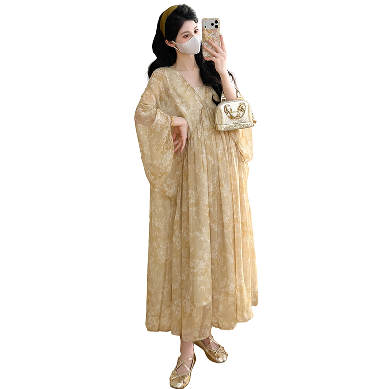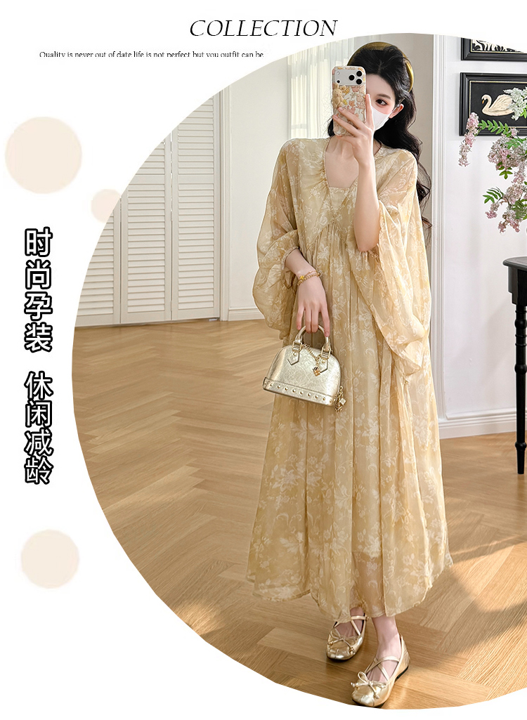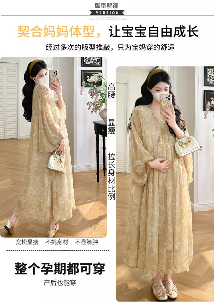 여름 드레스 새로운 V넥 부드러운 바람 품격 임산부 롱 스커트