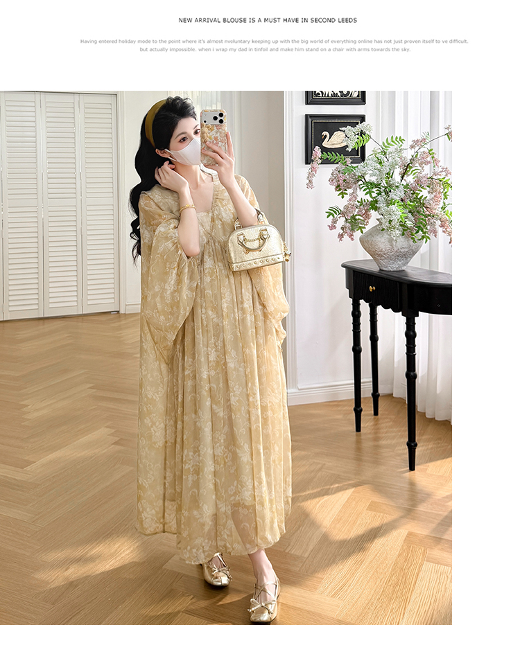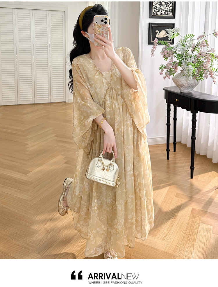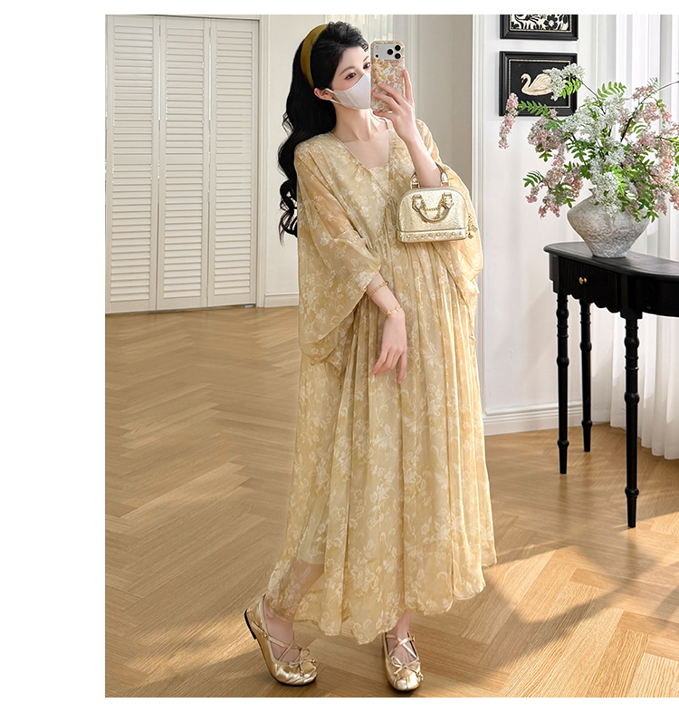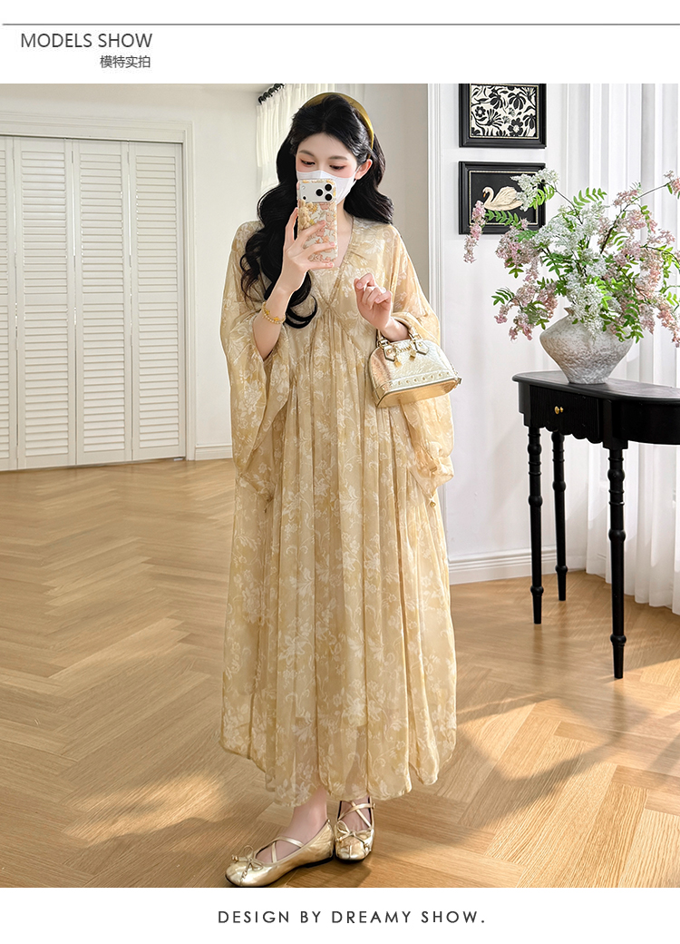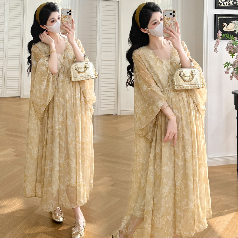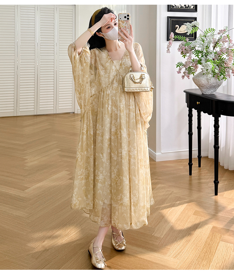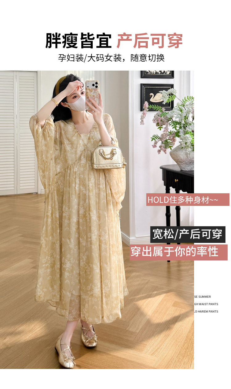 여름 드레스 새로운 V넥 부드러운 바람 품격 임산부 롱 스커트