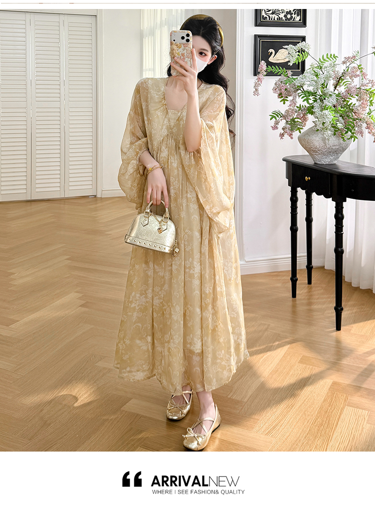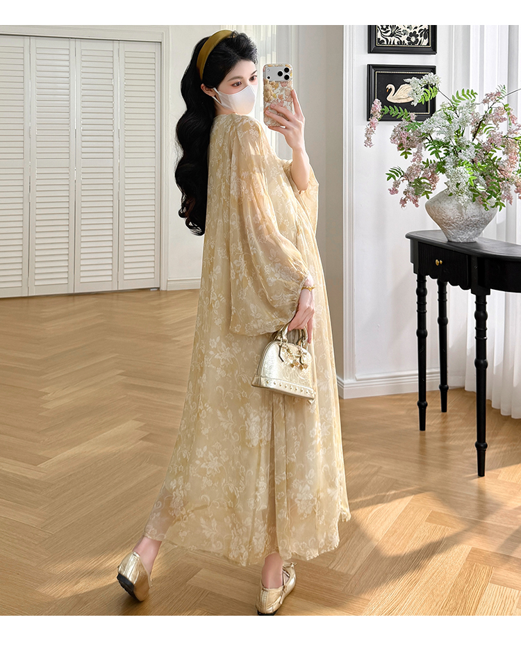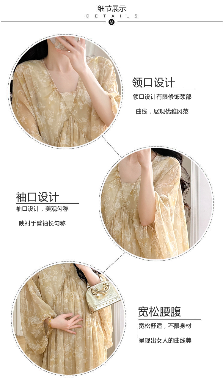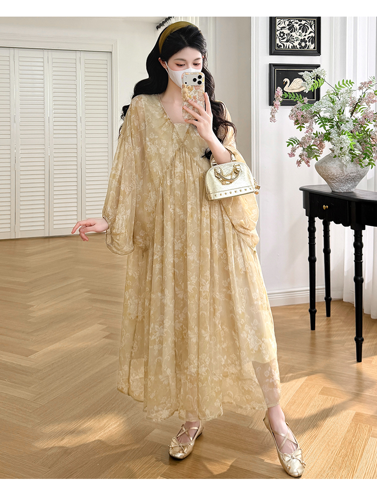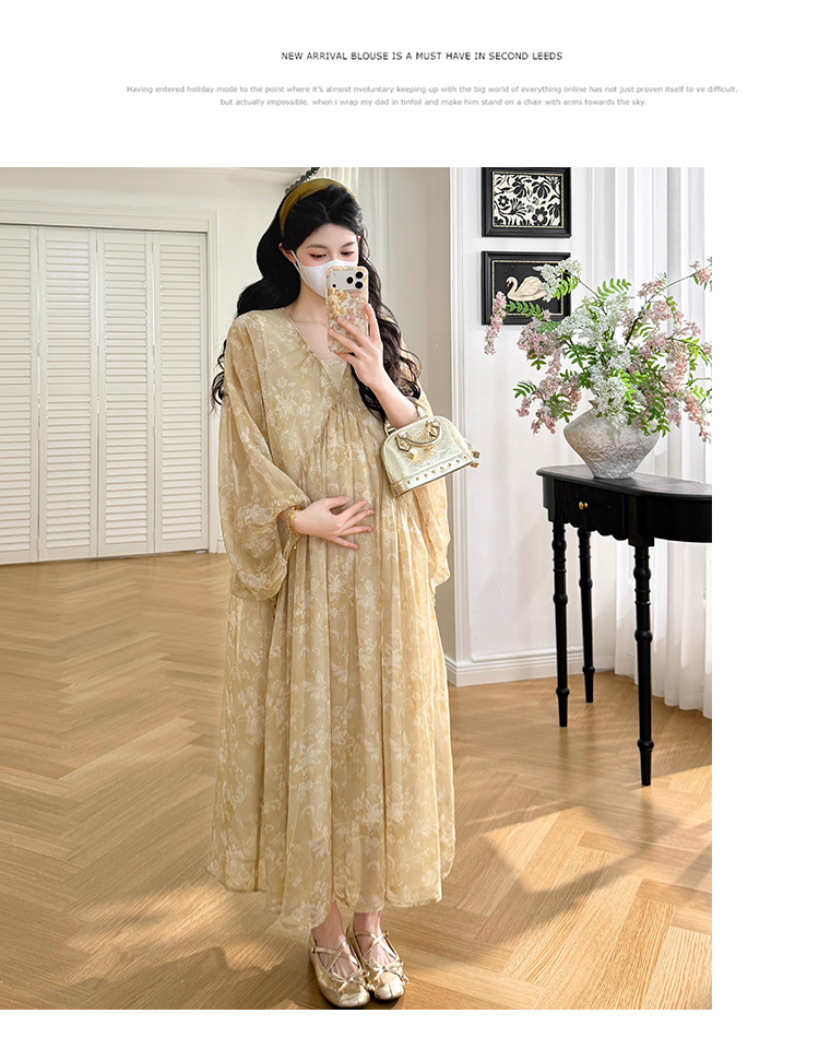 실사 봄 새로운 부드러운 바람 무거운 작업 자카드 중간 길이 임산부 드레스