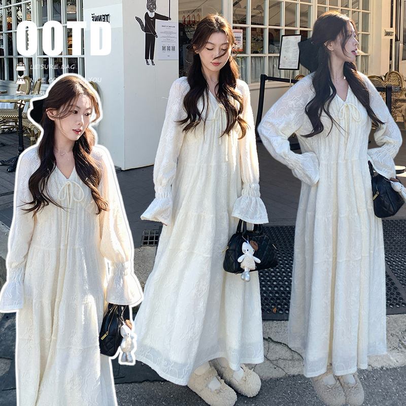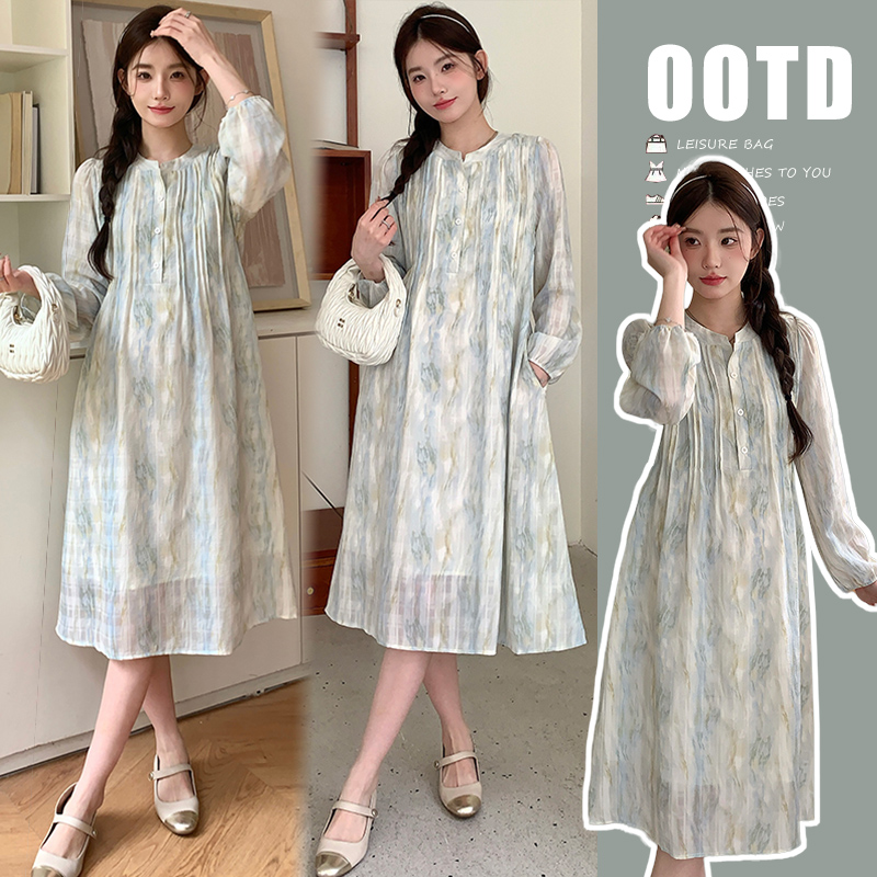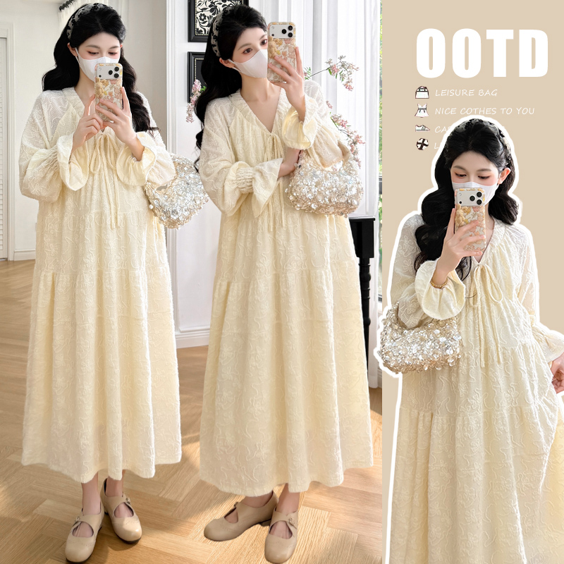 실사 봄 새로운 부드러운 바람 무거운 작업 자카드 중간 길이 임산부 드레스