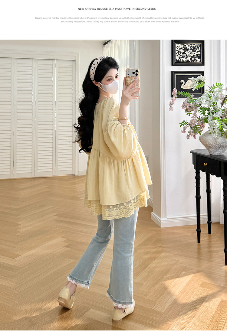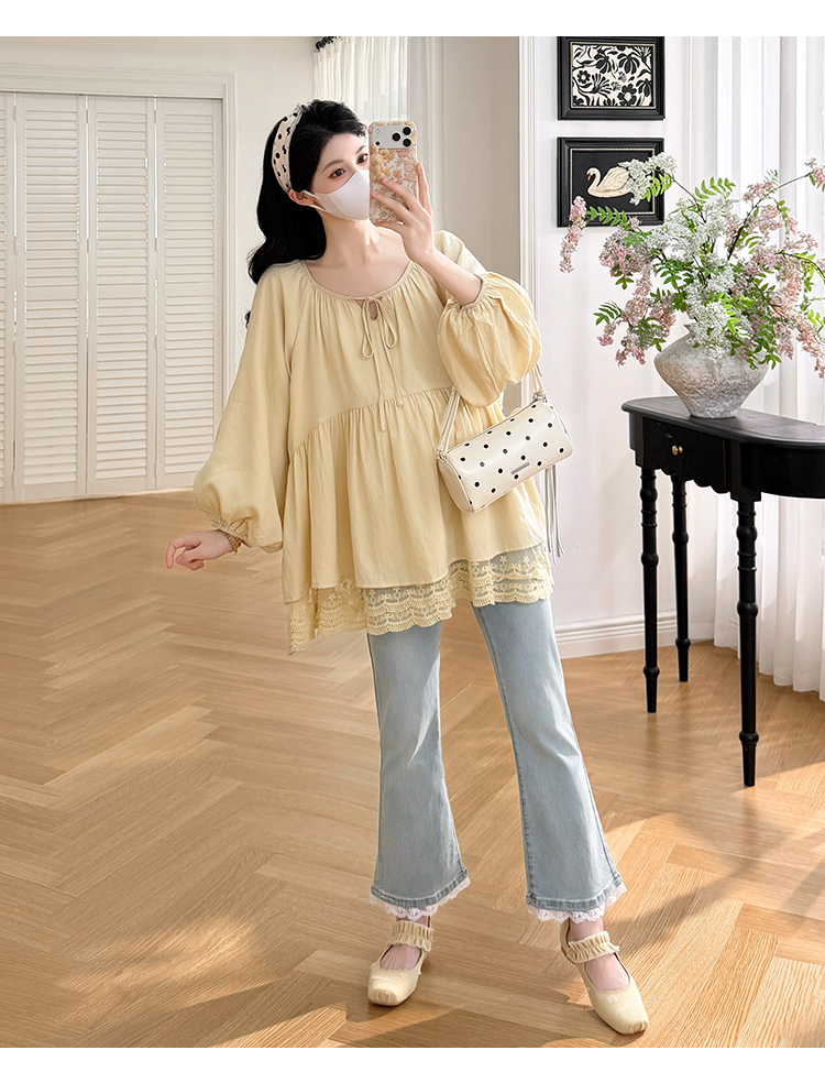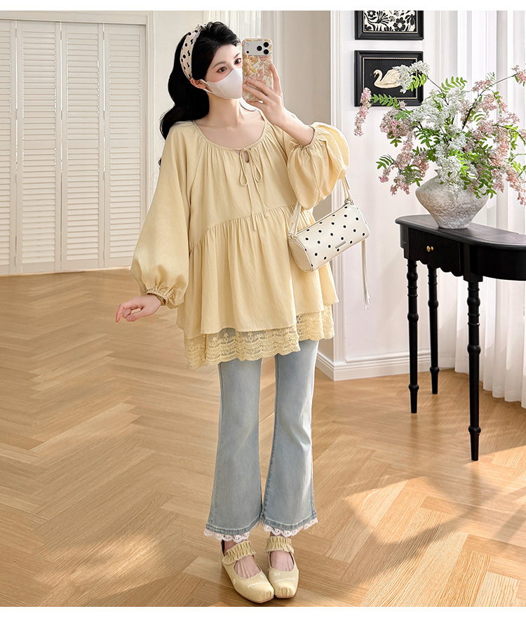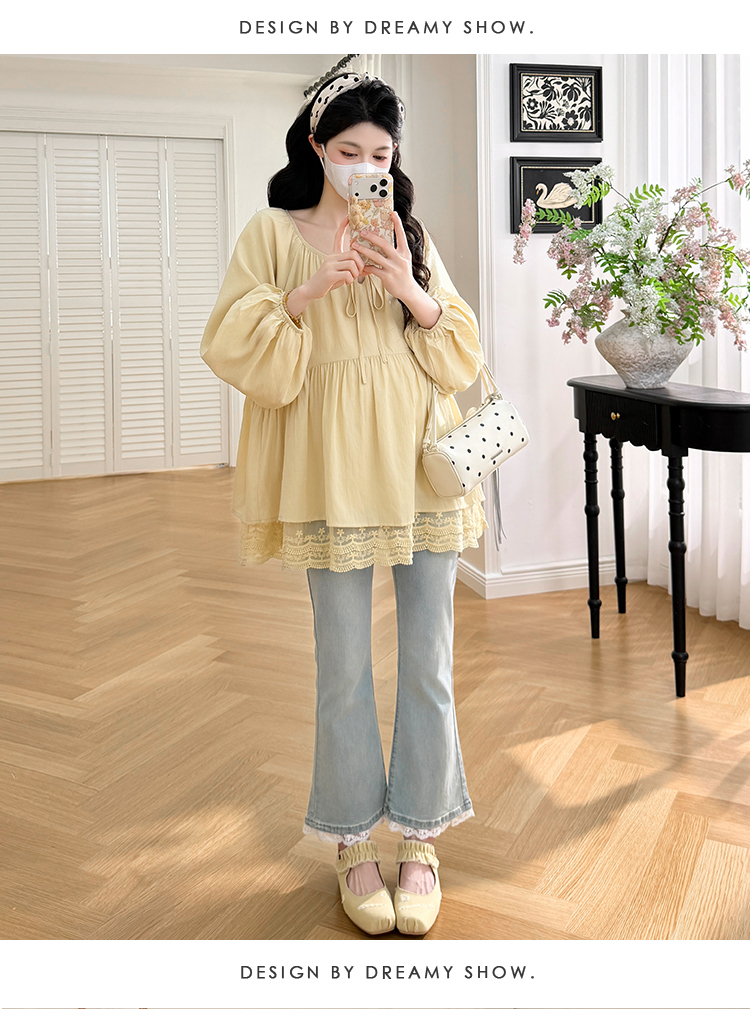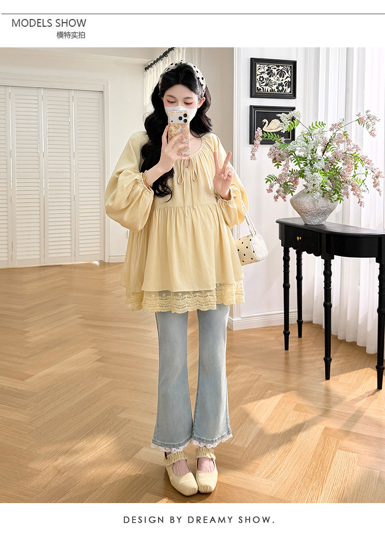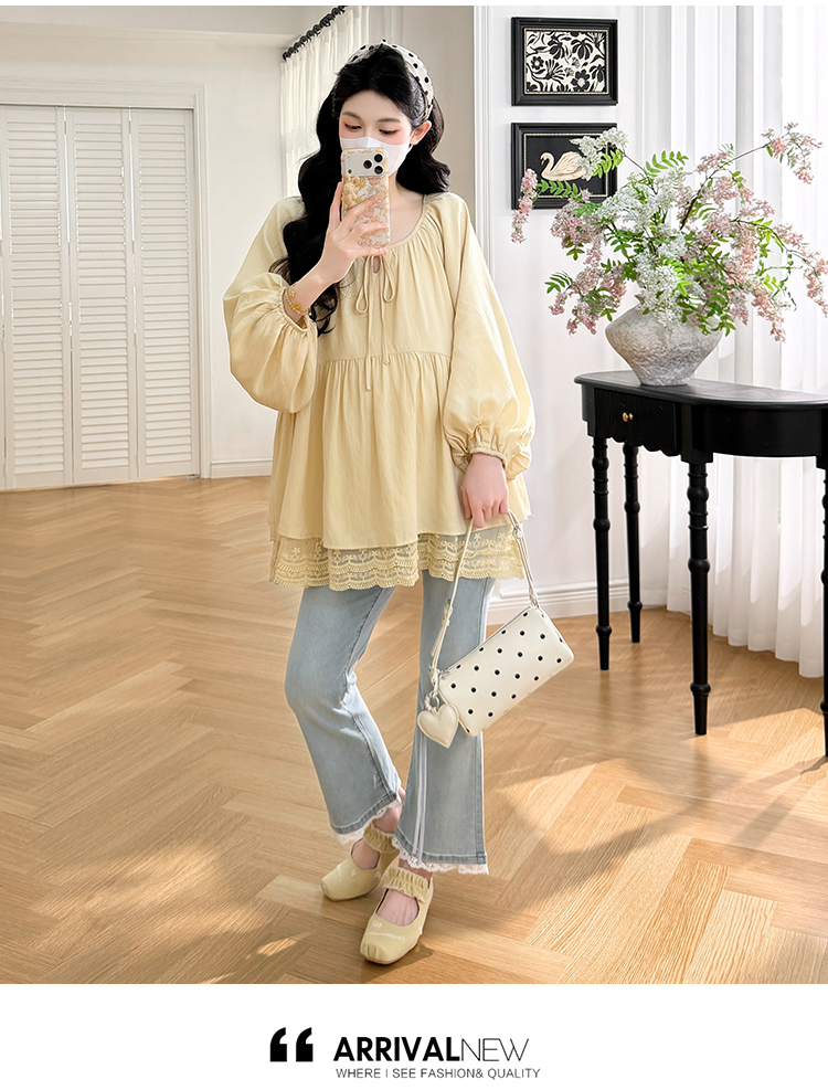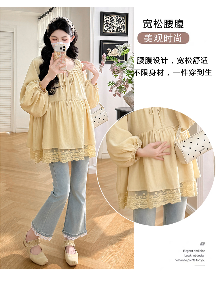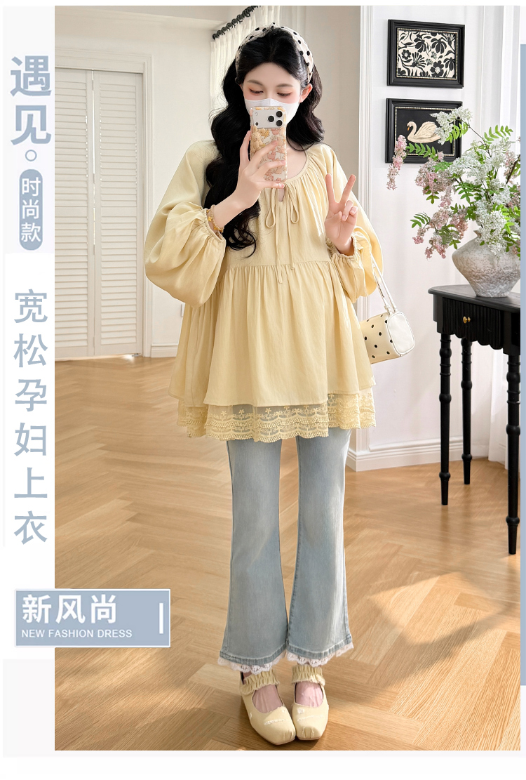 실사 봄 드레스 새로운 프랑스식 스트랩 라운드 넥 루즈핏 인형 셔츠 임산부 맨위