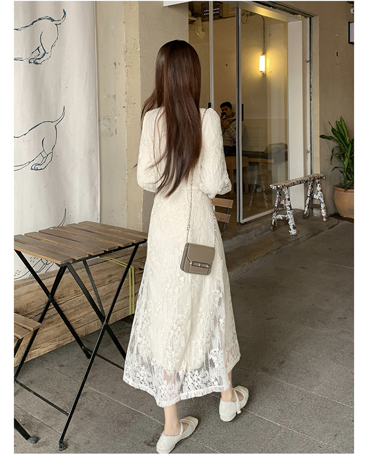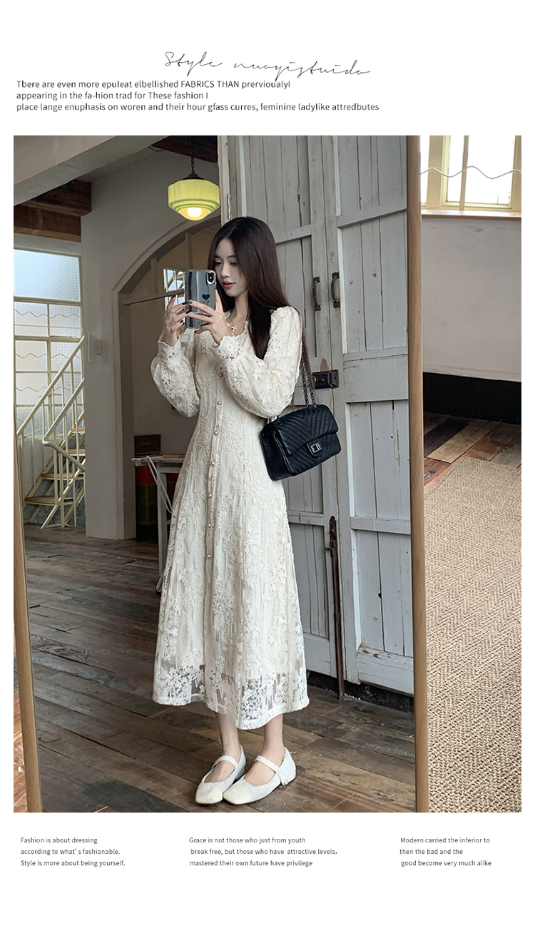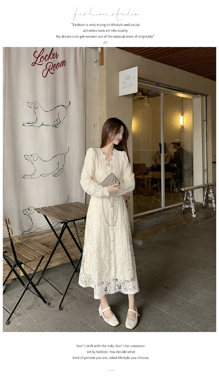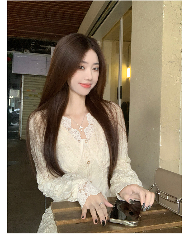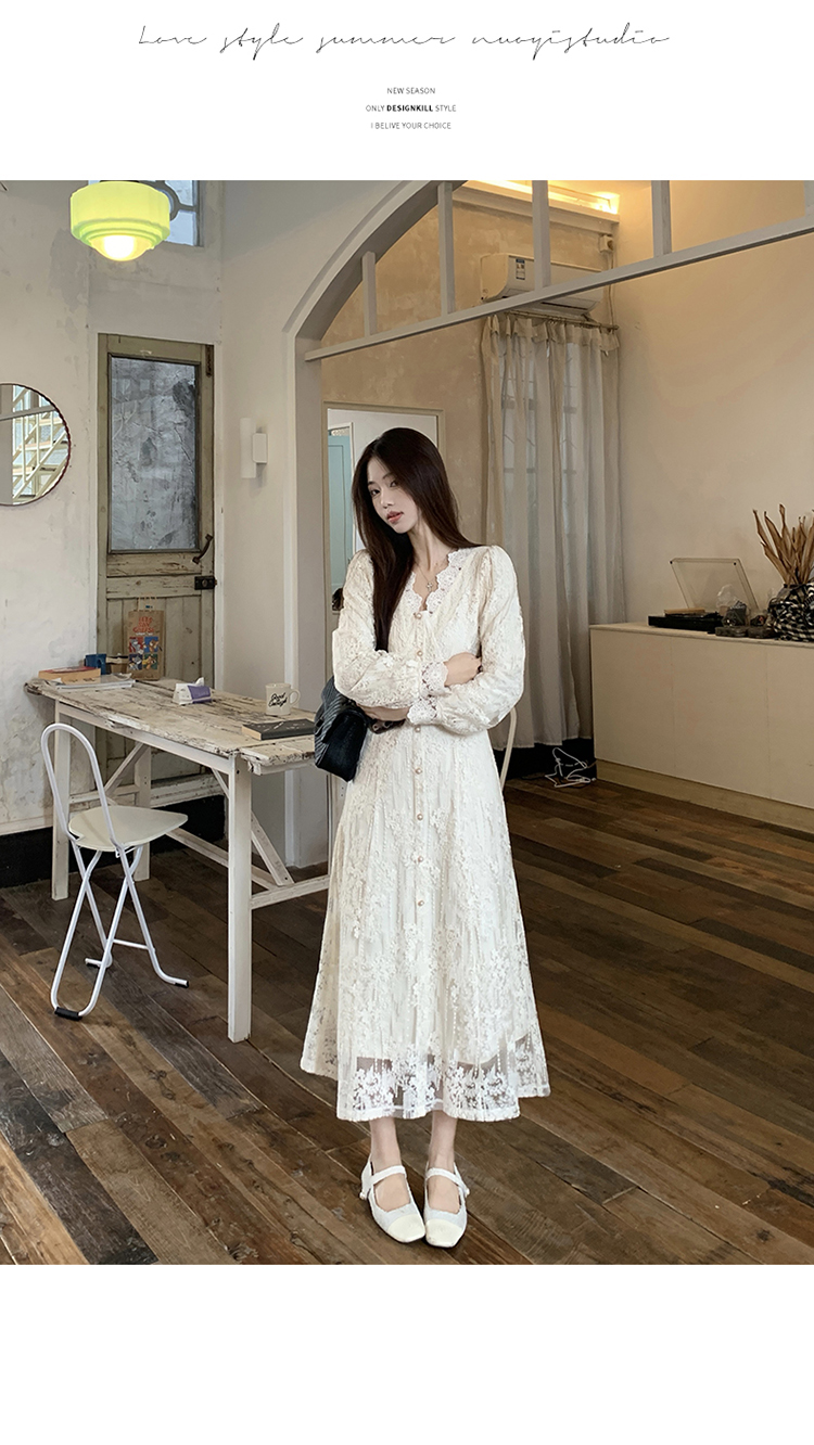 실사 가을 프랑스식 고급 센스 V넥 긴팔 드레스 2026 이른 봄 새로운 아름다운 치마 허리 수축 롱 스커트