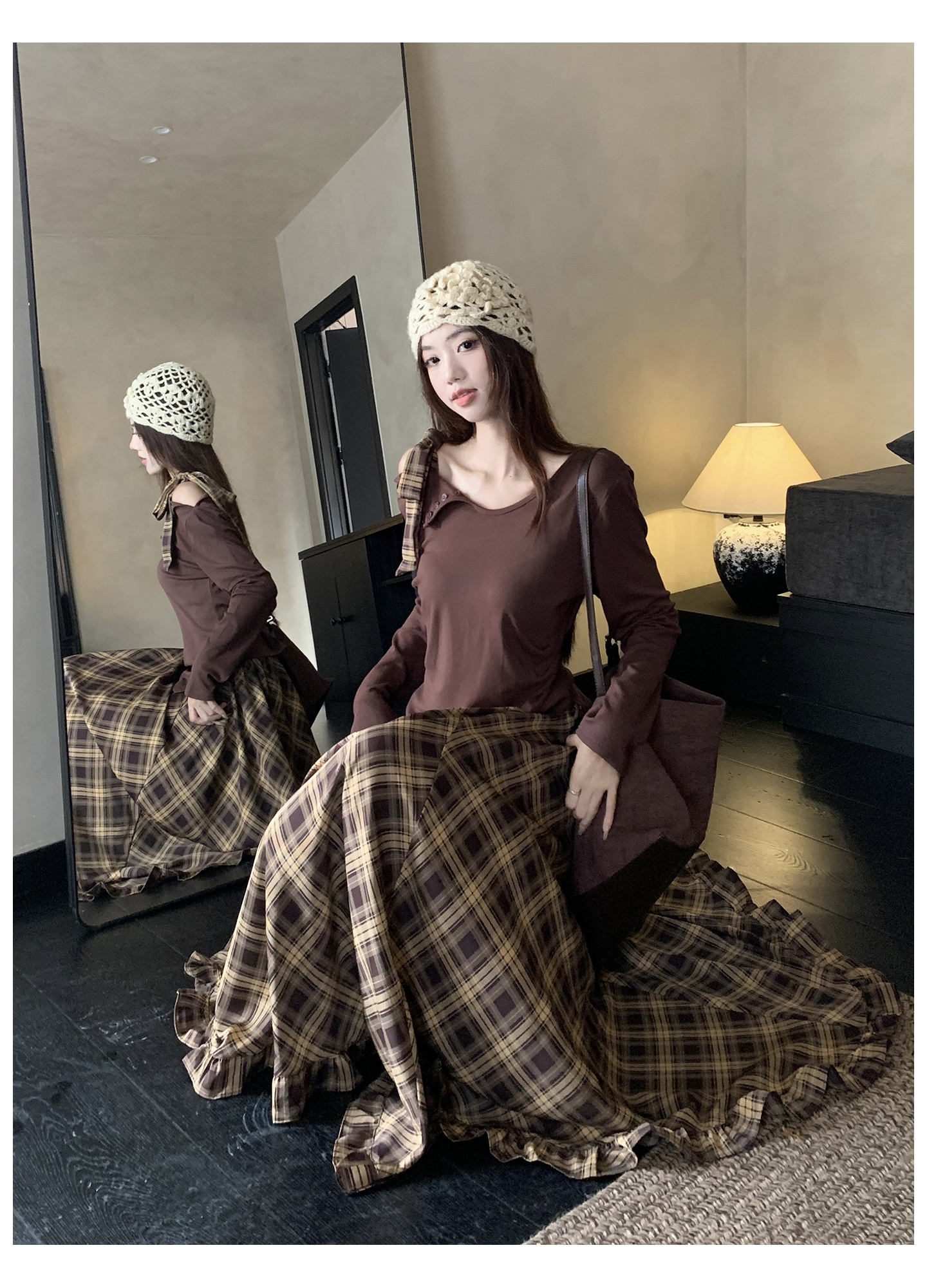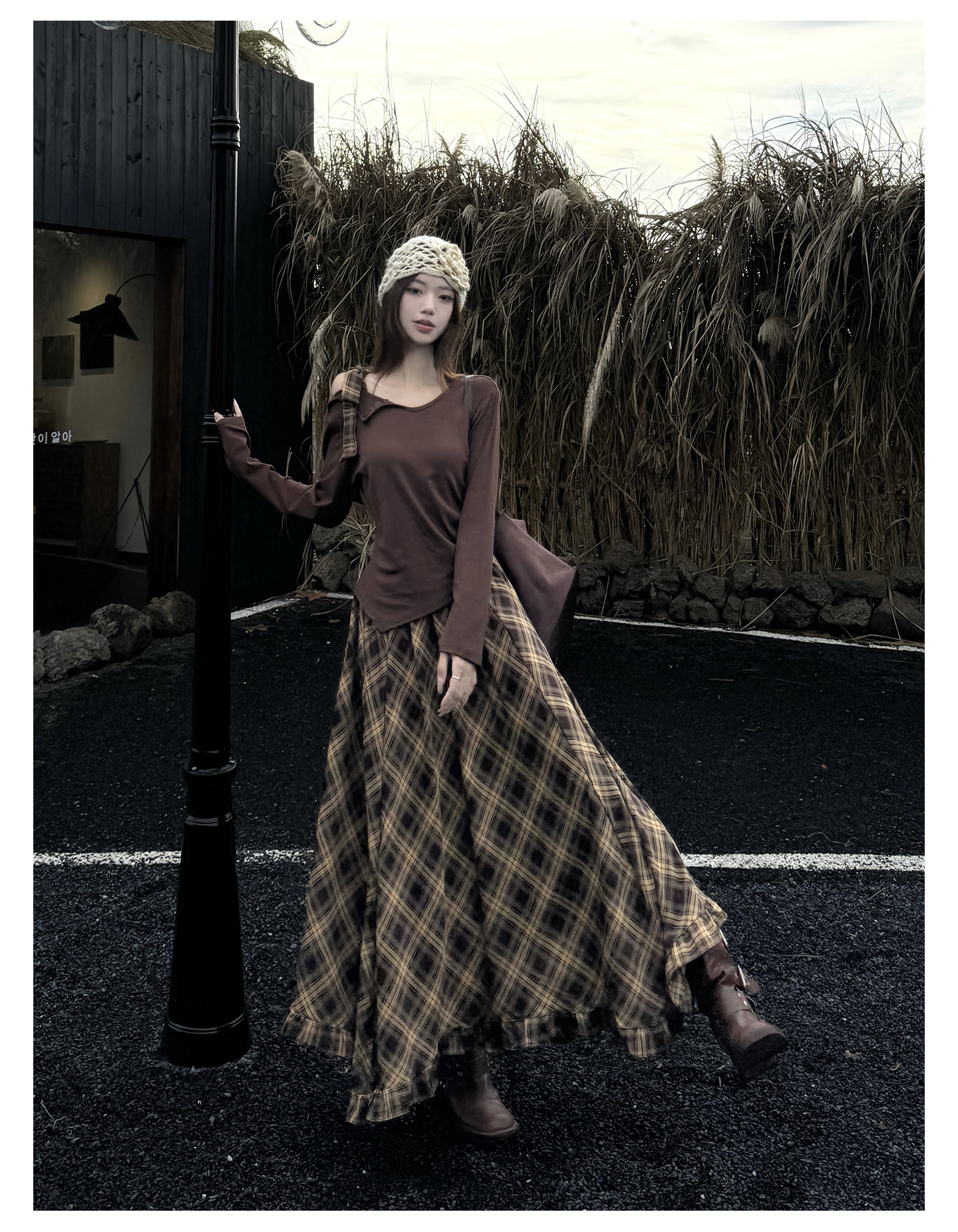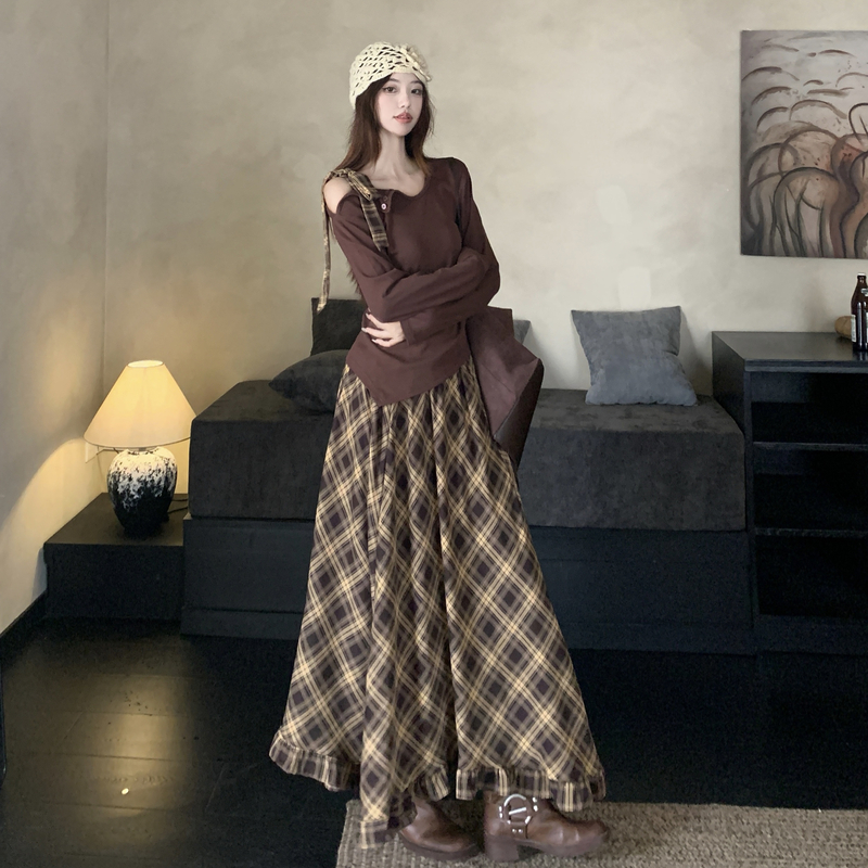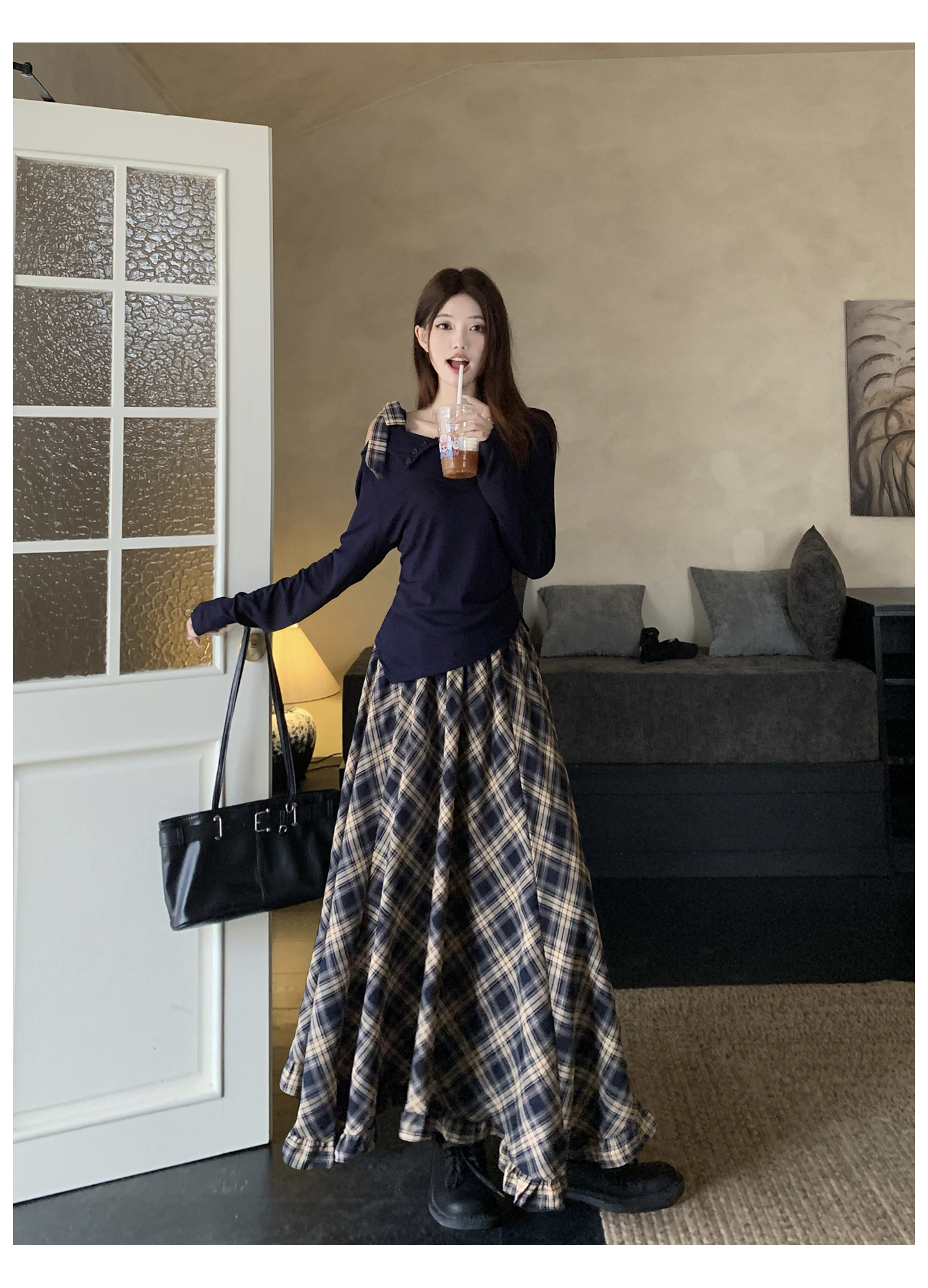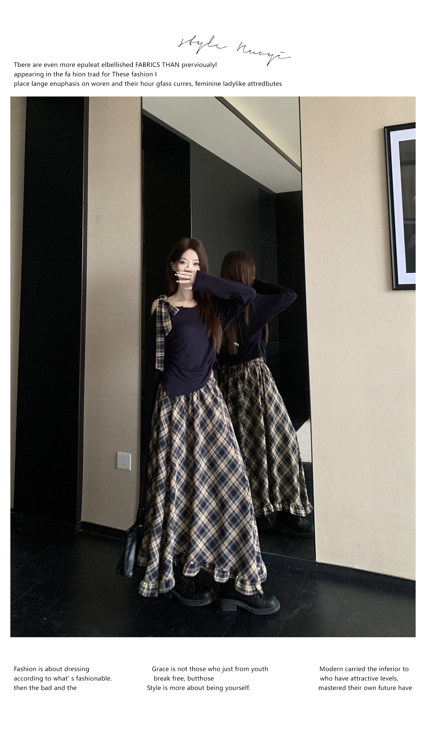 실사 2026 봄 빅 사이즈 여성 의류 레트로 투피스 세트 체크무늬 드레스 표지 배 슬림해 보이는 치마 A라인 스커트