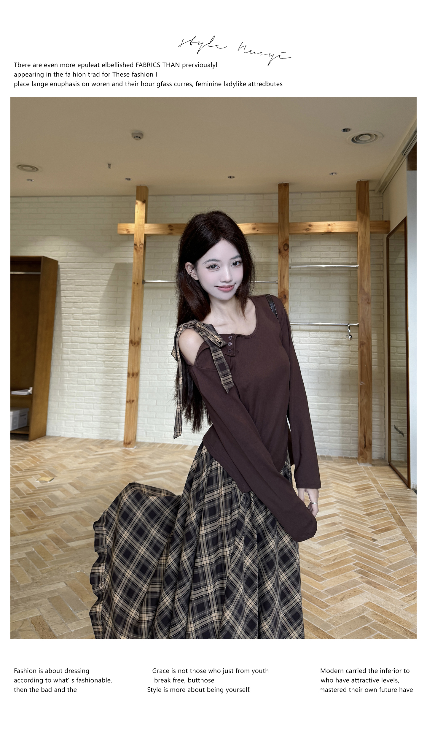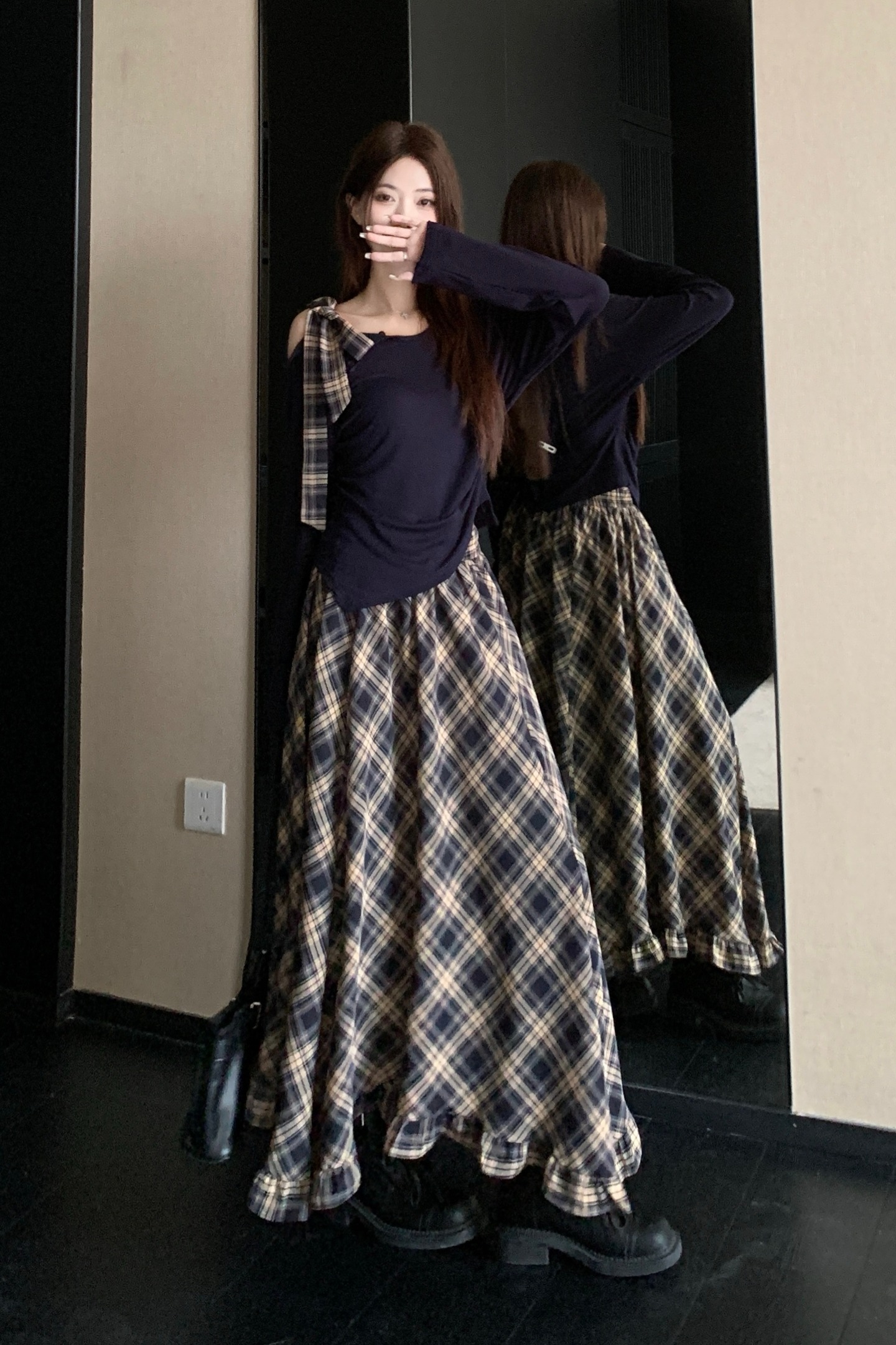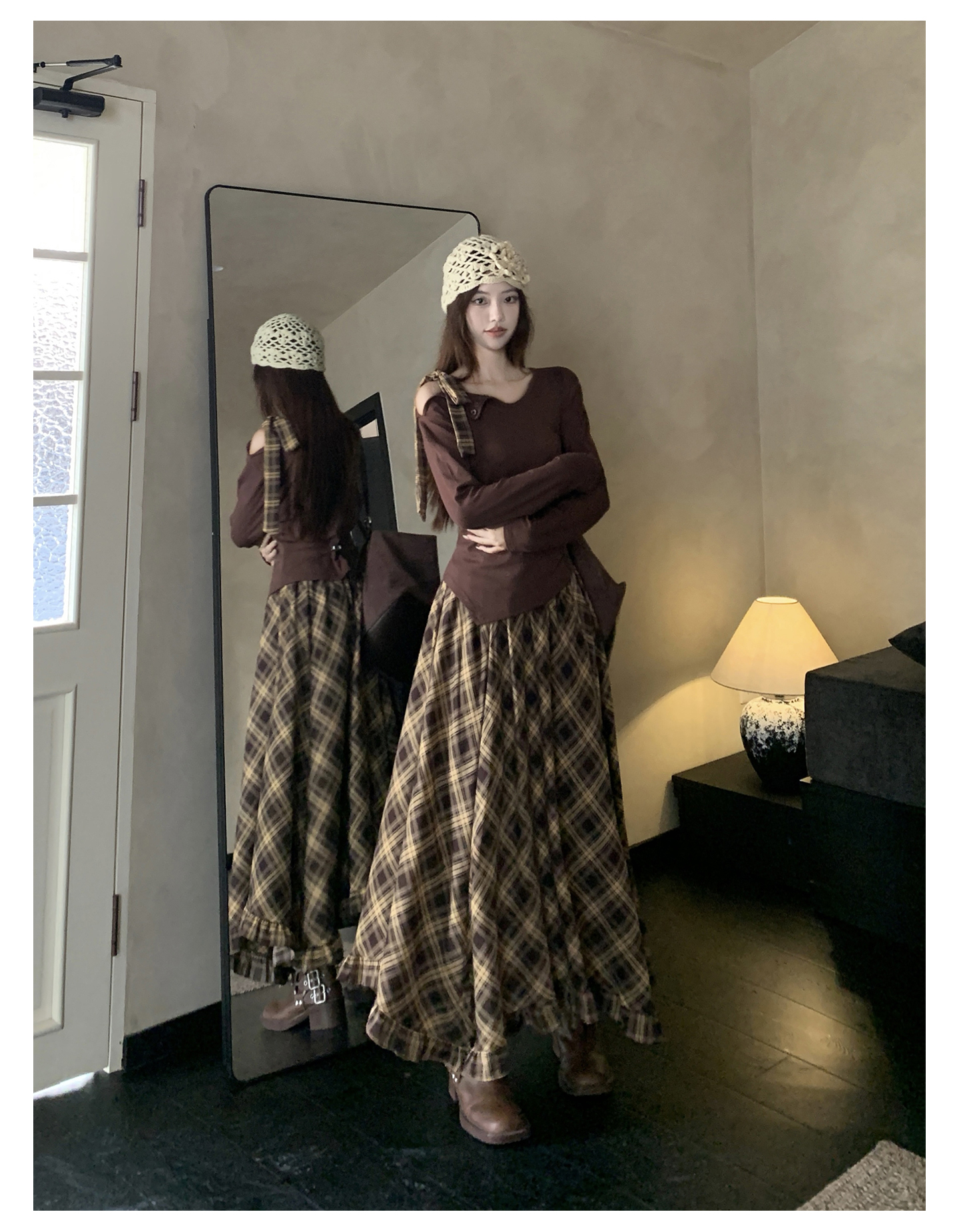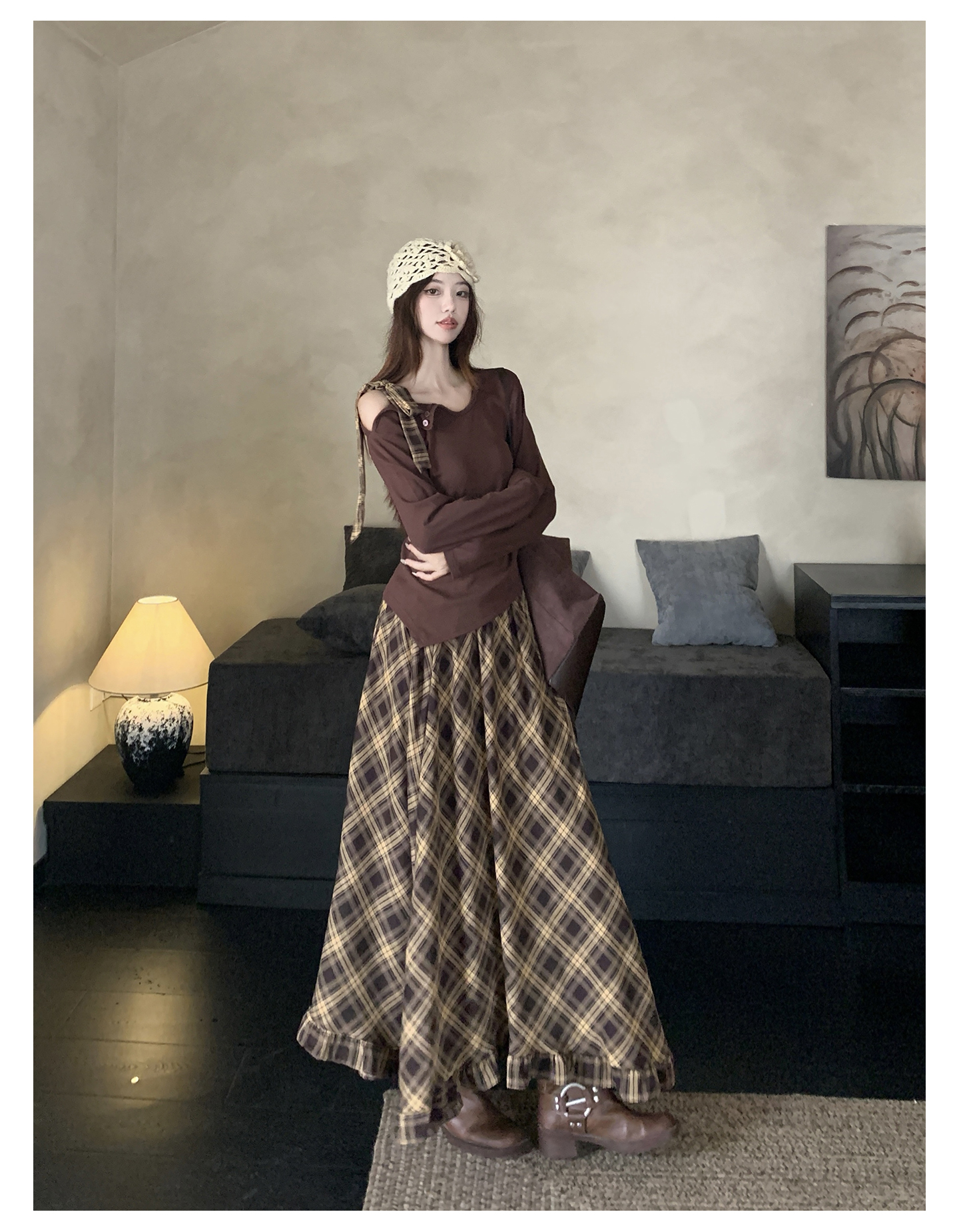 실사 2026 봄 빅 사이즈 여성 의류 레트로 투피스 세트 체크무늬 드레스 표지 배 슬림해 보이는 치마 A라인 스커트