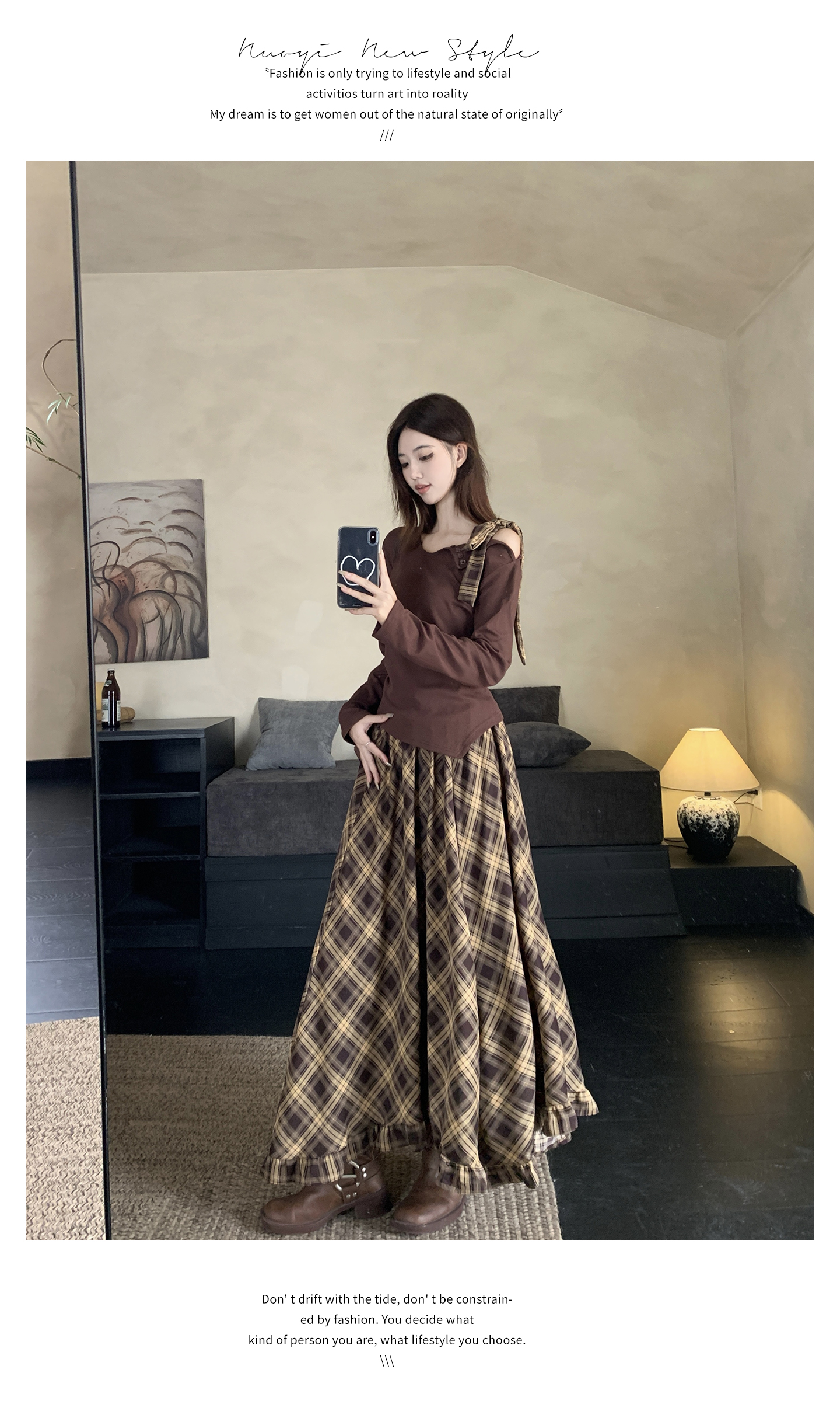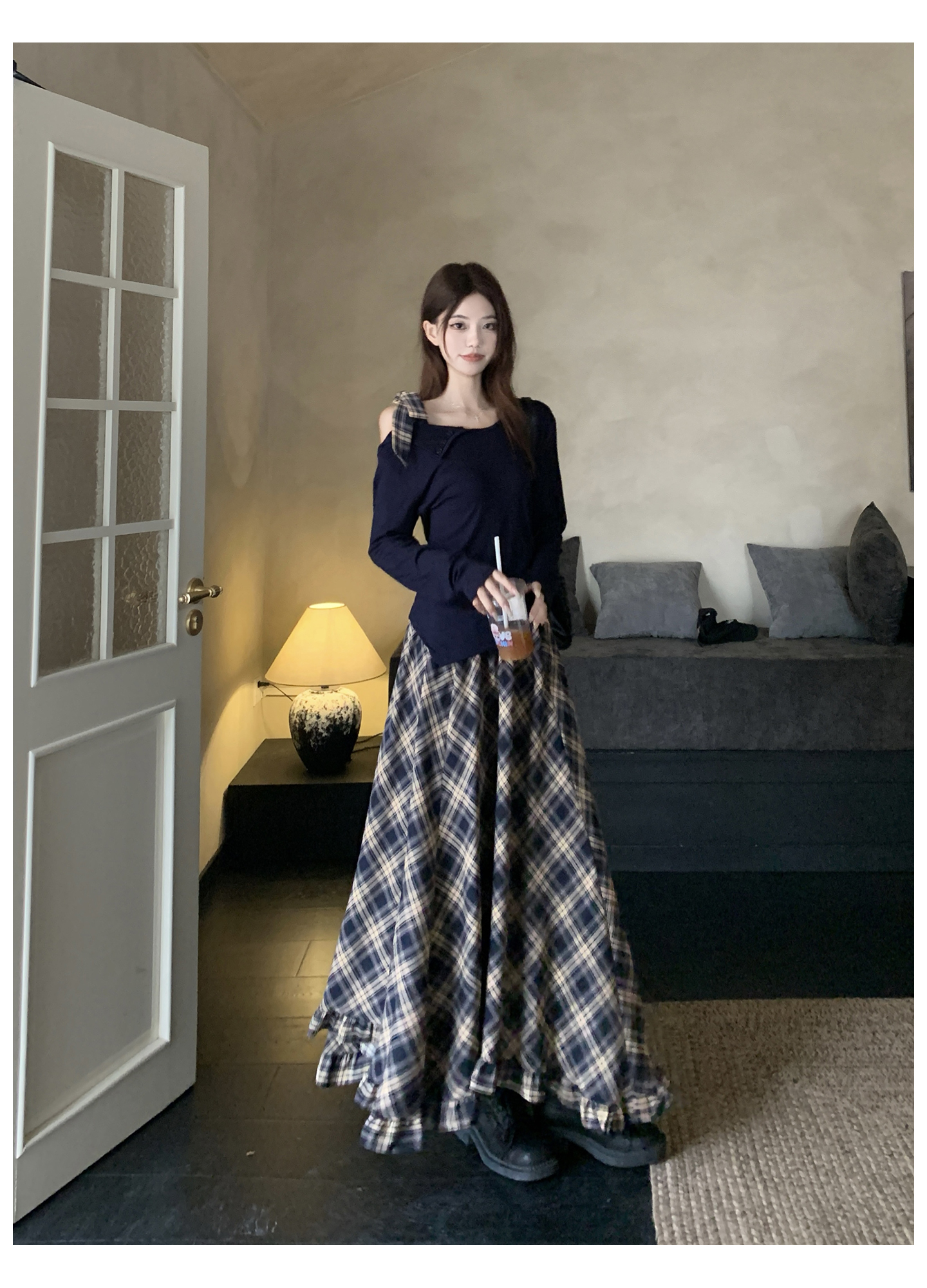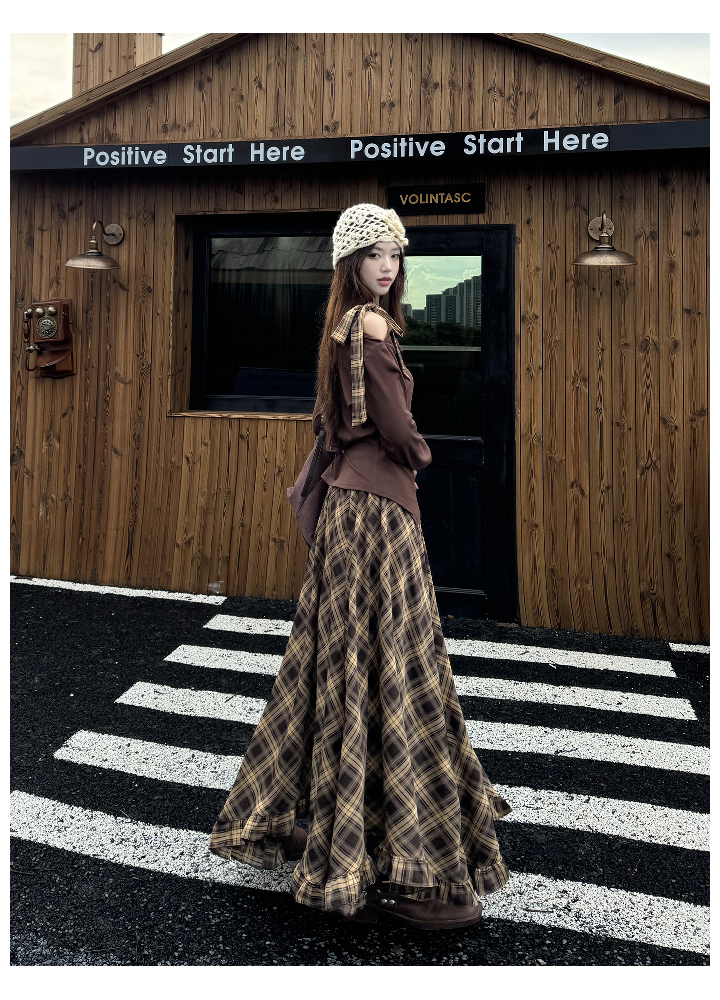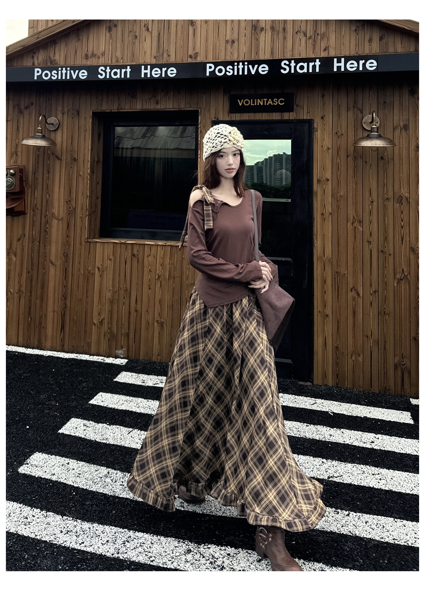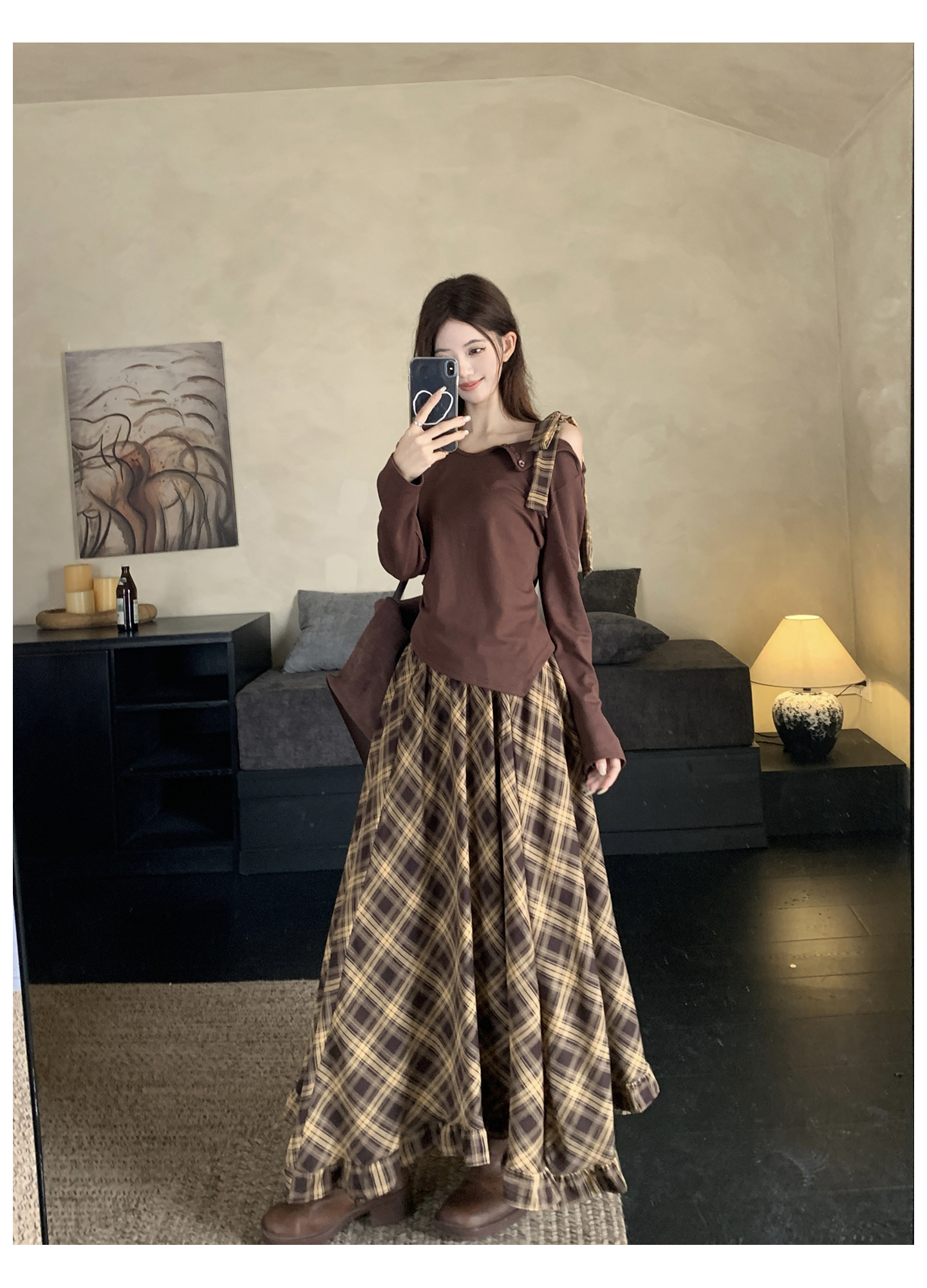 실사 2026 봄 빅 사이즈 여성 의류 레트로 투피스 세트 체크무늬 드레스 표지 배 슬림해 보이는 치마 A라인 스커트