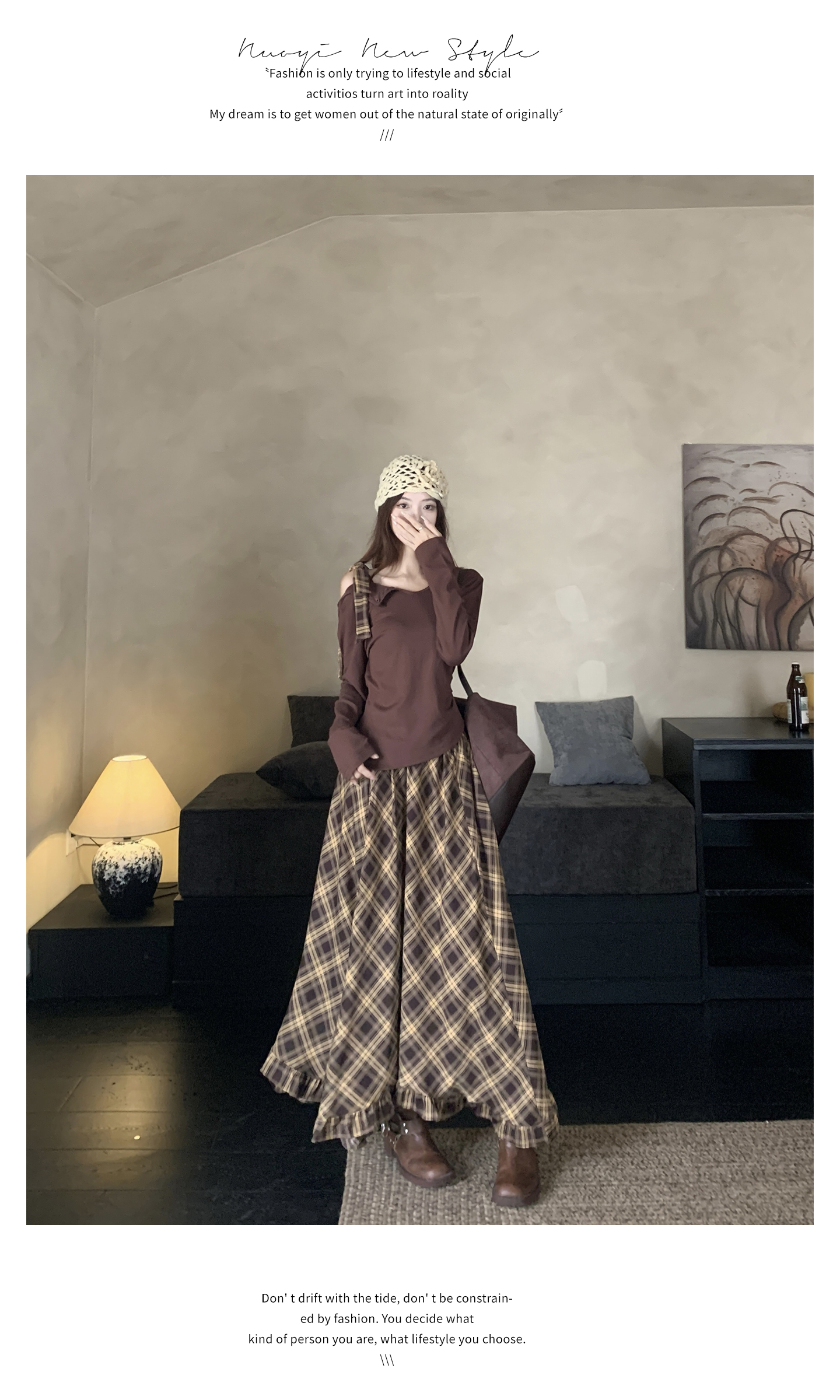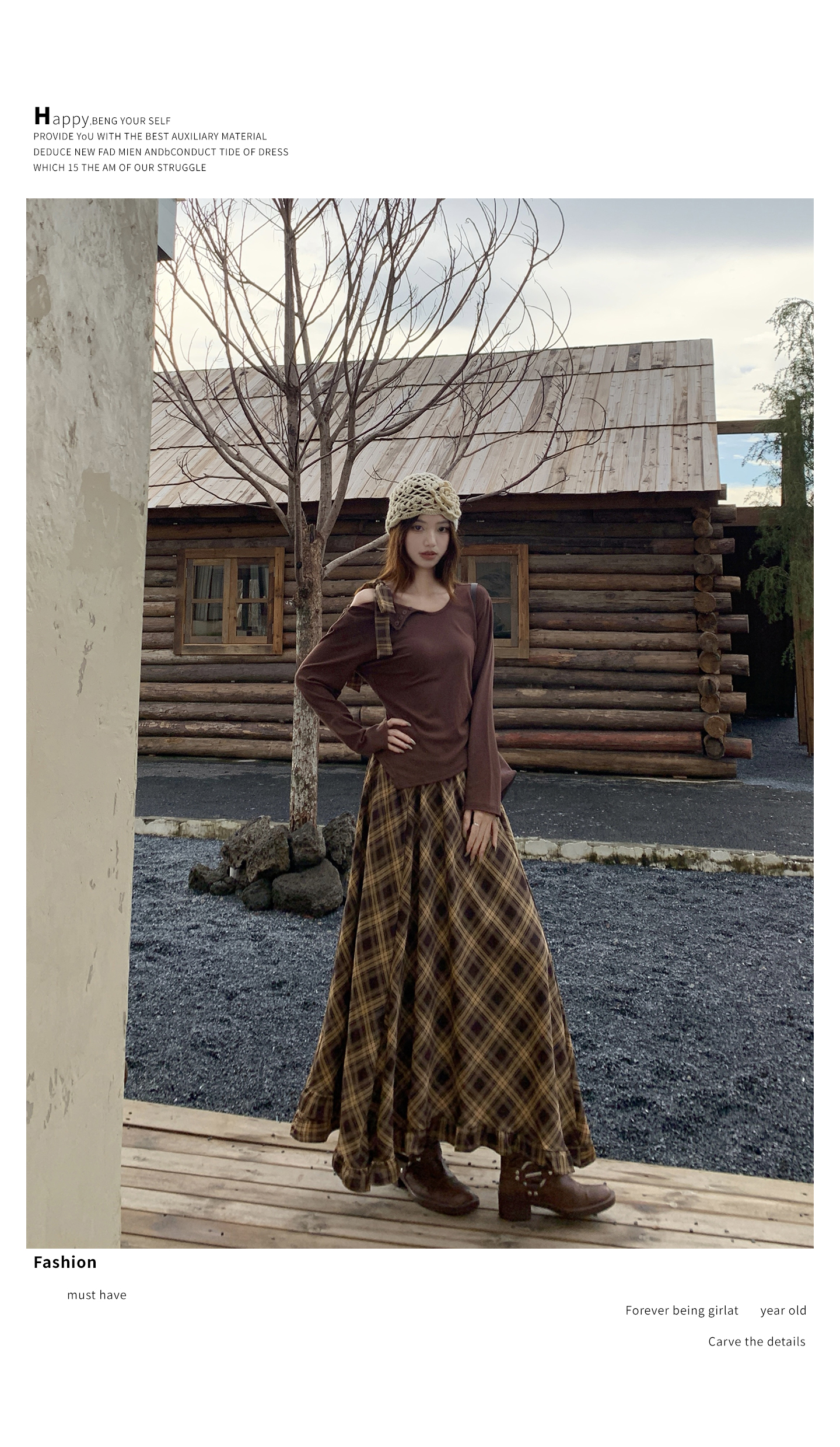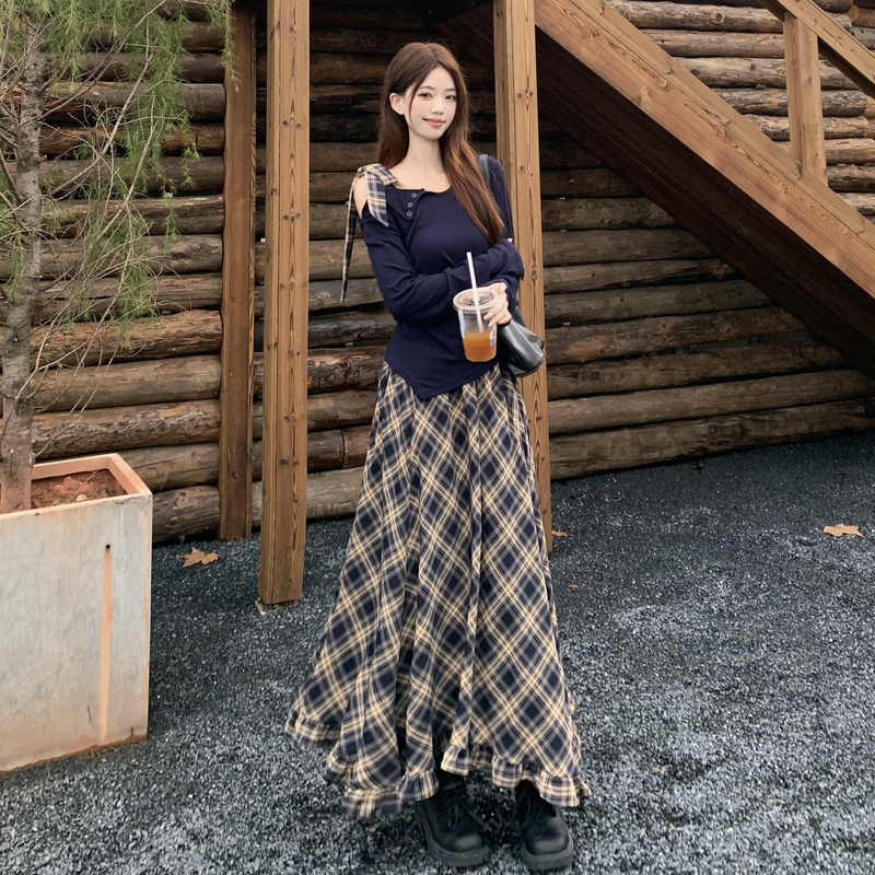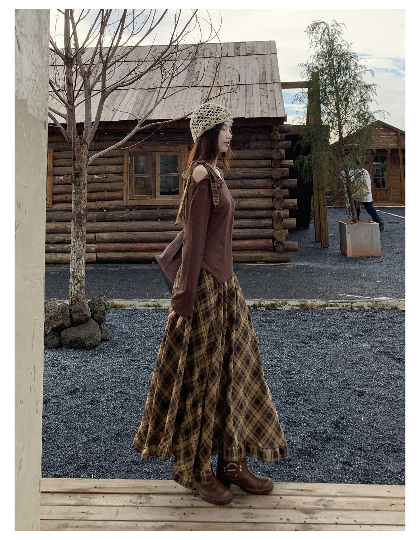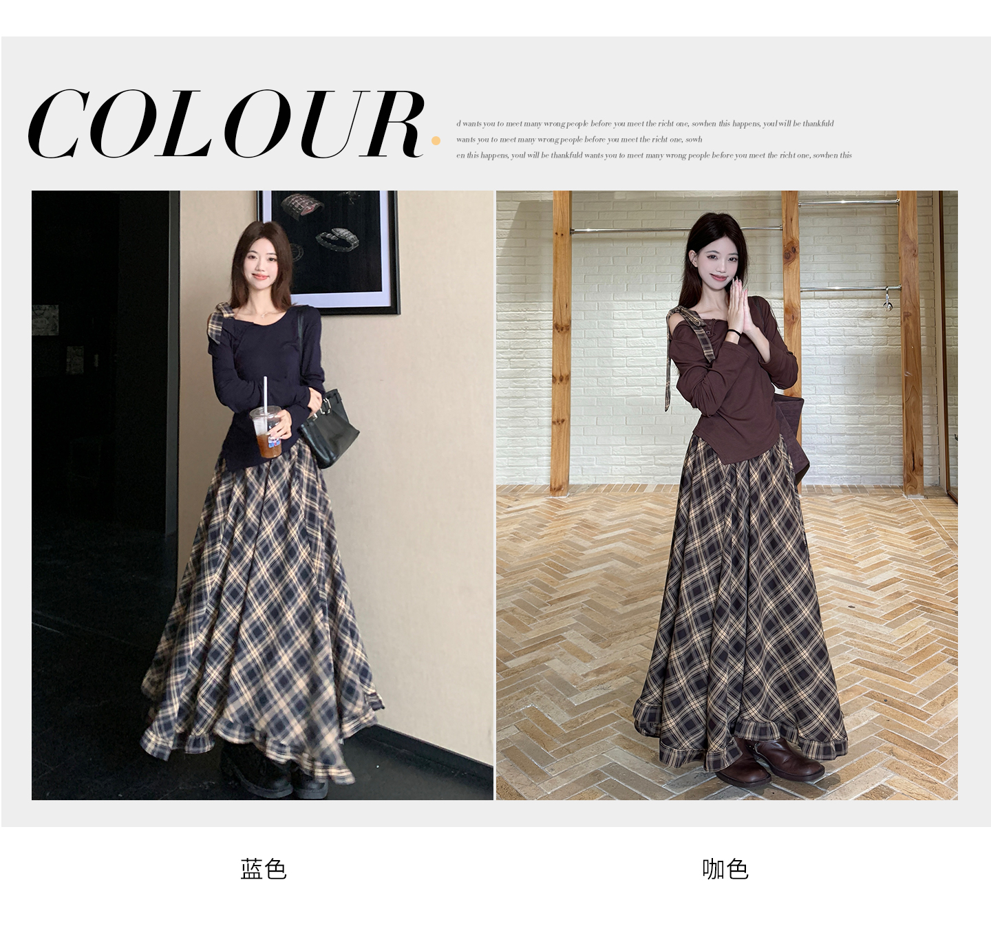 실사 2026 봄 빅 사이즈 여성 의류 레트로 투피스 세트 체크무늬 드레스 표지 배 슬림해 보이는 치마 A라인 스커트