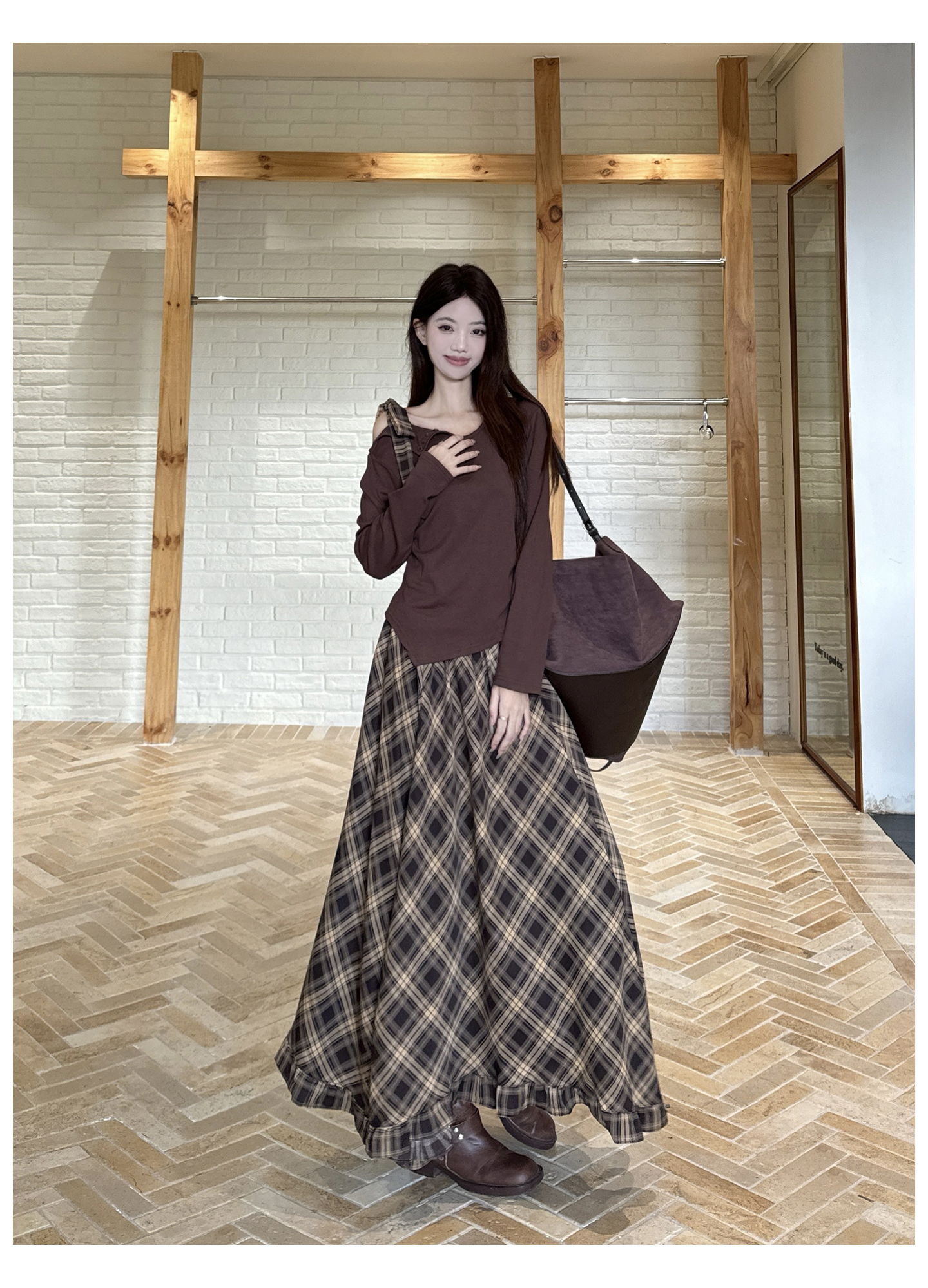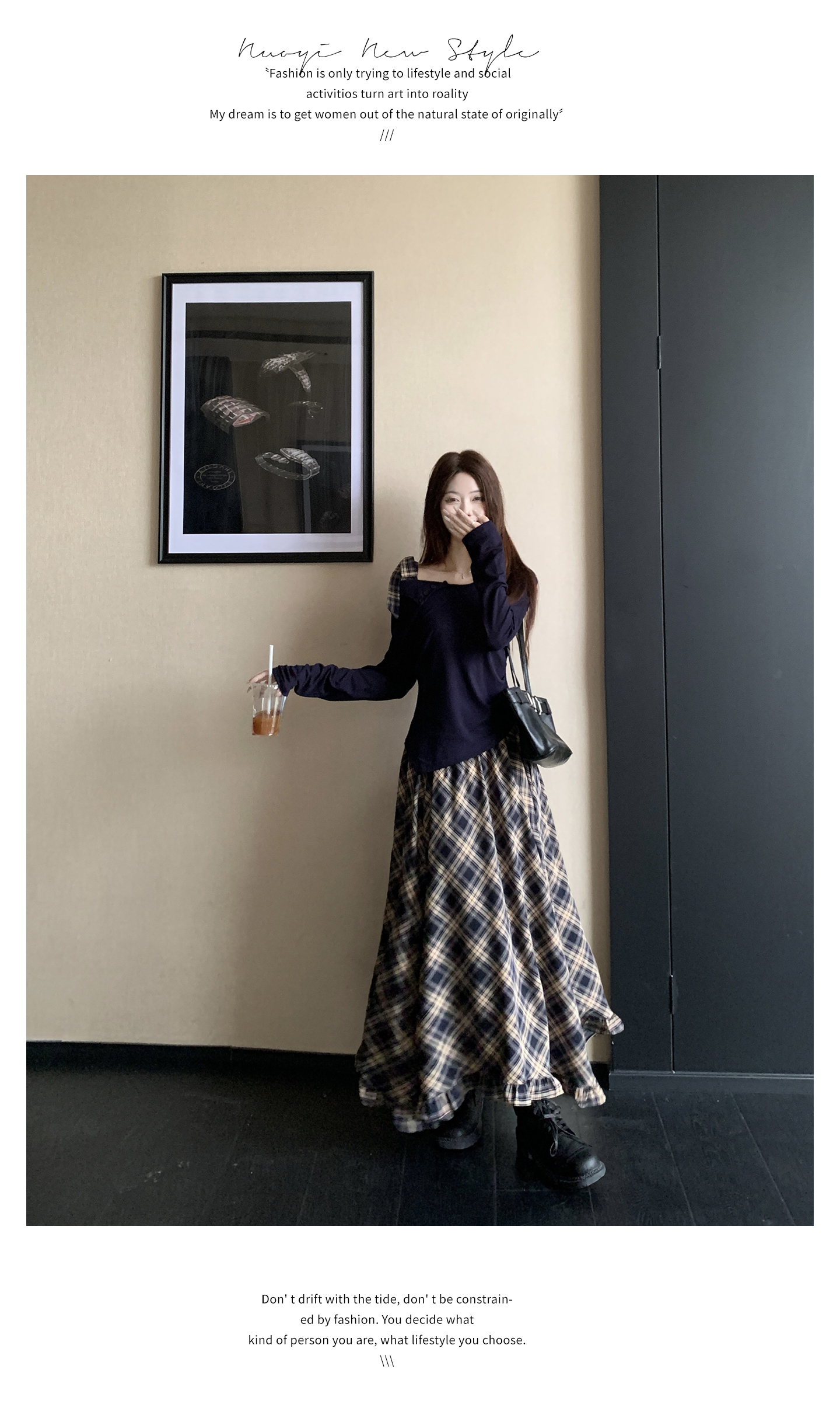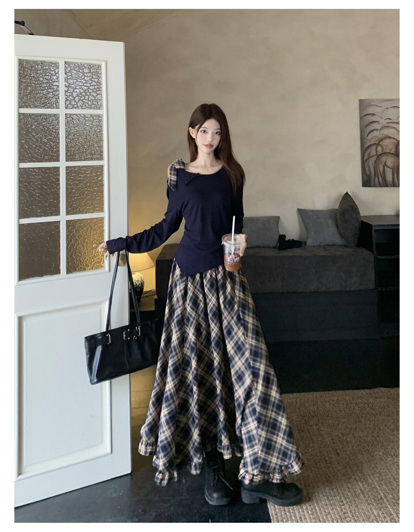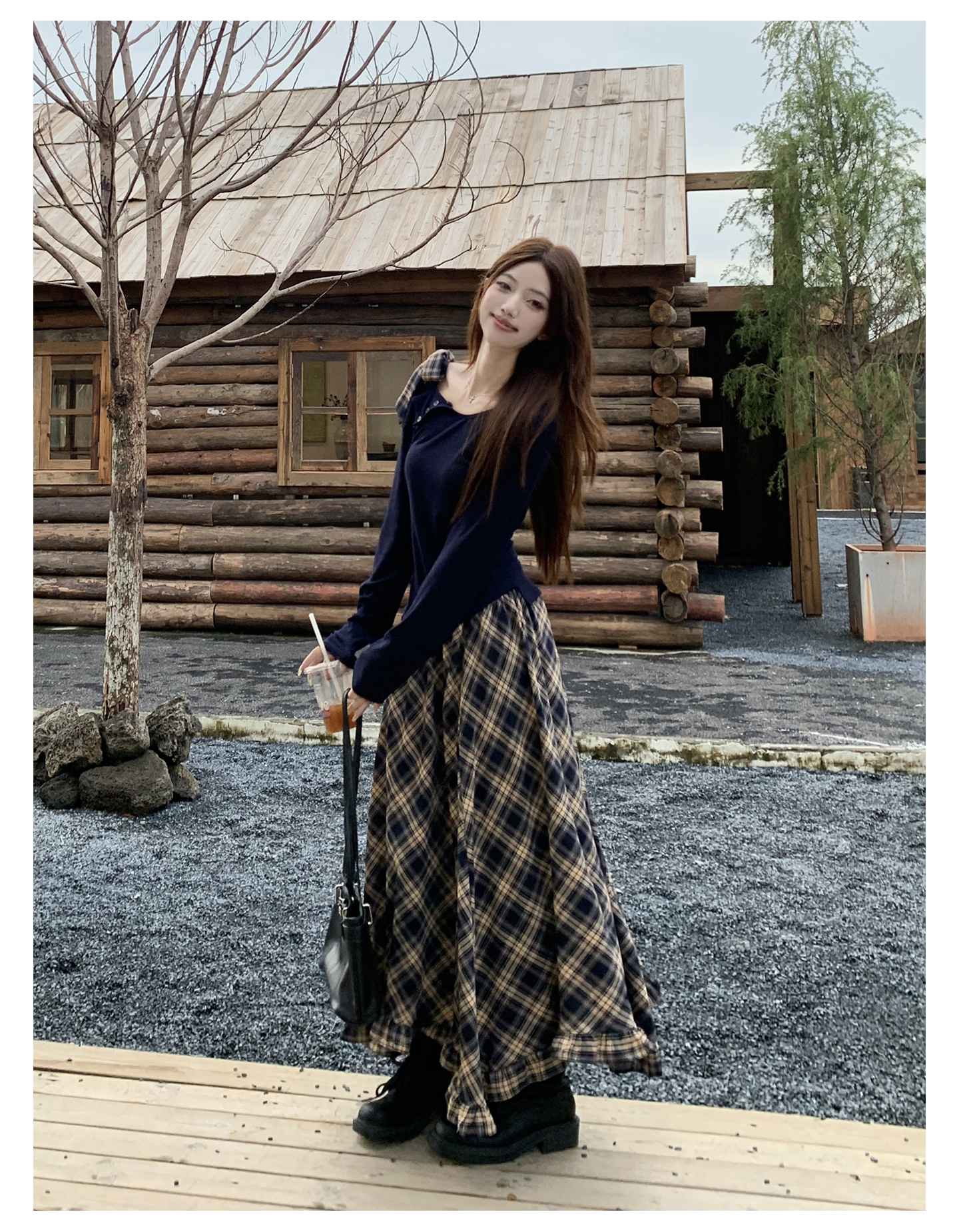 실사 2026 봄 새로운 디자인 센스 연령 감소 슬림해 보이는 하이웨이스트 셔츠 페이크 레이어드 빅 사이즈 드레스 롱 스커트