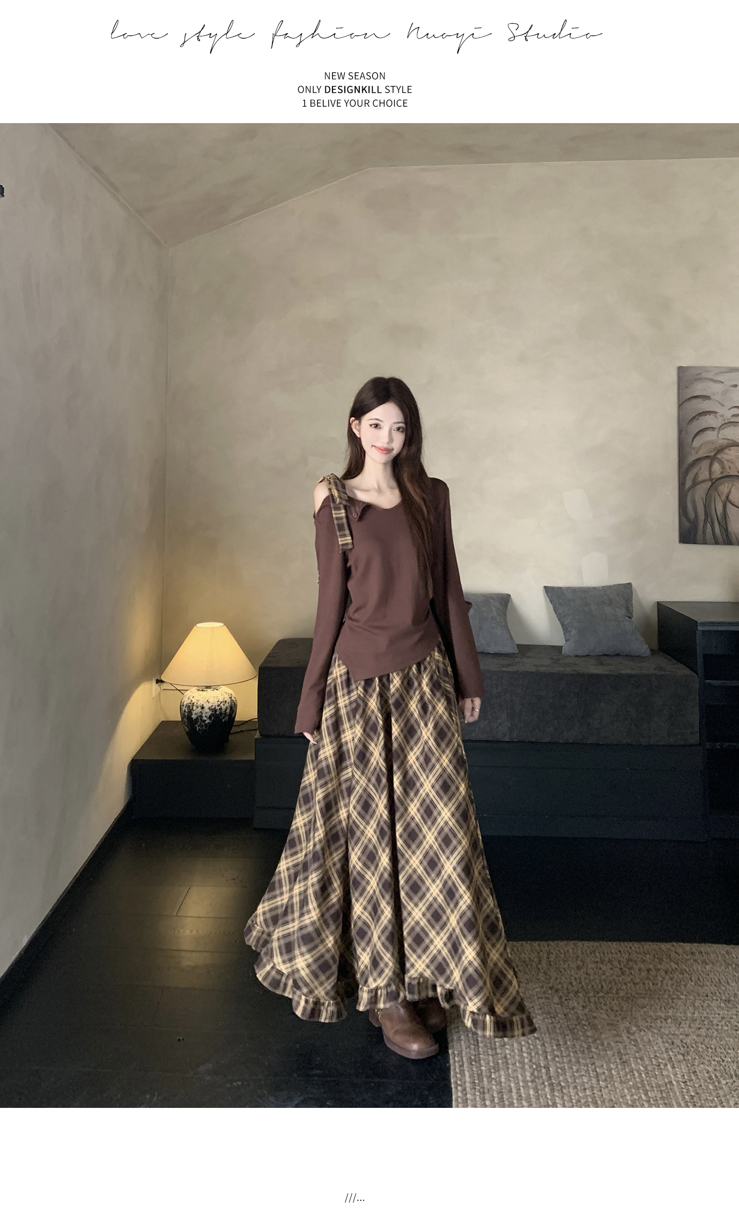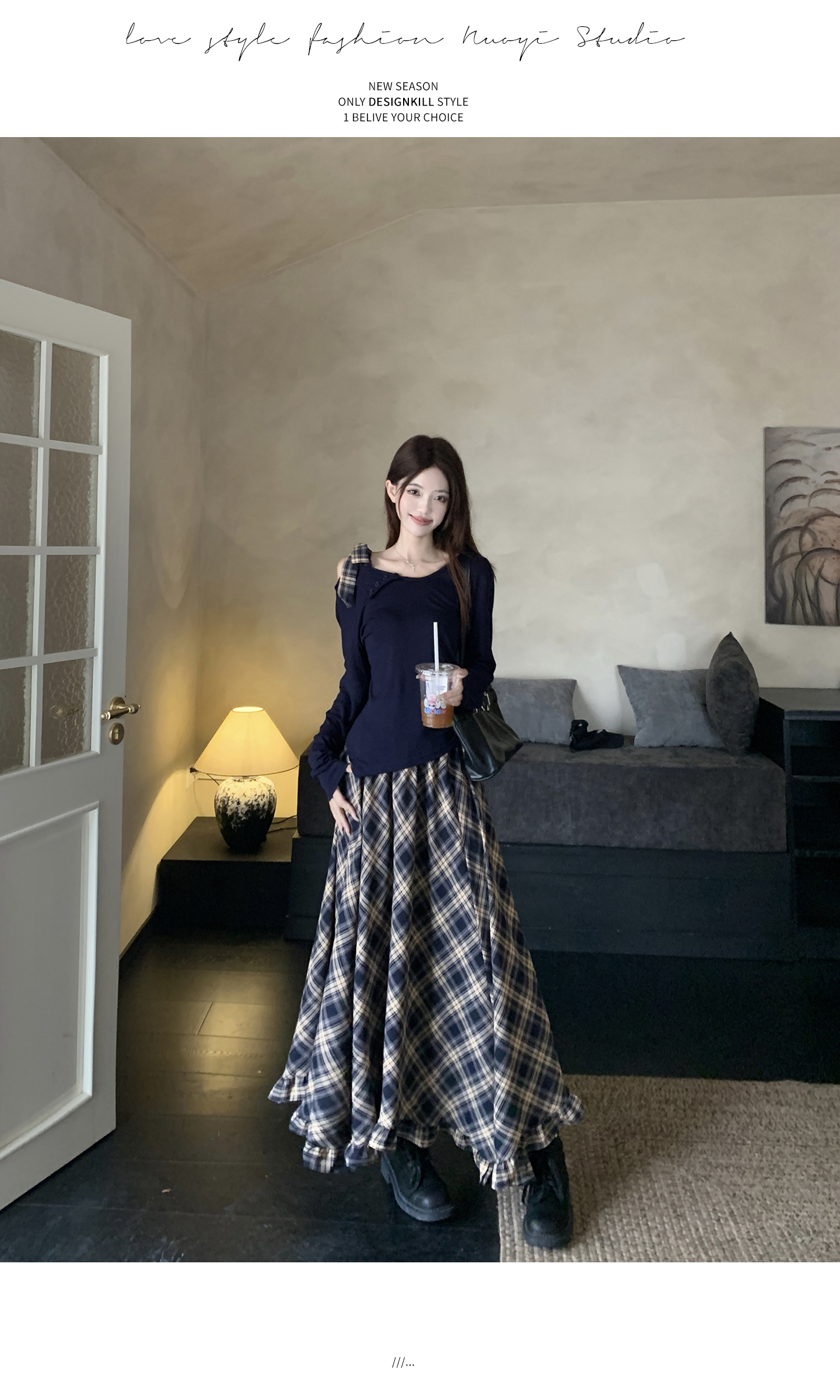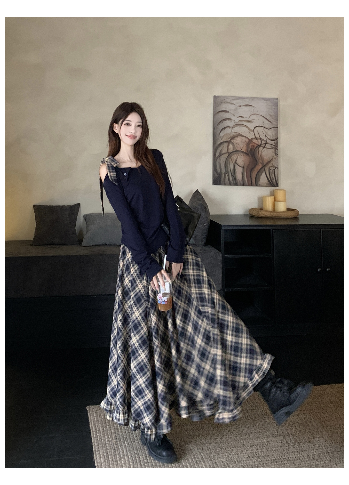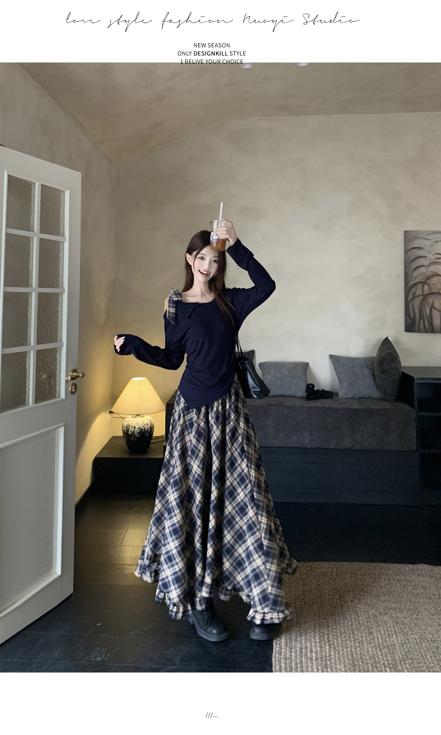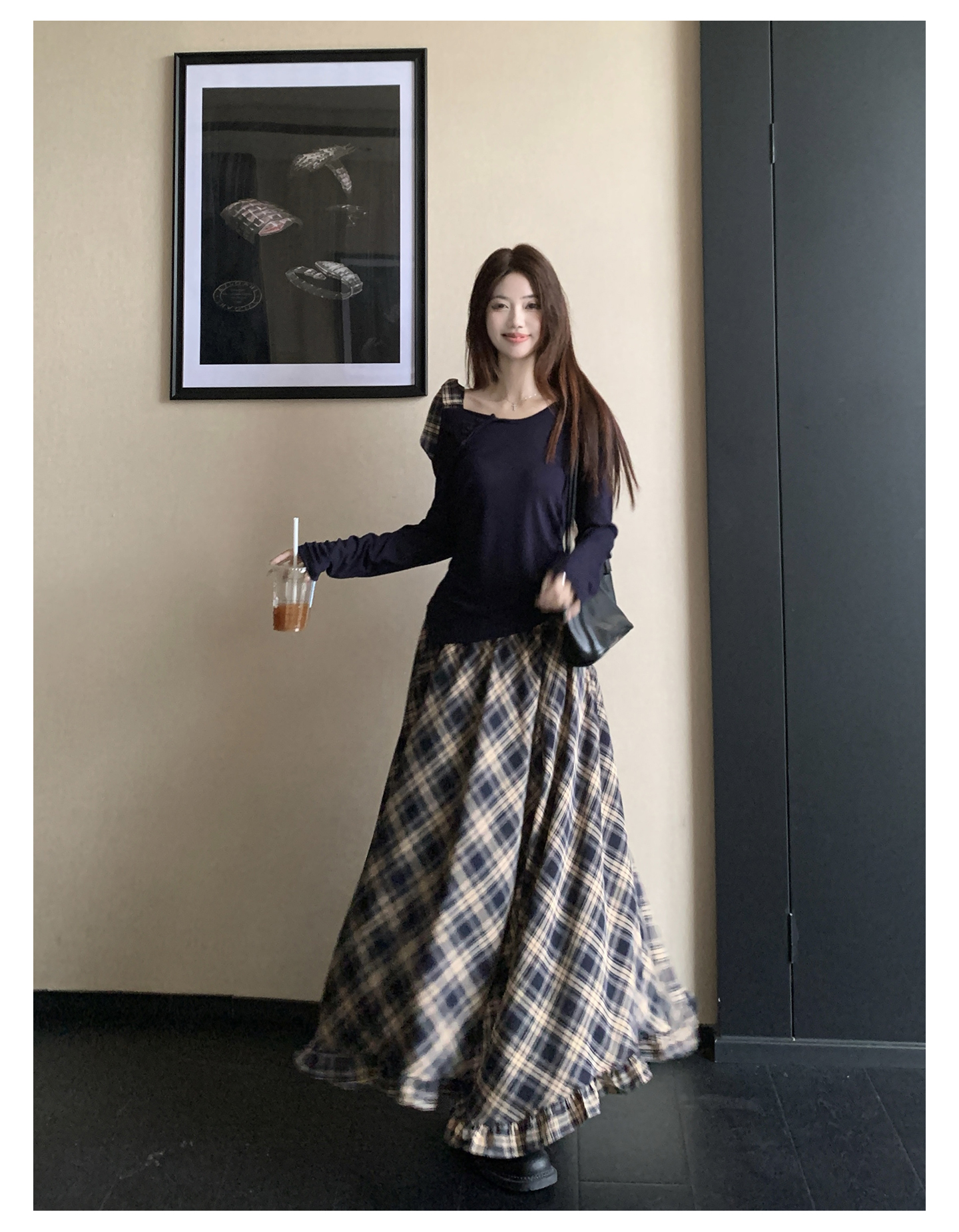 실사 2026 봄 새로운 디자인 센스 연령 감소 슬림해 보이는 하이웨이스트 셔츠 페이크 레이어드 빅 사이즈 드레스 롱 스커트