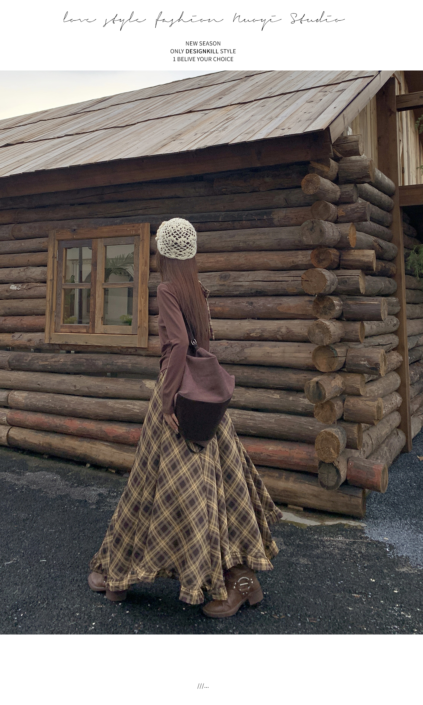 실사 2026 봄 호박색 학원 스타일 치마 패션 세트 한국 스타일 레트로 체크무늬 빅 사이즈 치마