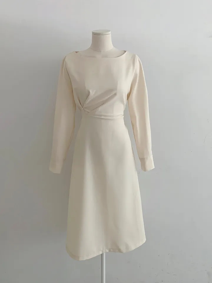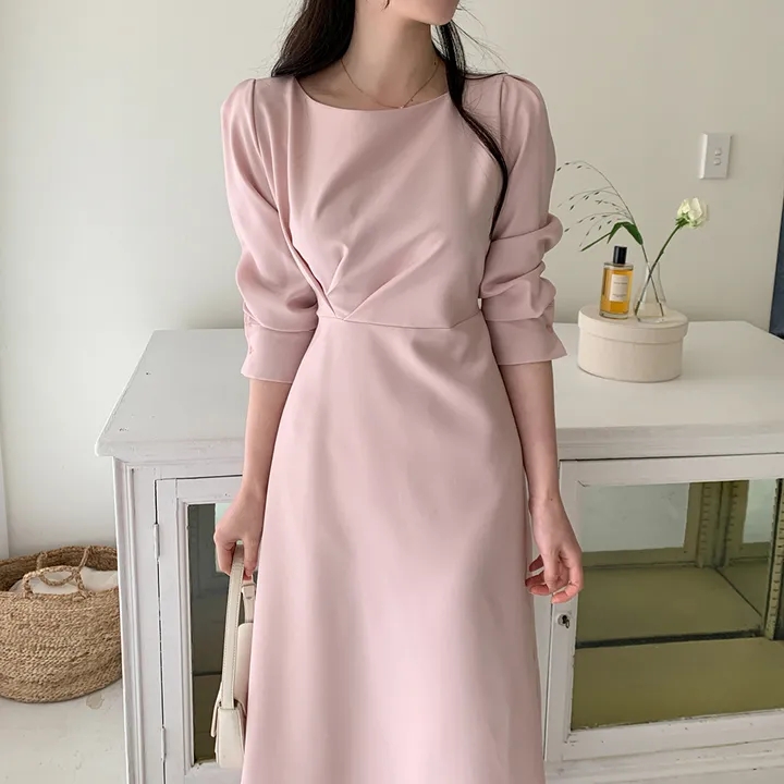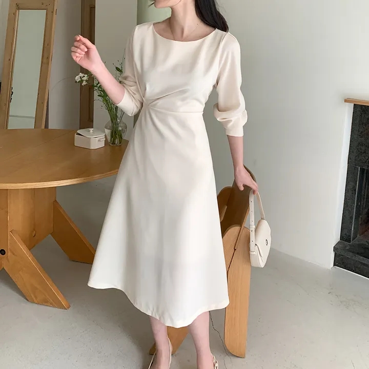 한국 chic 봄 새로운 프랑스식 빛 럭셔리 패션 품격 주름 장식 허리 수축 슬림해 보이는 드레스
