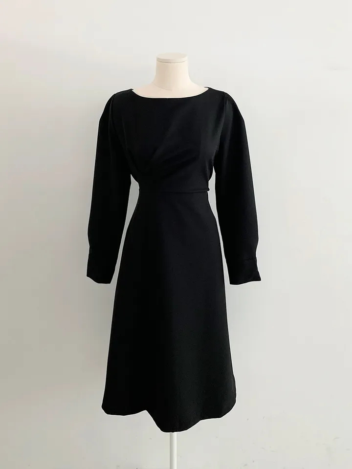 크기 업데이트 한국 chic 프랑스어 틈새 시장 디자인 허리 슬림 긴 소매 부서 버클 드레스