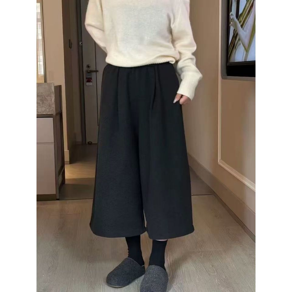 니트 반바지 여성 가을 겨울 2025 새로운 하이웨이스트 슬림해 보이는 털실 바지 보온 털이 있는 외출용 한 마디 핫 바지