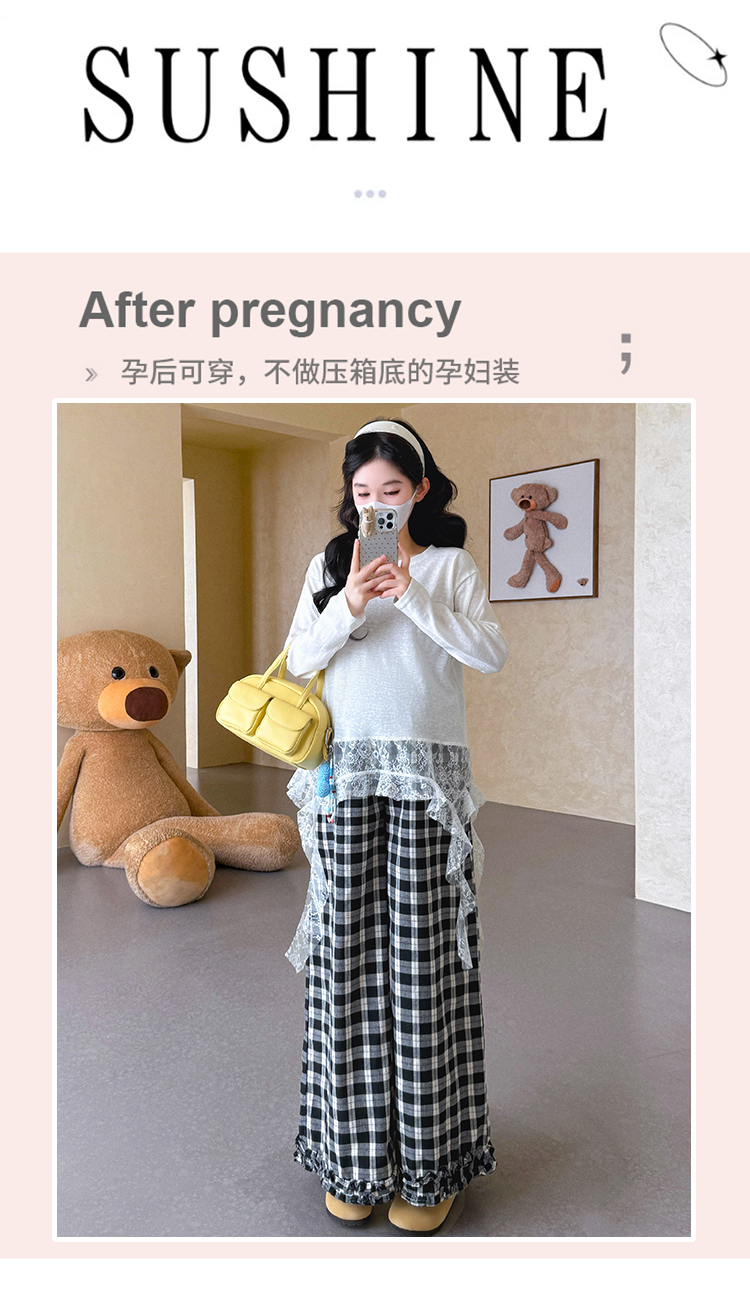 실사 xian 물품 봄 신제품 한국 스타일 다용도 맨위 베스트 와이드 레그 팬츠 임산부 3종 세트 세트