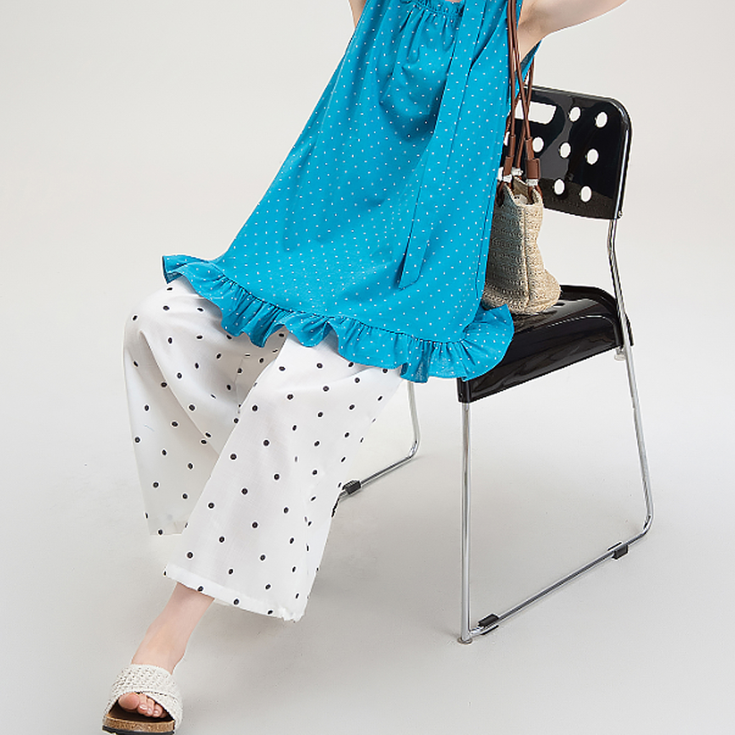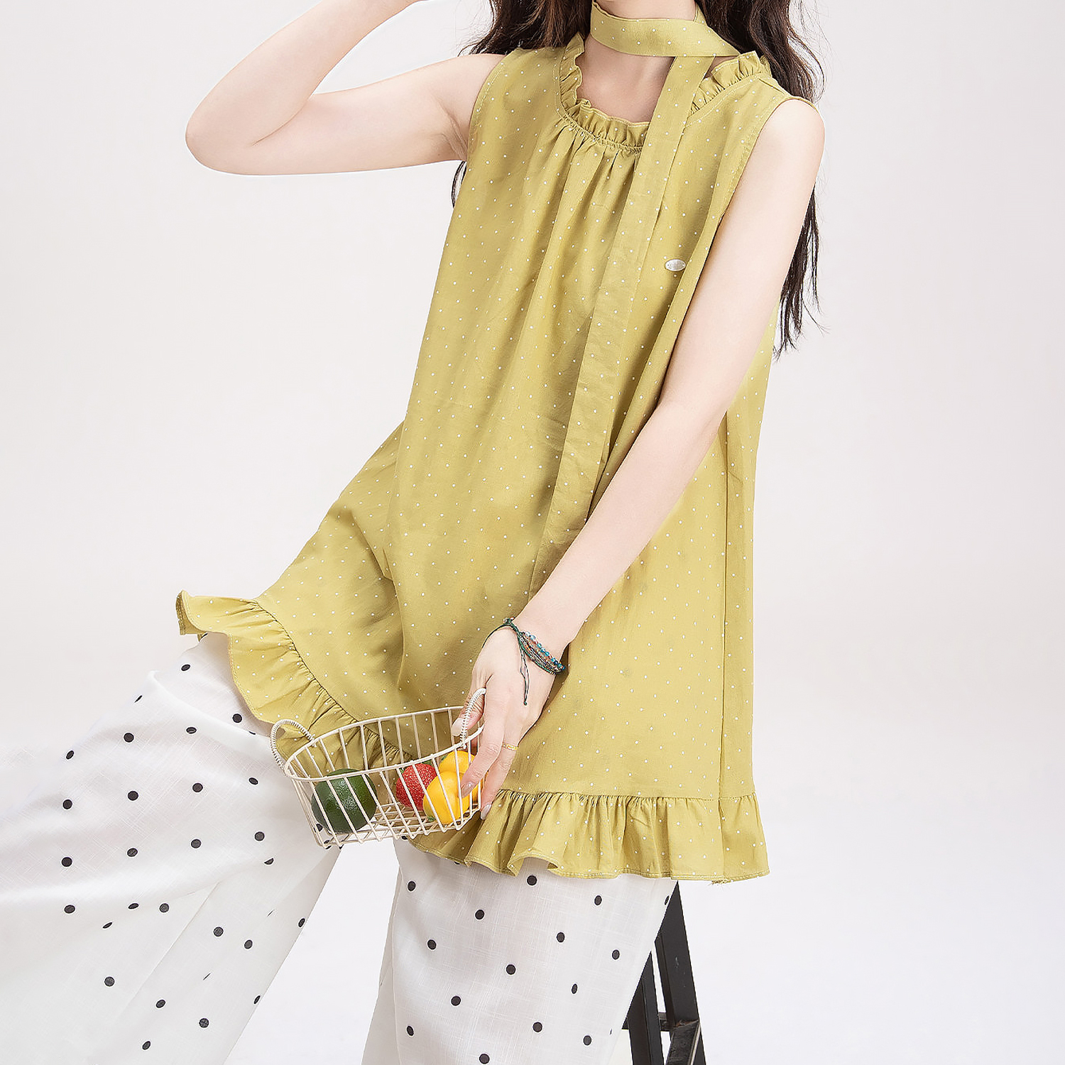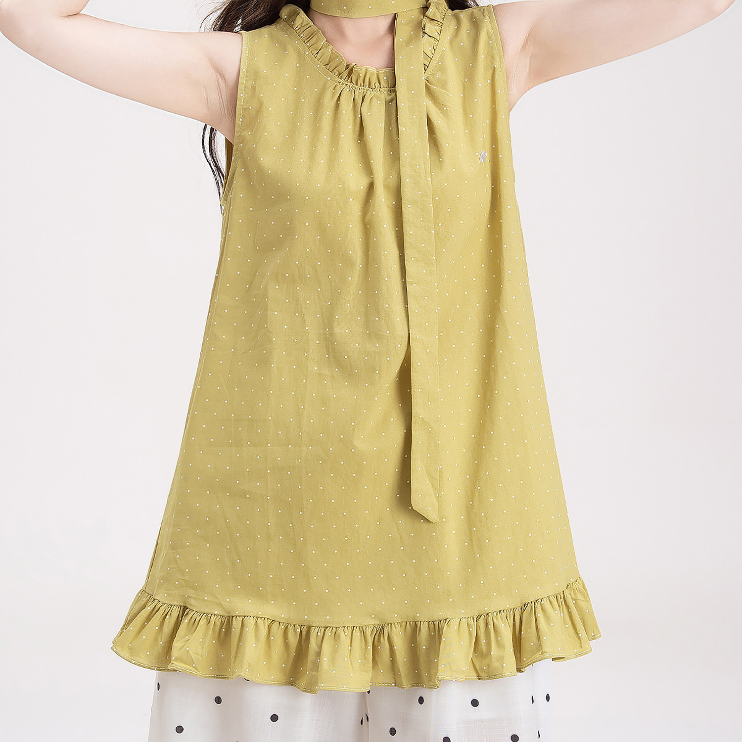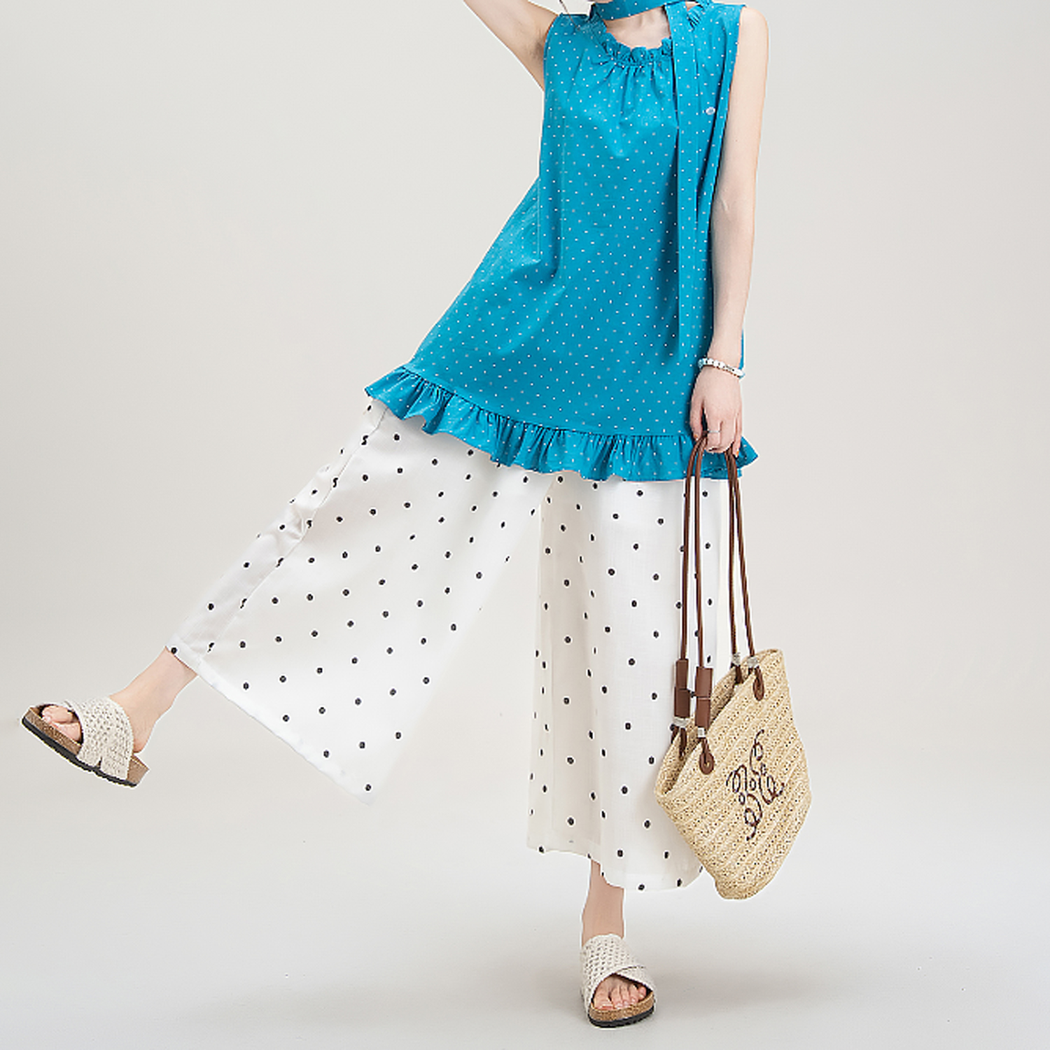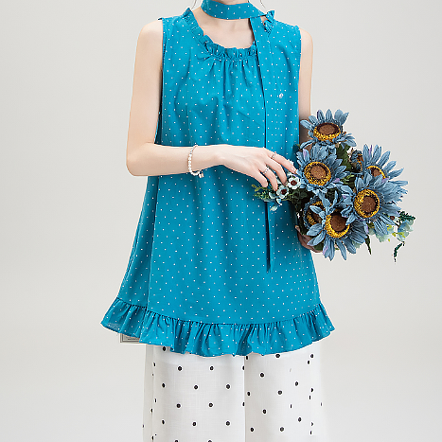 목이버섯 레이스 민소매 도트 무늬 조끼 여성 여름 새로운 작은 키 루즈핏 넓은 다리 8 점 바지 여성복 여성