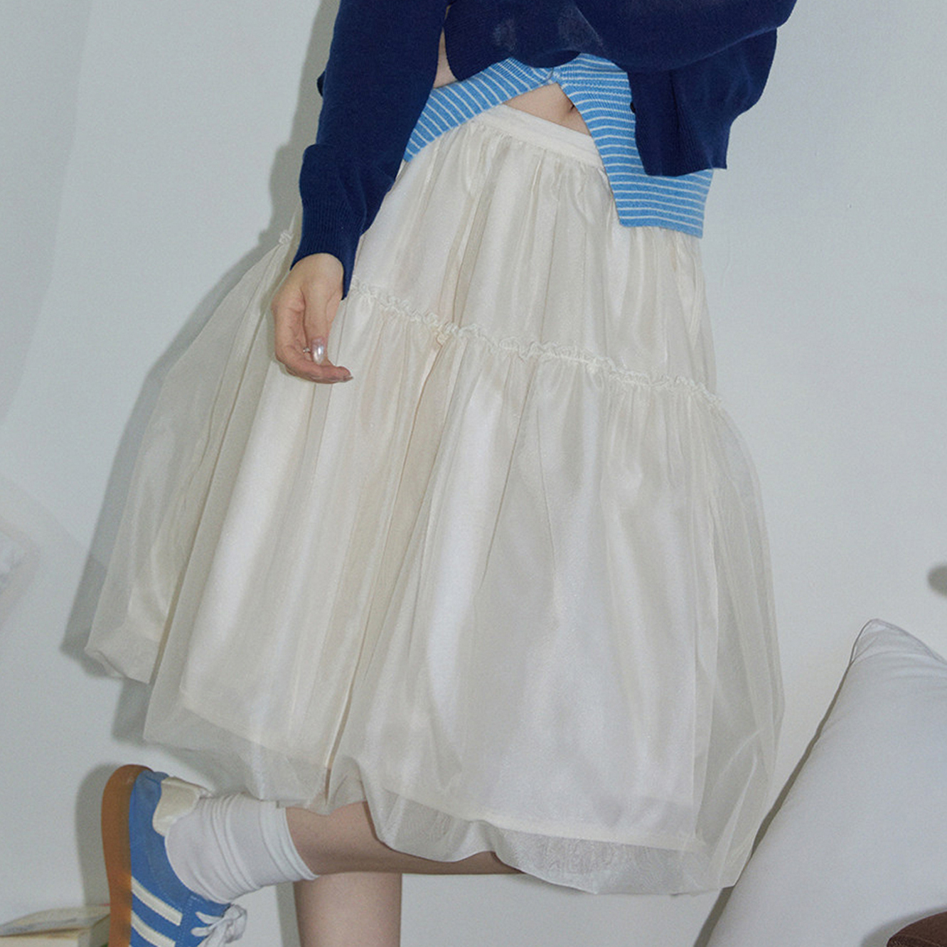 실사 살구 색상 반신 스커트 겨울 봄 쇼트 스타일 프랑스식 거즈 스커트 하이웨이스트 표지 넓적 다리 슬림해 보이는 A라인 스커트 꽃밭 퍼프 스커트