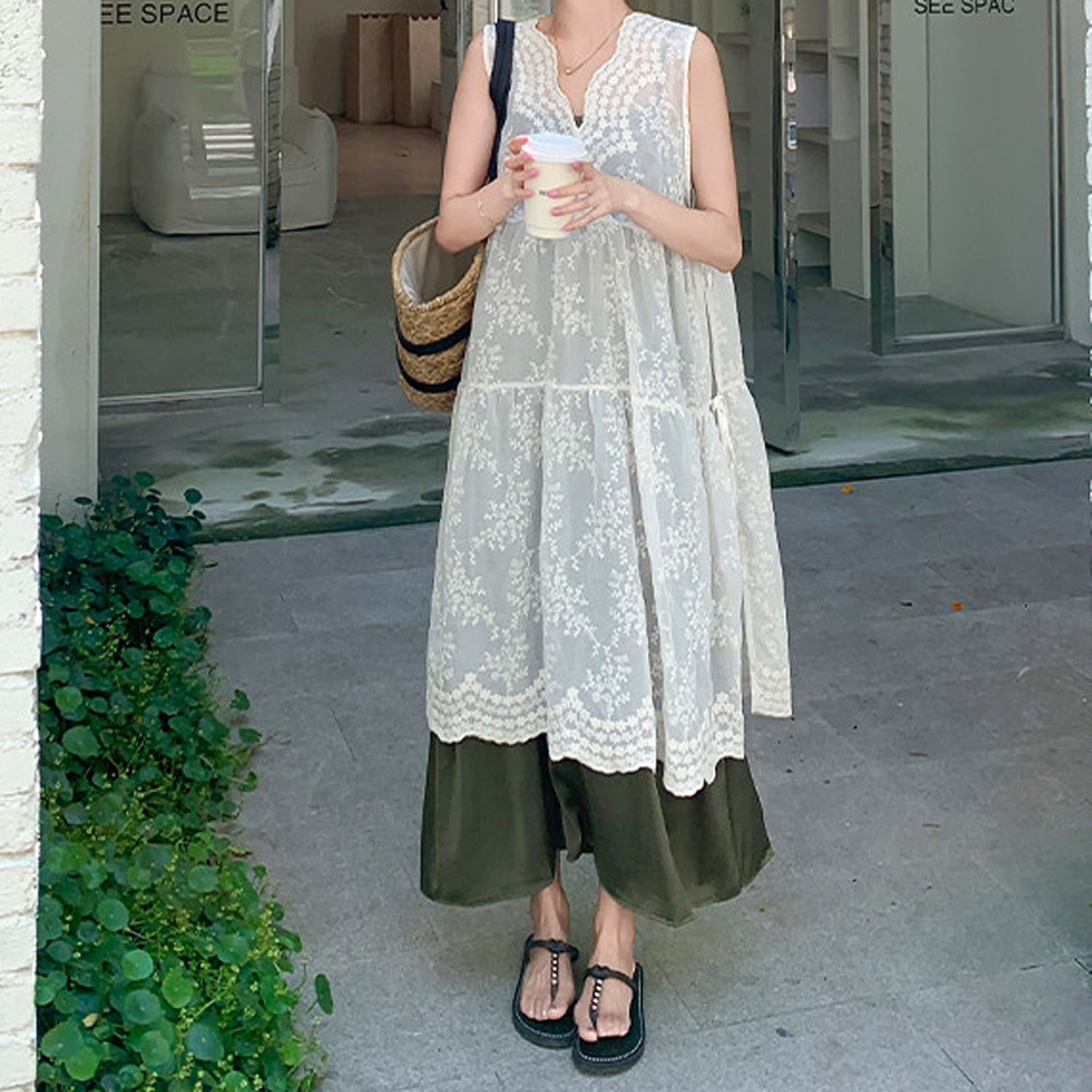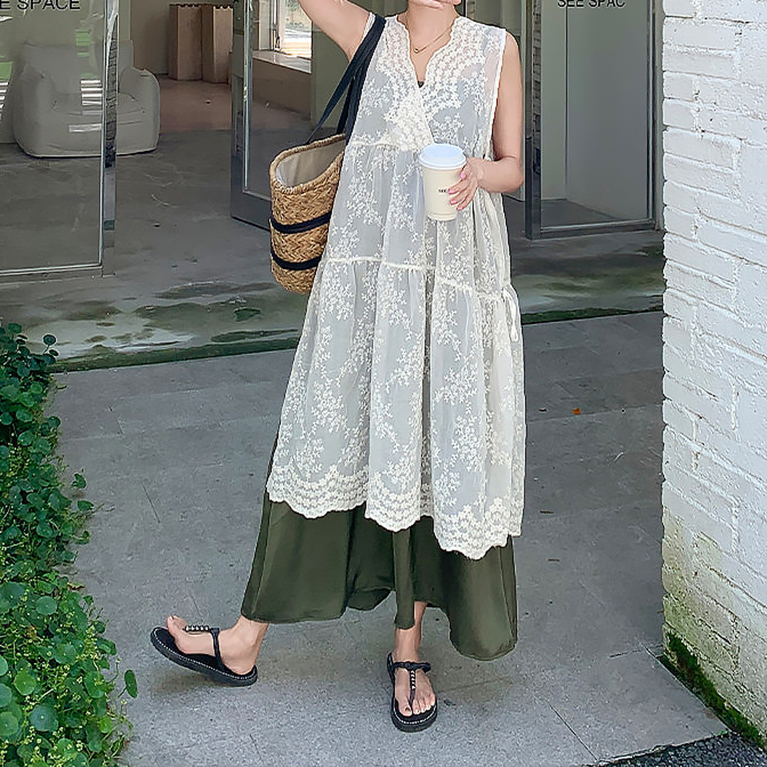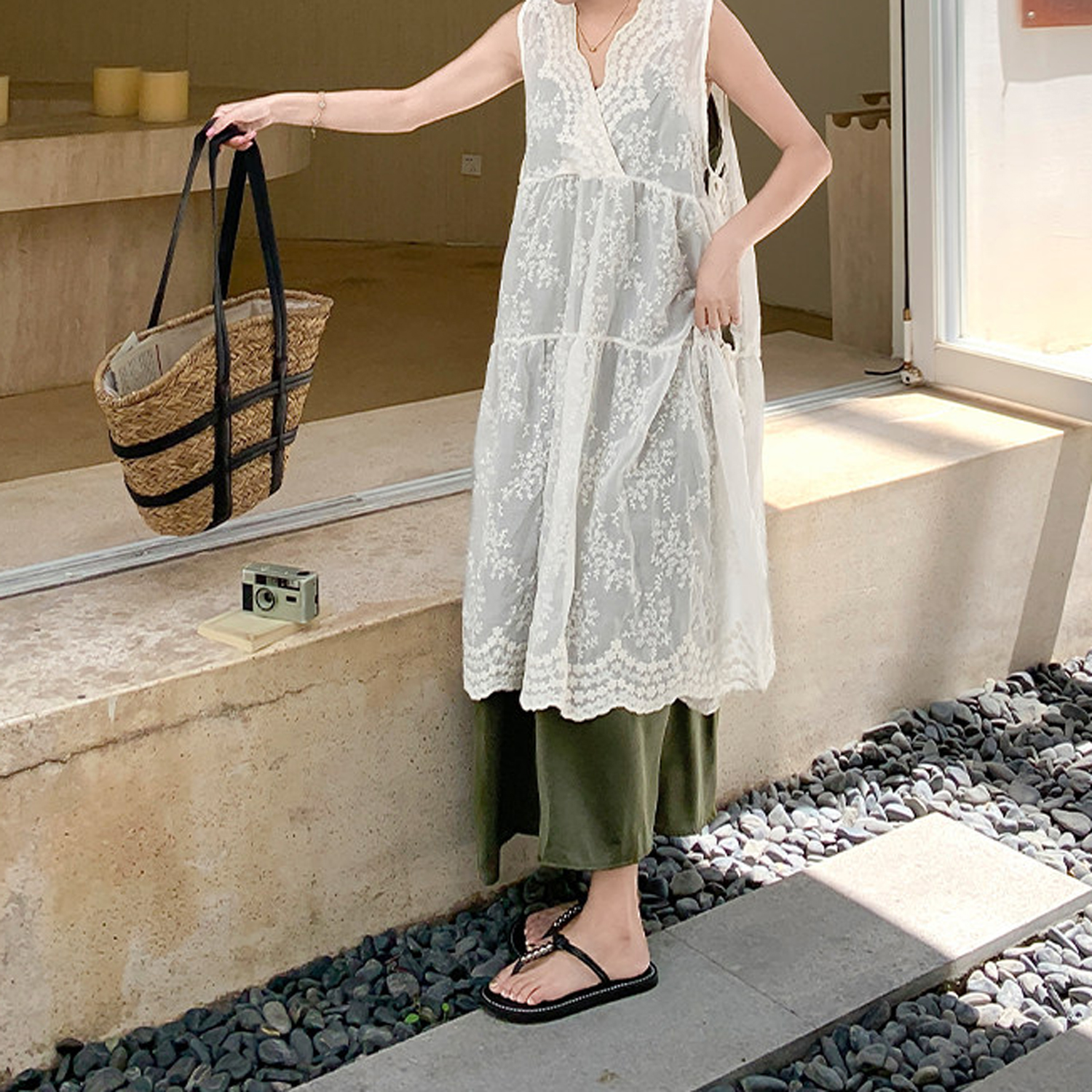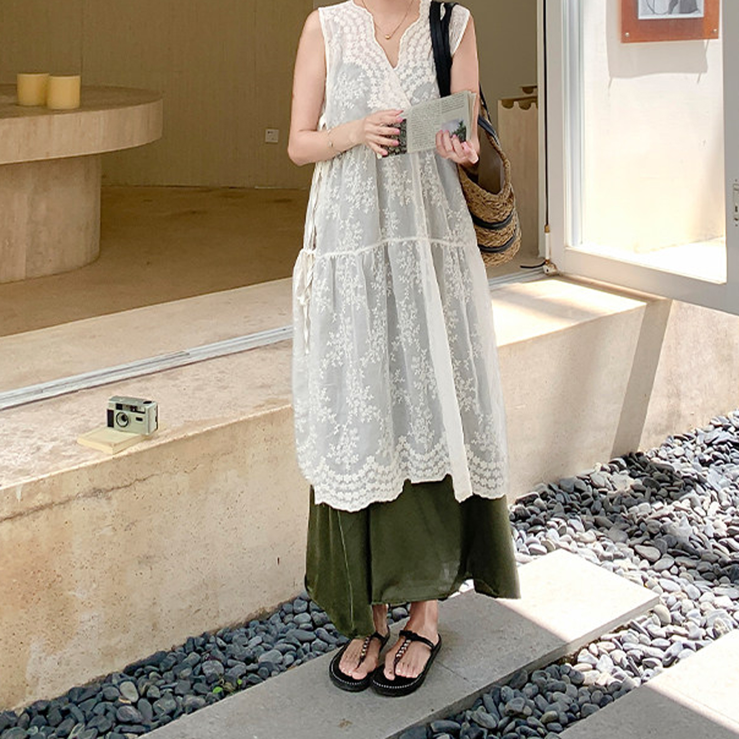 목이버섯 레이스 민소매 도트 무늬 조끼 여성 여름 새로운 작은 키 루즈핏 넓은 다리 8 점 바지 여성복 여성