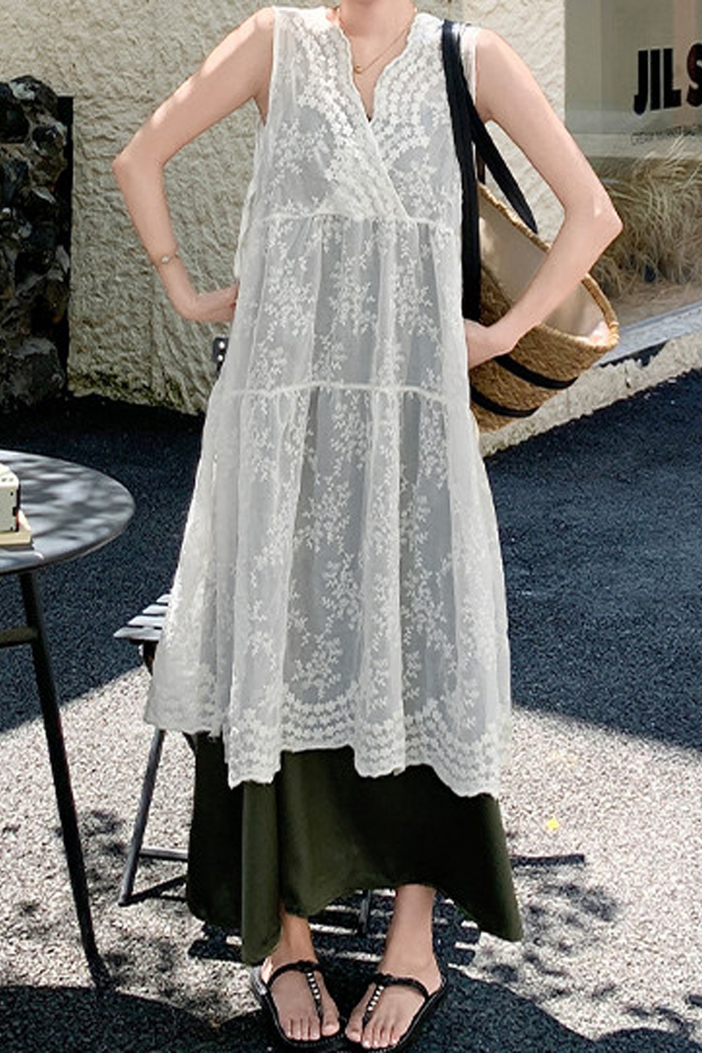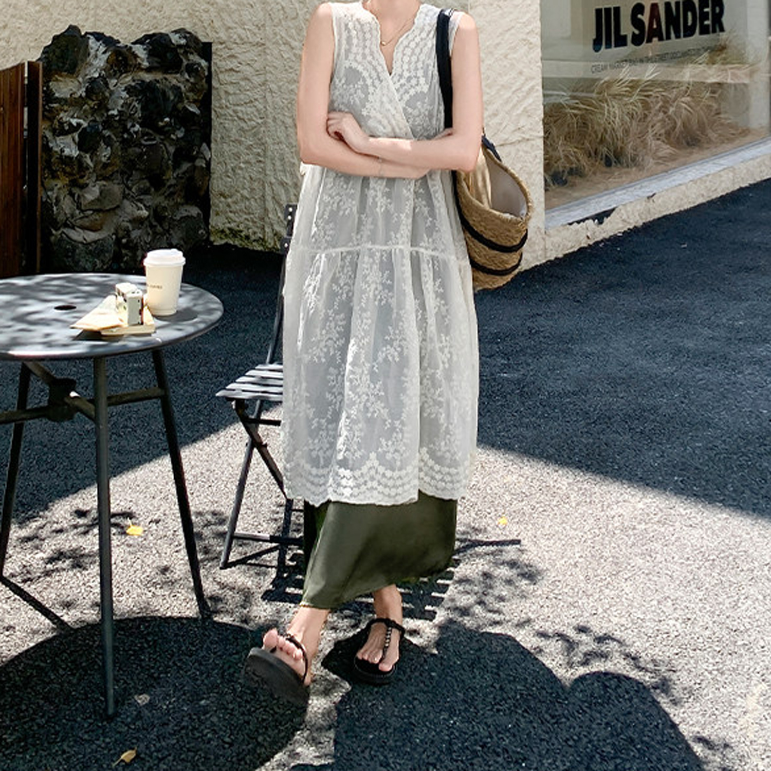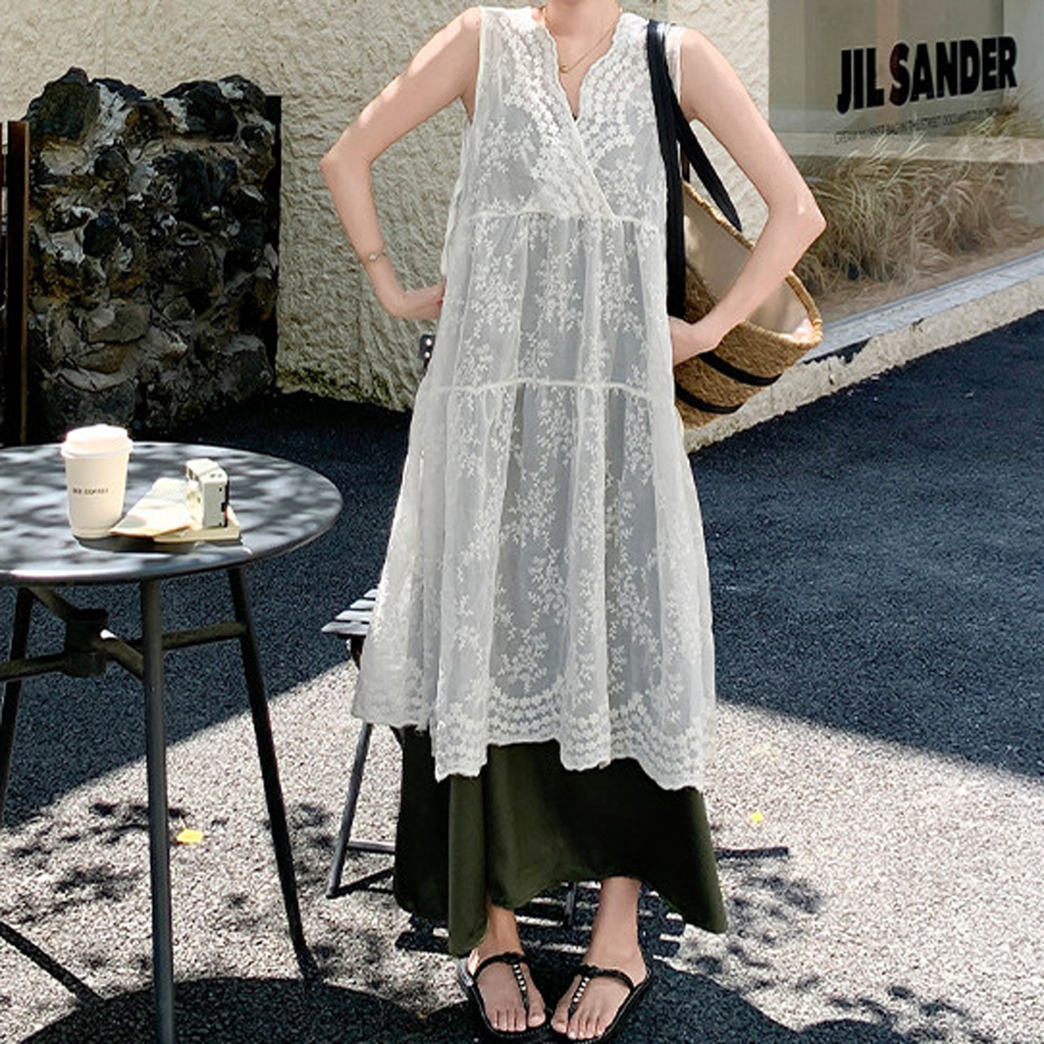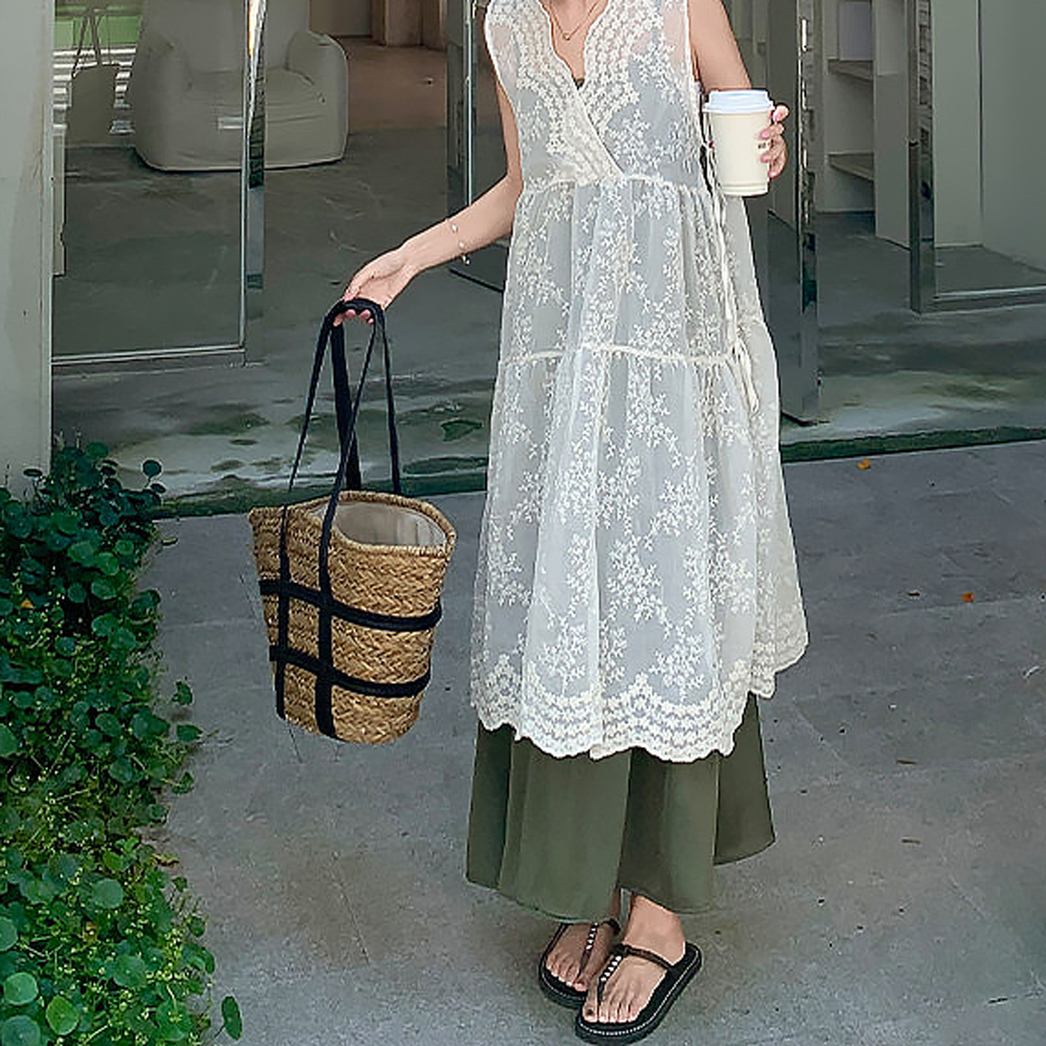 목이버섯 레이스 민소매 도트 무늬 조끼 여성 여름 새로운 작은 키 루즈핏 넓은 다리 8 점 바지 여성복 여성