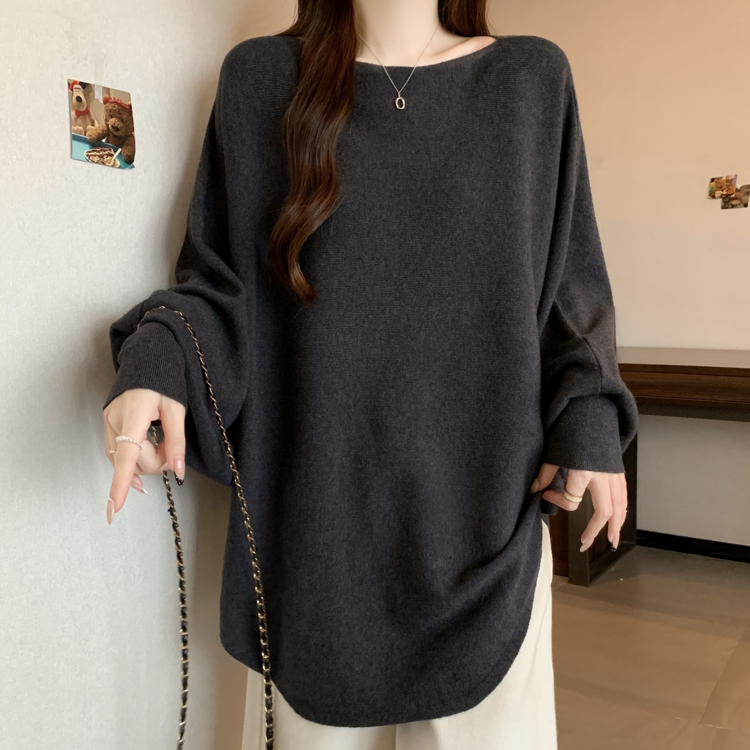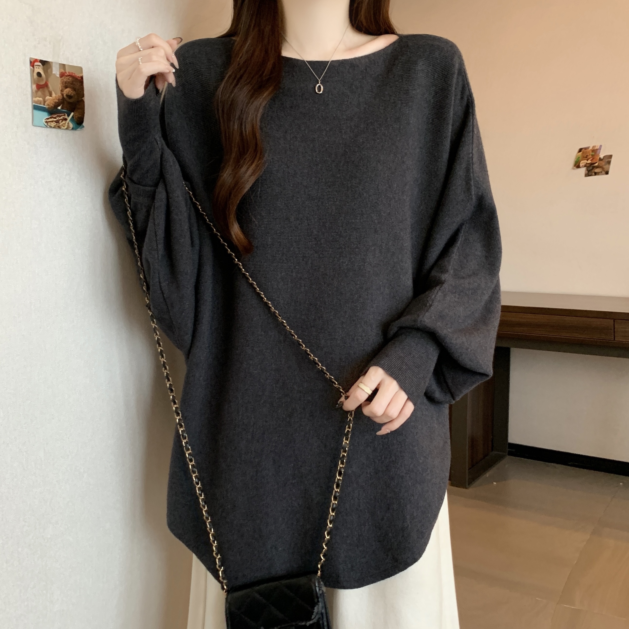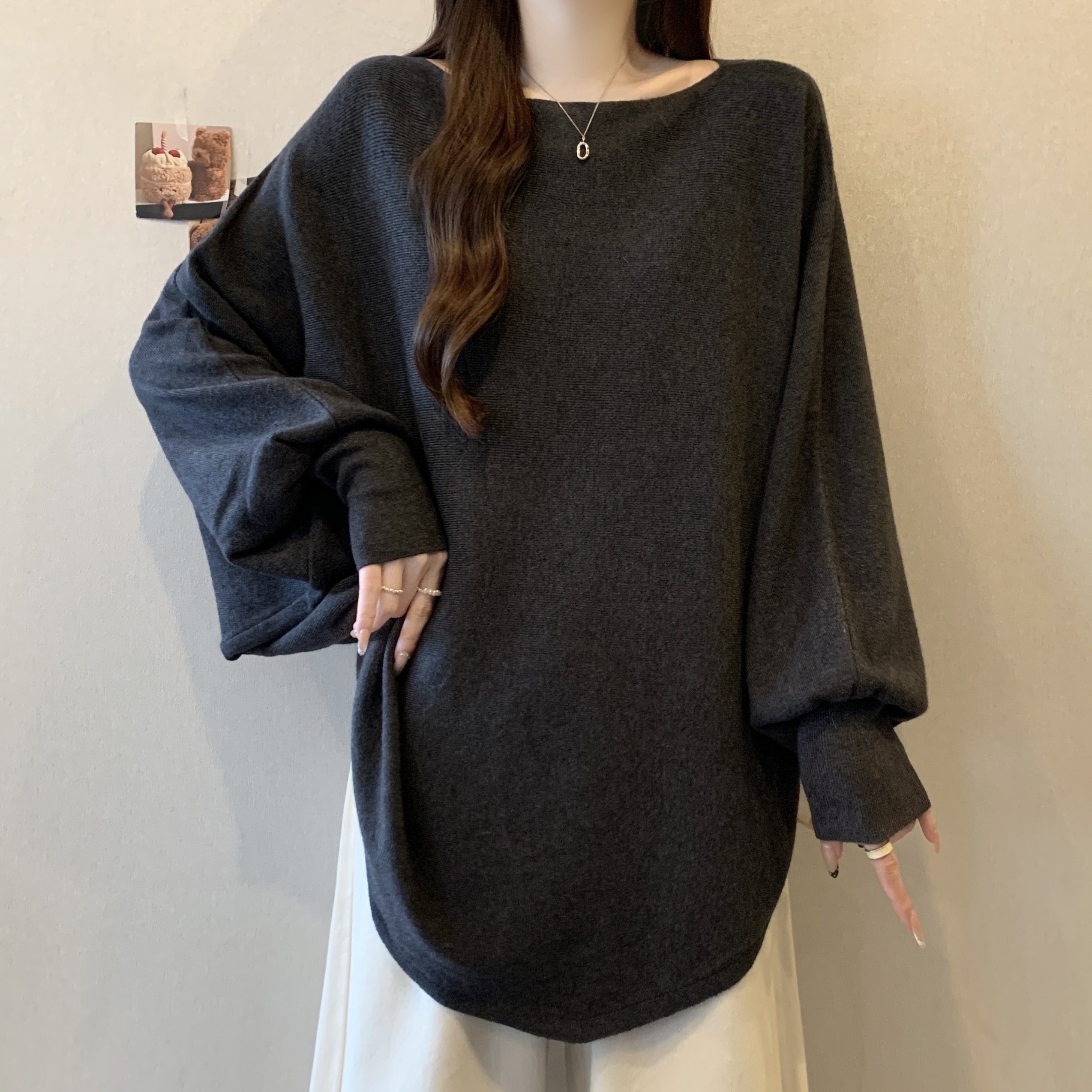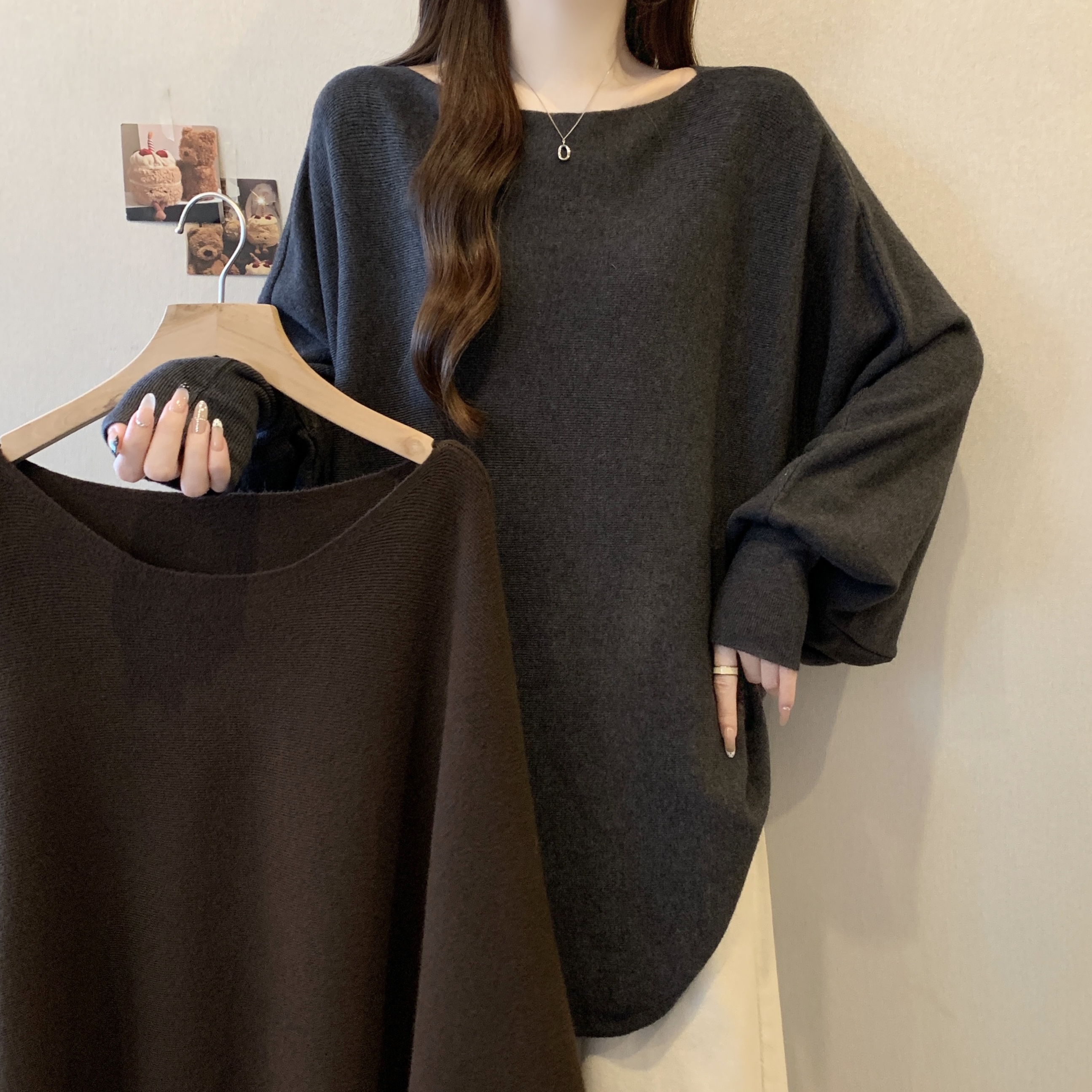 실사 빅 사이즈 디자인 센스 비즈 박기 홀로우 아웃 니트 스웨터 여성 2025 가을 겨울 새로운 루즈핏 슬림해 보이는 다용도 스웨터
