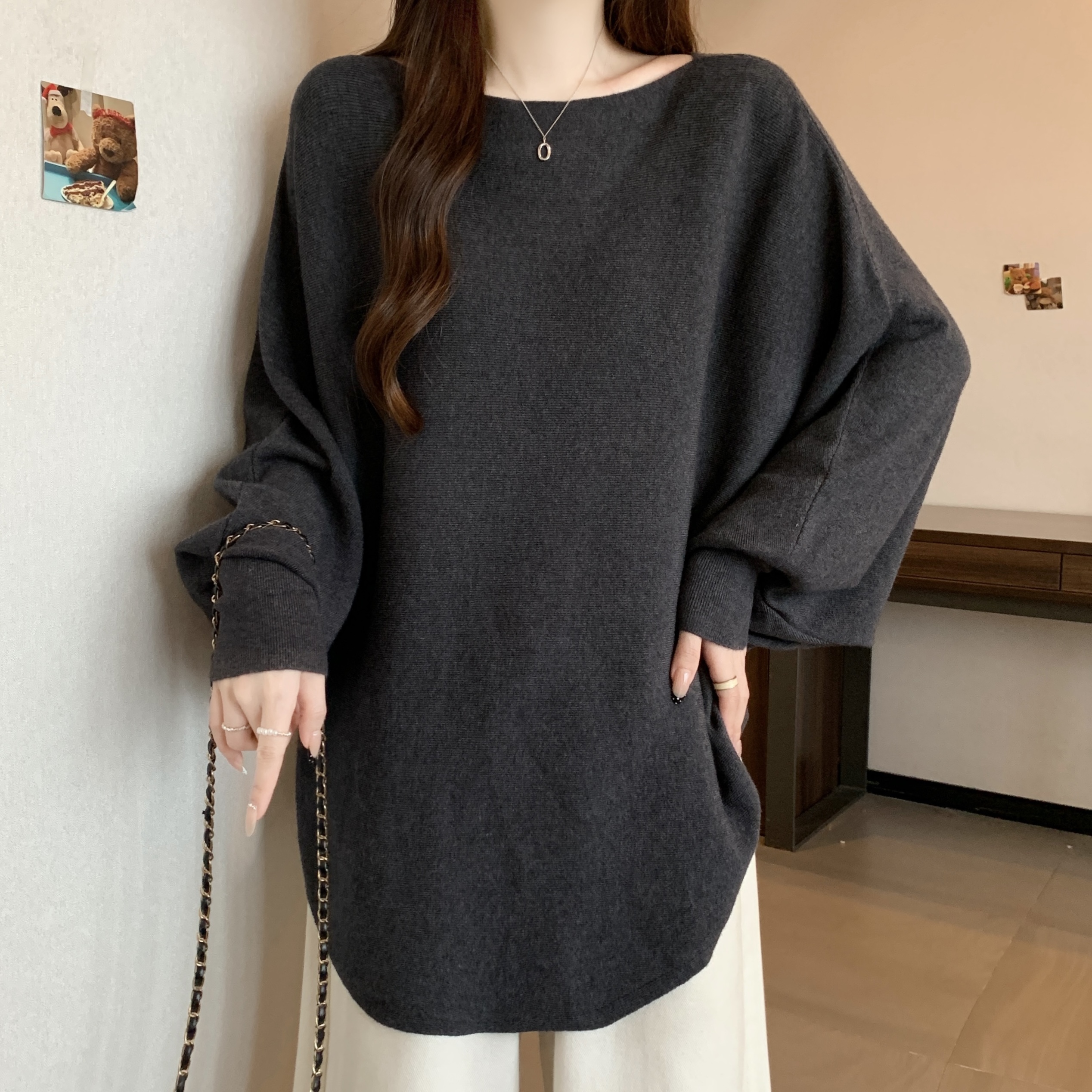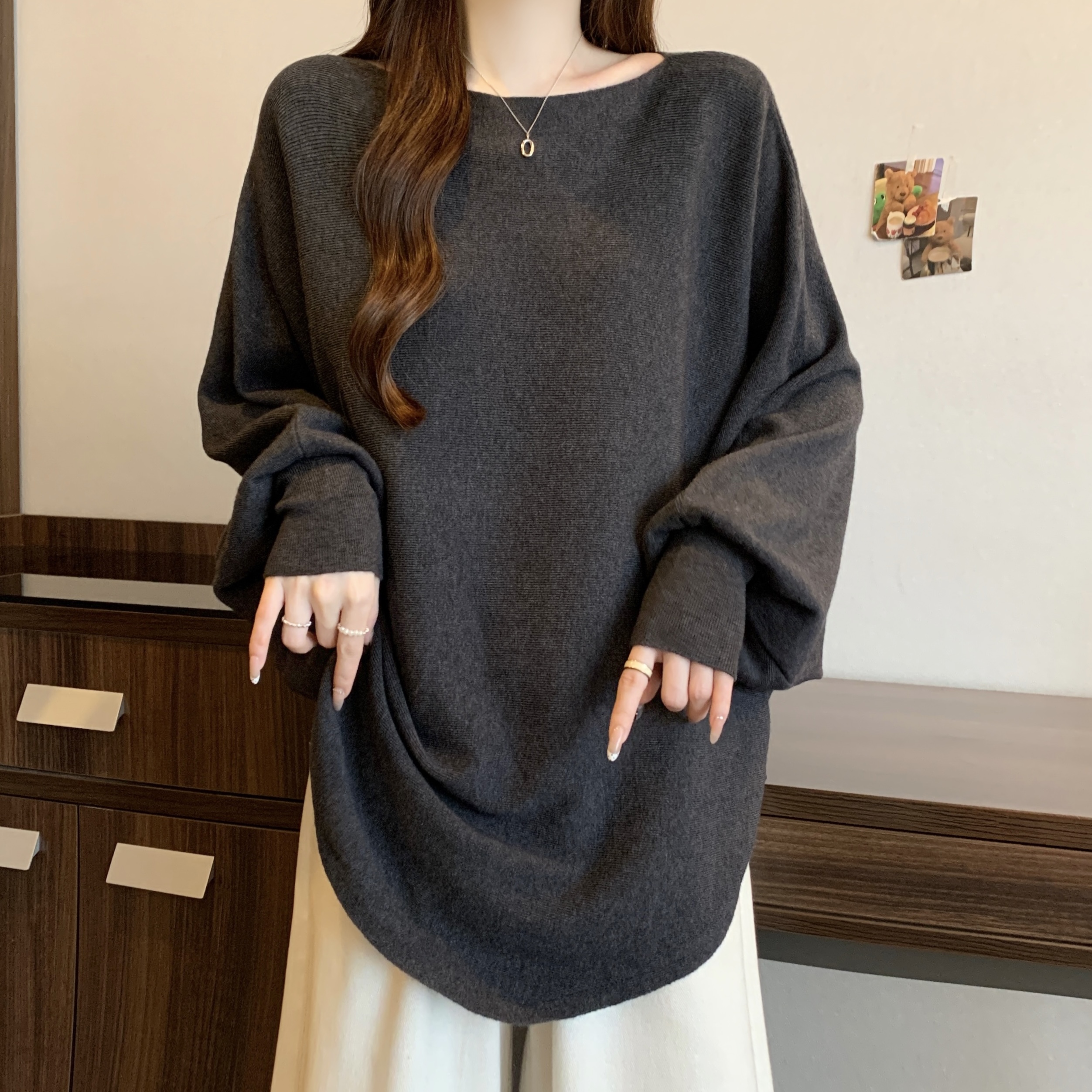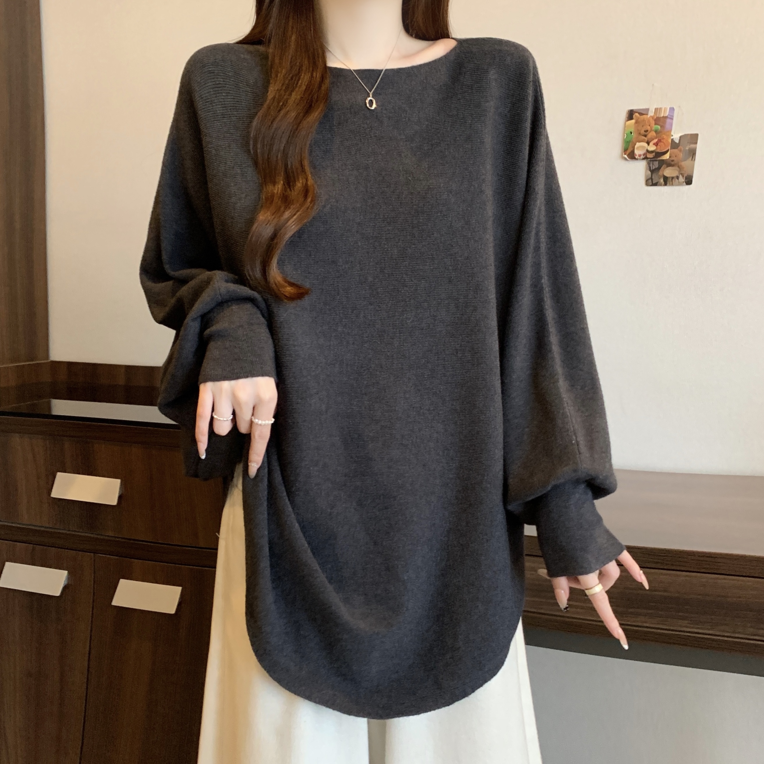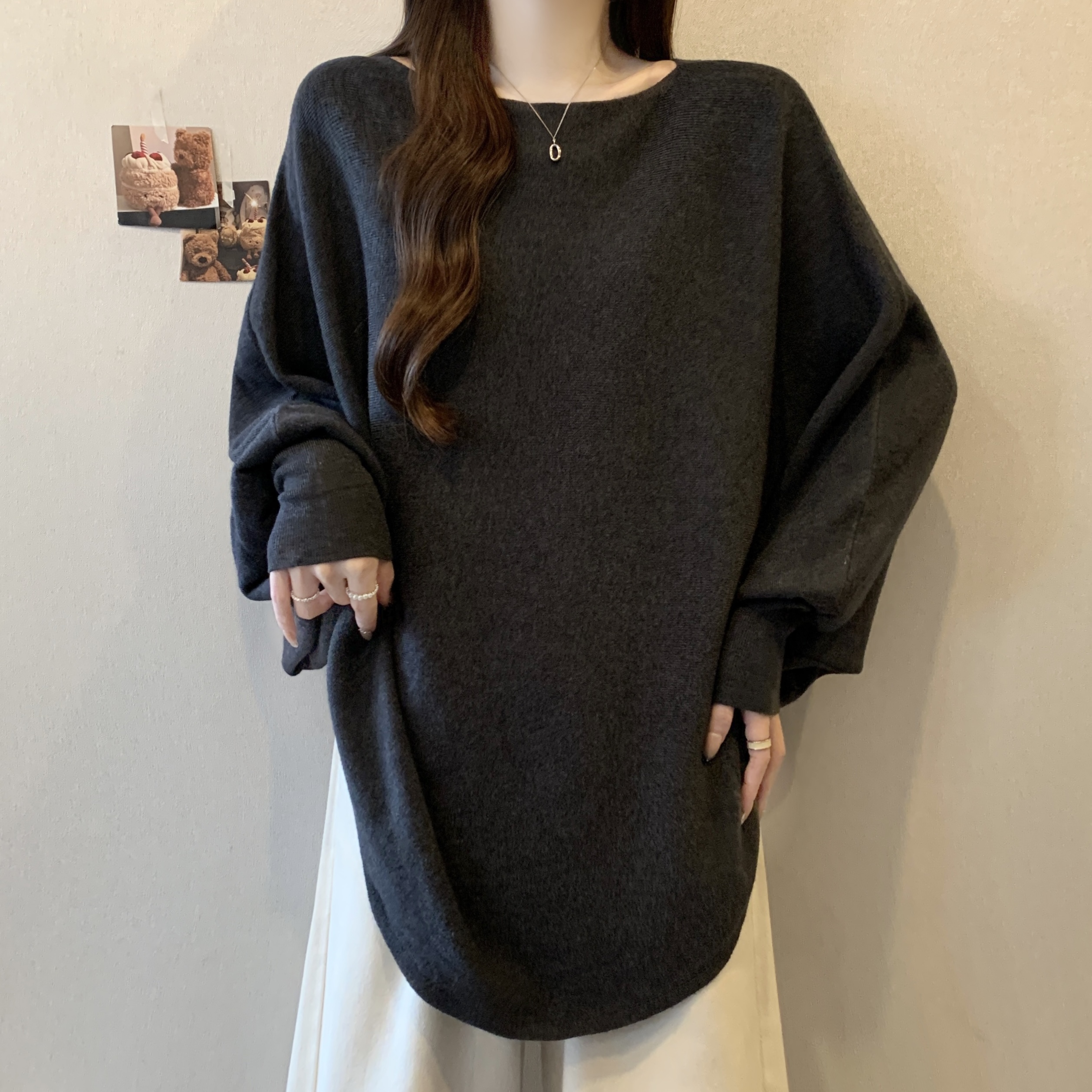 실사 빅 사이즈 디자인 센스 비즈 박기 홀로우 아웃 니트 스웨터 여성 2025 가을 겨울 새로운 루즈핏 슬림해 보이는 다용도 스웨터