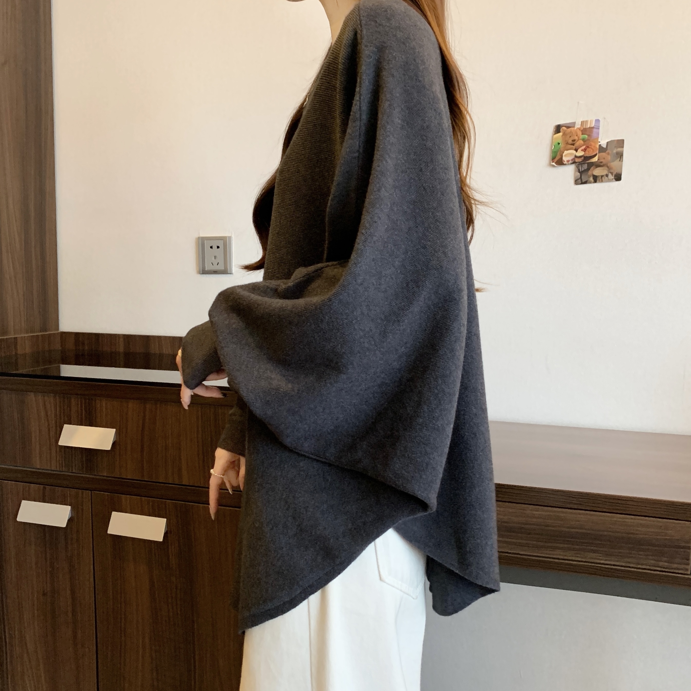 실사 빅 사이즈 2026 이른 봄 새로운 라운드 넥 핫픽스 스웨터 니트 오픈 가디건 여성 레저 다용도 고급 센스 맨위